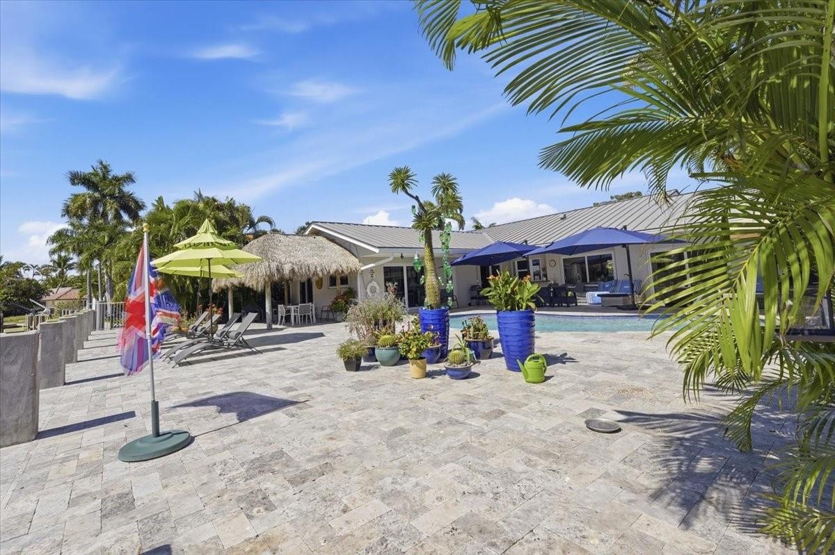 The one you have been waiting for! Boasting an incredible water view, this home is situated on a T-Canal, offering panoramic views of the water. Large patio area with fantastic pool, raised seawall and concrete dock with approximately 80 ft of dock space. Meticulously furnished, spacious and functional floor plan featuring an open concept kitchen, while the primary bedroom and en-suite is on one side of the house, with 2 guest bedrooms and 2 full bathrooms on the other. Circular drive with 4 car garage provides ample parking and storage. Upgrades include windows, doors and roof! The Landings is a charming neighborhood that is conveniently located to the beach, shopping and dining.