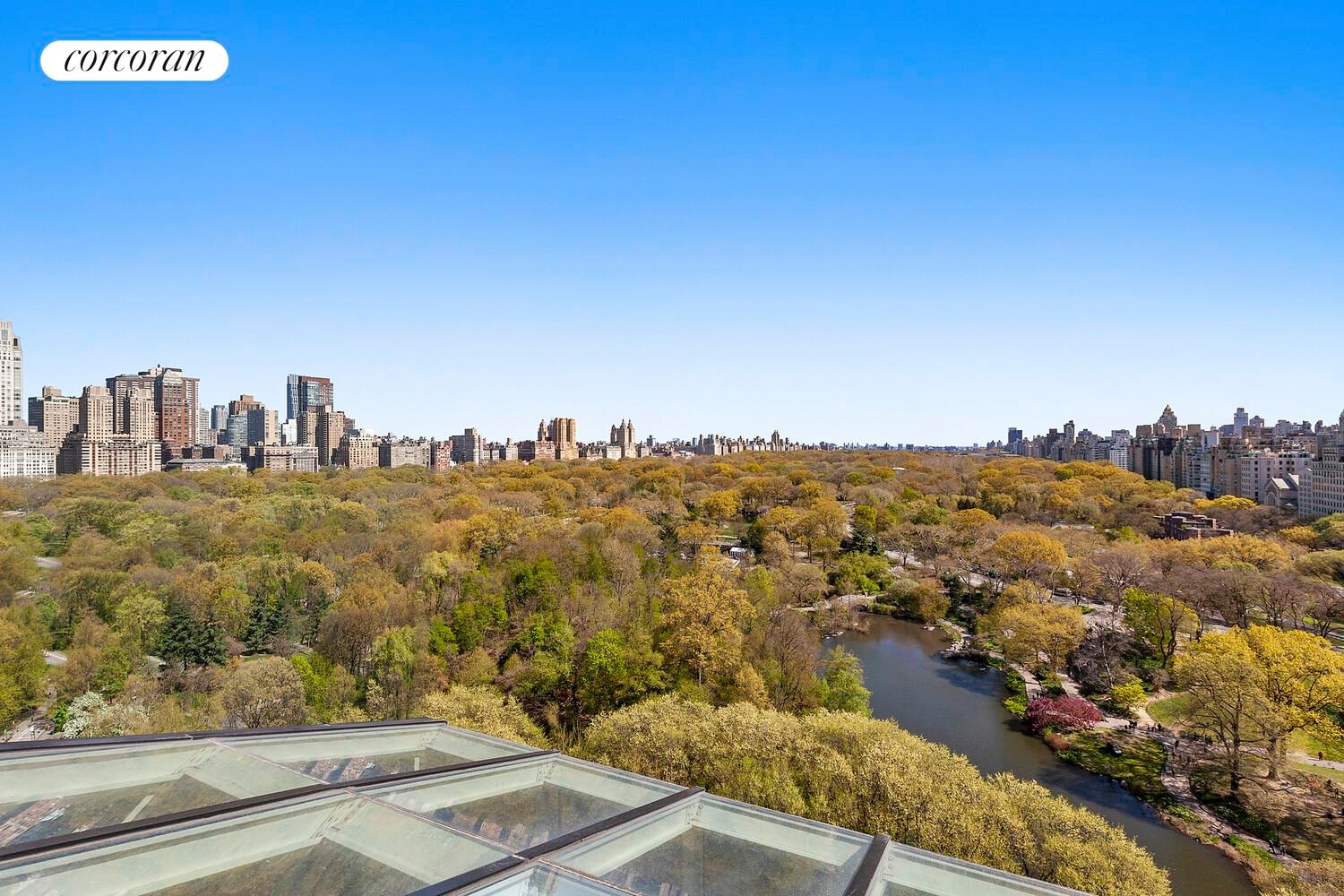 MIDCENTURY DREAM PERCHED ABOVE CENTRAL PARK. This stunning circa 1963 two bedroom, two-and-a-half bath duplex penthouse offers unparalleled and gracious indoor/outdoor living, with a large wraparound terrace directly facing Central Park. Dramatic, chic, and perfect for entertaining, there is nothing quite like this on Central Park South, on or off market.