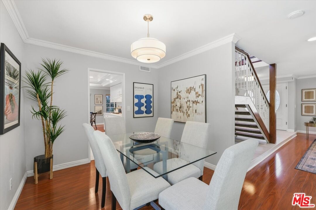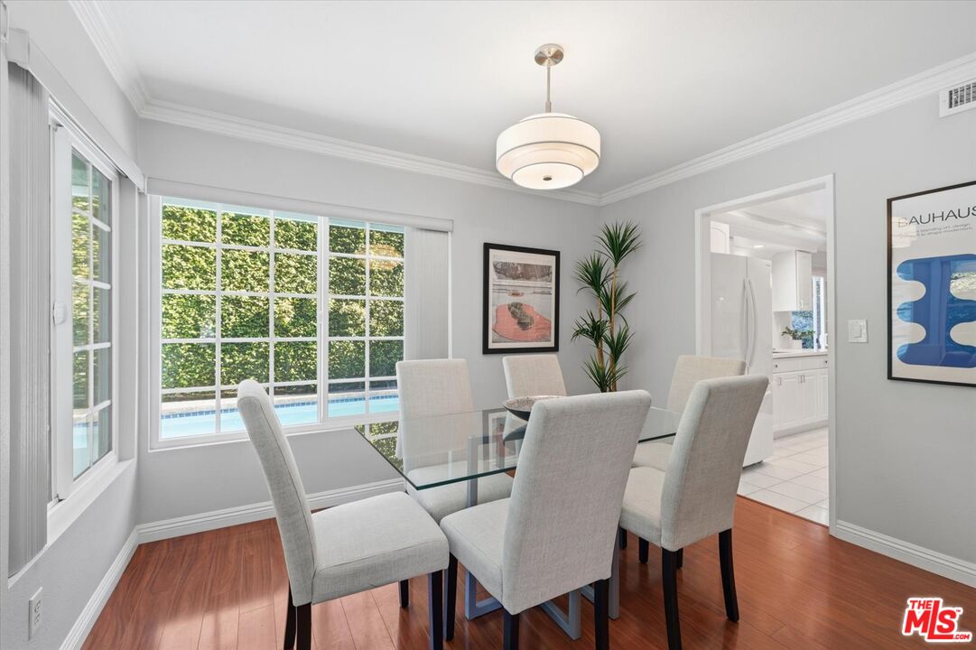 This beautifully upgraded home is right in the heart of the Mar Vista Elementary school district and situated on a quiet tree-lined cul-de-sac. A bright, spacious kitchen with breakfast area and adjacent dining room. The immaculate kitchen beckons gourmet cooking and entertaining complemented by quartz counters and elegantly tiled backsplash and sleek appliances. Two impeccably maintained bedrooms upstairs share a polished, modern bathroom and the master suite boasts a walk-in closet and gorgeous bathroom. French doors open to the private, leafy backyard which is a private paradise for al fresco dining and relaxation next to the sparkling pool. A large garage offers storage, parking, and ADU potential. The home offers a wonderful living experience in a tranquil residential setting and is walking distance from great schools, parks, shopping, dining.