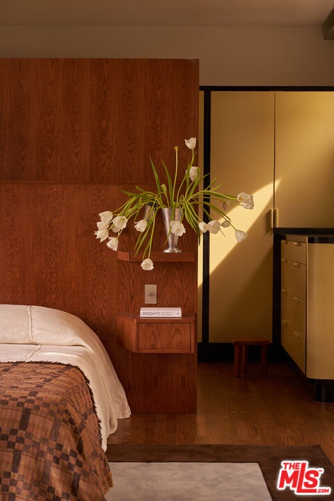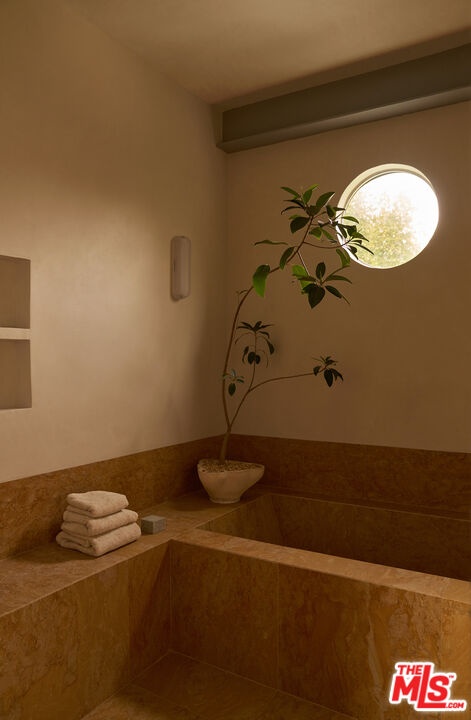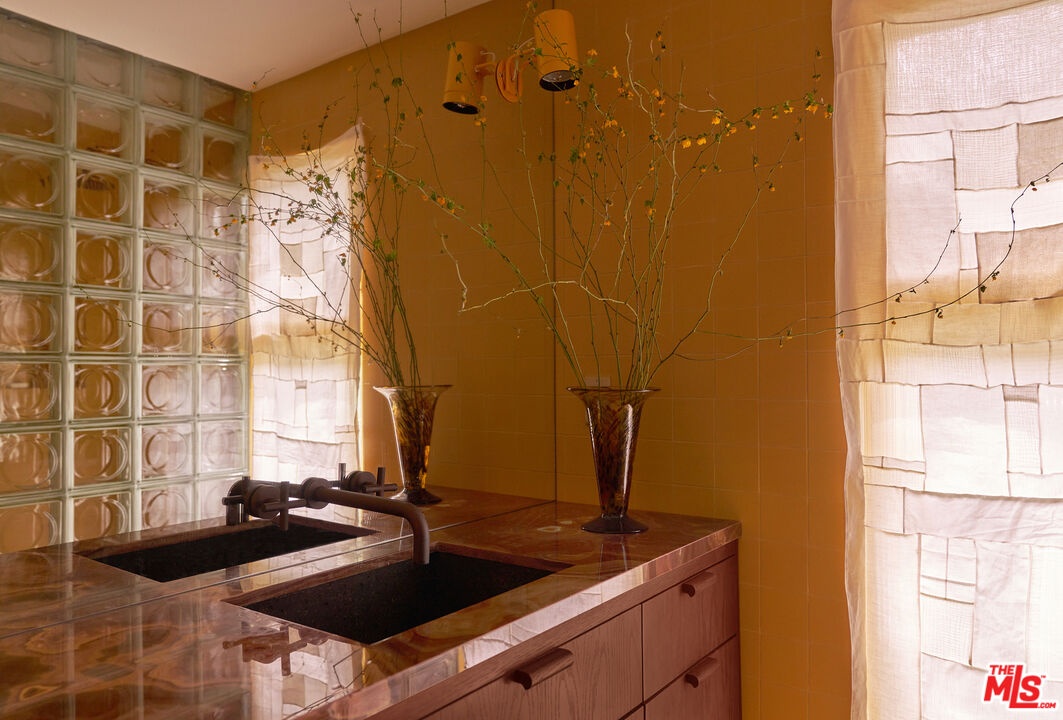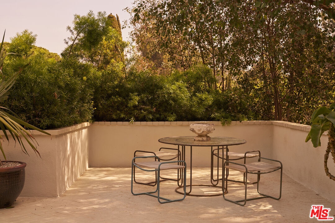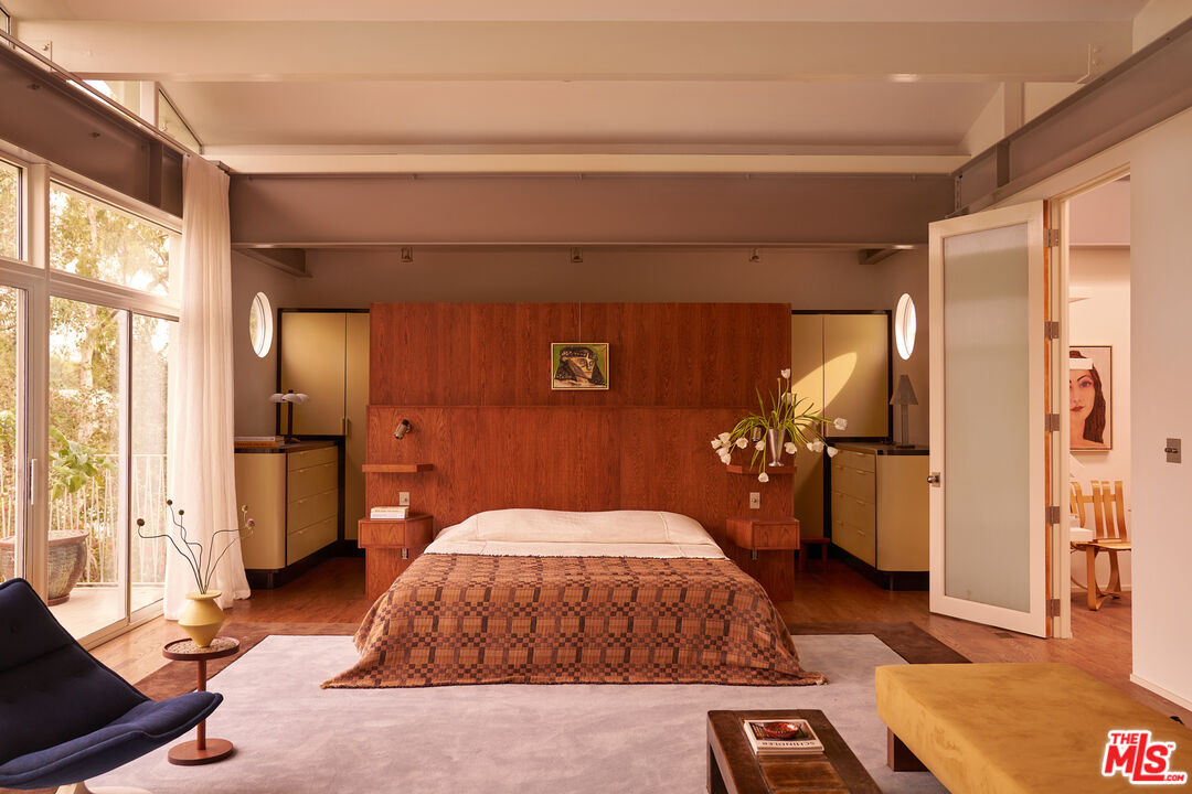Set in a quiet pocket of the hills within The Colony is a sought-after enclave known for its concentration of beautifully preserved mid-century homes the property captures a rare balance of privacy and connection, evoking a distinct Palm Springs sensibility. Mature trees and lush tropical plantings create a layered, almost cinematic landscape, the setting feels both grounded and quietly removed.Originally built in 1960, the residence stands as a distinctive example of mid-century modern architecture, defined by its sculptural rooflines, angular geometry, and rhythmic architectural elements that shape both light and volume. Designed by Whitney R. Smith of the firm Smith & Williams, the home reflects a thoughtful dialogue between structure and environment. Set on an 8,802 sq ft lot, this 4 bedroom/3.5 bathroom property has been carefully reimagined by interior design studio Ome Dezin, preserving its architectural integrity while introducing a refined contemporary sensibility. A newly crafted oversized pivot door opens to a striking double-height foyer, where gallery-like proportions and a sawtooth ceiling allow natural light to pour in, immediately setting the tone. The flow unfolds organically across two levels, guided by a newly designed sculptural spiral staircase its bold red underside becoming both a visual anchor and a quiet statement piece. The main living spaces are defined by clarity and openness: a generous living room with a mid-century fireplace connects seamlessly to a dining area and a large open custom kitchen, centered around an expansive marble island. Materials are deliberate and tactile, with a focus on quality, proportion, and calm continuity throughout. The first level includes a lounge open to the foyer, a private bedroom suite with direct access to the garden and jacuzzi area, and a spacious bathroom that showcases refined materials. This thoughtfully designed space features a detailed layout, complete with an open shower that transitions through double glass doors to the outdoors. Dual built-out closets add to the convenience.A second wing features two additional bedrooms with integrated storage, connected to a vibrant, light-filled shared bathroom that boasts a sunny yellow, lemony color palette, complemented by copper accents and glass bricks, all quintessentially mid-century. A dedicated laundry room is conveniently located on this level. Ascending the staircase, a skylit landing opens into a library and reading space with built-in vintage speakers. The primary bedroom suite is expansive, with original high ceilings giving a loft-like vibe, plus a large custom-designed dressing room offering generous storage, alongside a grand, refined, and minimalist bathroom that features a striking view of the hills above the double vanity sink. The luxurious open shower, flanked by marble finishes, creates a serene retreat. A full-length balcony extends from the suite, overlooking the garden, pool, and surrounding greenery, with distant mountain views completing the composition.Outdoors, the grounds are arranged across two levels. The first features a fully re-plastered pool, lounge area, in-ground spa, and outdoor dining space, where the home's architectural lines can be appreciated in full.A second, more secluded tier offers a shaded terrace, a Zen garden, and a sauna creating a series of intimate environments within the landscape. Additional features include a large double garage with built-in storage, controlled access from both sides of the property, and a consistent emphasis on privacy, light, and spatial harmony throughout. "The Colony" is located in Upper Nichols Canyon, only minutes from the most iconic spots Hollywood has to offer. This is a rare opportunity to acquire a thoughtfully restored mid-century residence, one that remains true to its origins while benefiting from the careful vision of its most recent design intervention. Welcome home!