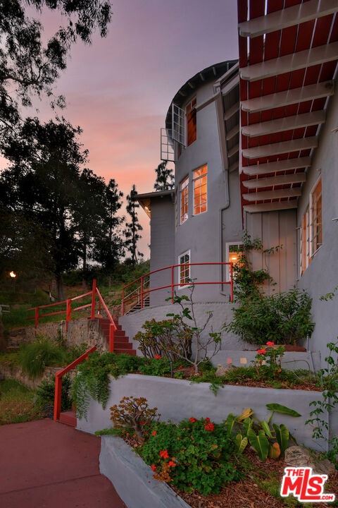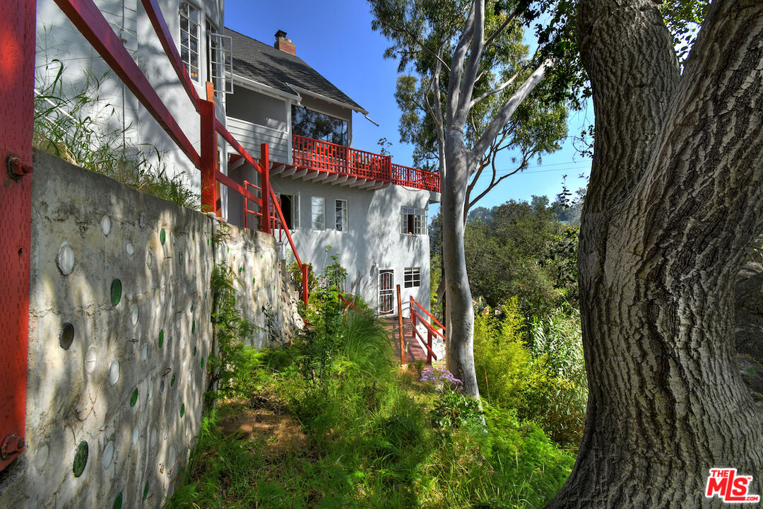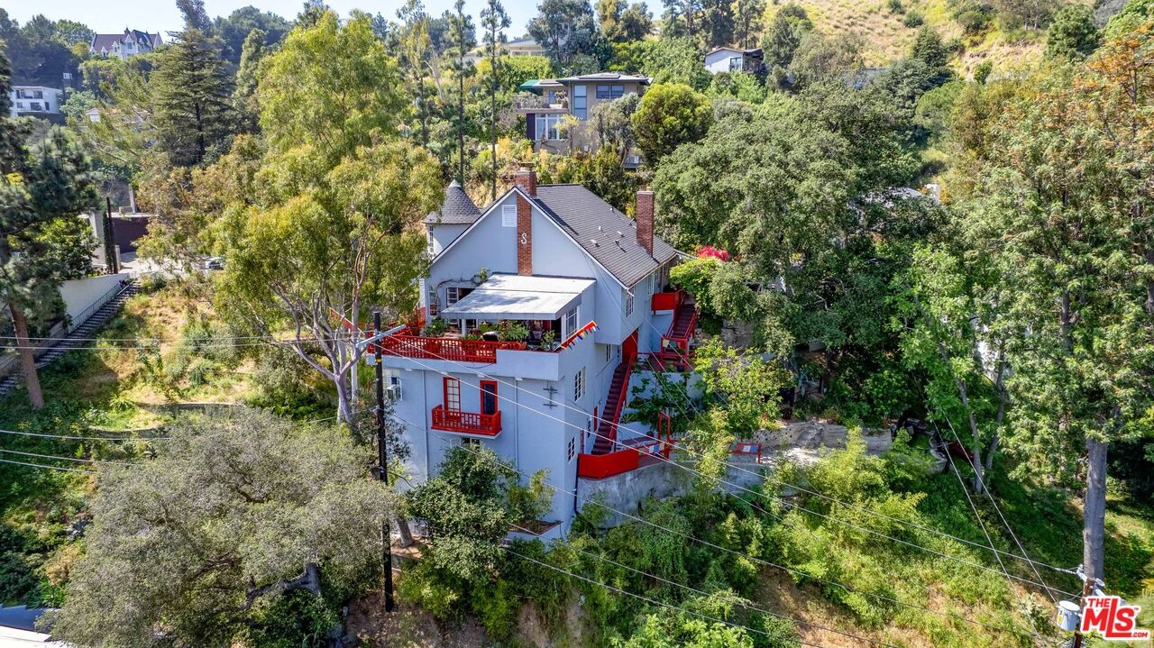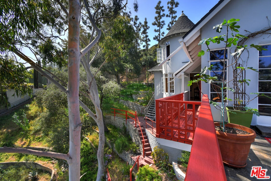 Welcome to the famed Hollywoodland enclave, where storybook style lives on today just as it has for over a century. This is a rare opportunity to reside in "The Enchanted Cottage," a historic and whimsical retreat complete with its very own turret. If you have ever dreamed of living in a character-filled home like those found in the fairy tales of your childhood, this is that dream realized. Nestled beneath the iconic Hollywood Sign in Beachwood Canyon, the site offers pure mountainside serenity while remaining only moments away from the city. The glamour of Hollywood's heyday is alive and well in this classic residence, which has been pristinely maintained and thoughtfully renovated. By floating the residence above the embankment like a castle, renowned architect W.L. Schmolle achieved a living environment that affords privacy, security, and stunning hillside views. Upon entering, you are greeted by soaring 14-foot Vaulted ceiling with grand wood beams in a living room anchored by a true wood-burning fireplace and expansive picture windows with views overlooking Griffith Park, the Hollywood Hills and all the way down to the Port of Long Beach. A cozy den offers a quiet respite, while the redesigned chef's kitchen outfitted with an Italian Bertazzoni range, commercial-grade appliances, and stone counters will delight any culinary enthusiast. The formal dining room, featuring fanciful pocket doors, is both rustic and inviting for elegant dinner parties. This space leads to an impressive 450-square-foot, four-season outdoor deck that is half-covered and half-open-air, featuring its own brick wood-burning fireplace and panoramic views in every direction. Old-world craftsmanship is evident in every detail, from the hand-milled black walnut finishes to the leaded glass windows. Behind an obscure door, you will discover a hidden private bar within the turret; climb the ladder to find a circular meditation space and a secret bedroom nestled beneath a skylight for whimsical nights spent sleeping under the stars. The expansive primary retreat offers views from every window, two large walk-in closets, and a Juliet balcony, while the redone main bath features dual marble sinks and heated floors. The property provides ample storage, including an apx. 600-square-foot East Coast-style attic and a wine room with a 170-bottle EuroCave. Additionally, an apx. 800-square-foot lower-level guest apartment featuring a rare, vintage red color O'Keefe & Merritt stove and a clawfoot tub in the full bath offers a private entrance perfect for a home office, creative studio, or potential rental. Outside, a terraced personal park with fruit trees, meandering pathway, a raised-bed vegetable garden, and private patios shaded by a 100-year-old oak tree invites a sustainable lifestyle. A few steps past your next door neighbor you can walk down one of the six hidden, historic 1920"s Stone Beachwood Canyon Steps that brings you to the charming Beachwood Village Square with its shops, grocery market, and the world Famous Beachwood Canyon Cafe. Hiking trails to Lake Hollywood are right outside your front door, as well as close by access to horseback riding at Sunset Ranch Hollywood. A One-of-a Kind Enchanting Retreat-not to be missed. An opportunity like this to own a piece of history doesn't come around every day. Lot next door is 2890 Belden and is priced at $249,000 which is the personal park adjacent to the home. This is a bundled offering; the residence and secondary parcel are inseparable components of this sale to ensure the seclusion, privacy and buffer zone of the estate-sized footprint in the heart of the neighborhood.