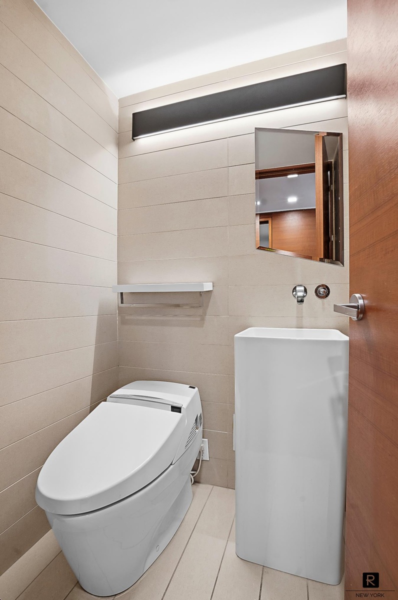 The residence offers flexible and private living arrangements. A private bedroom wing includes two spacious bedrooms, two full bathrooms, and an in-unit washer and dryer, creating a serene retreat. The primary suite is a luxurious sanctuary with its own terrace, complete with custom closets, motorized shades, and a spa-inspired bathroom featuring a windowed steam room and oversized rain shower, embodying understated elegance.