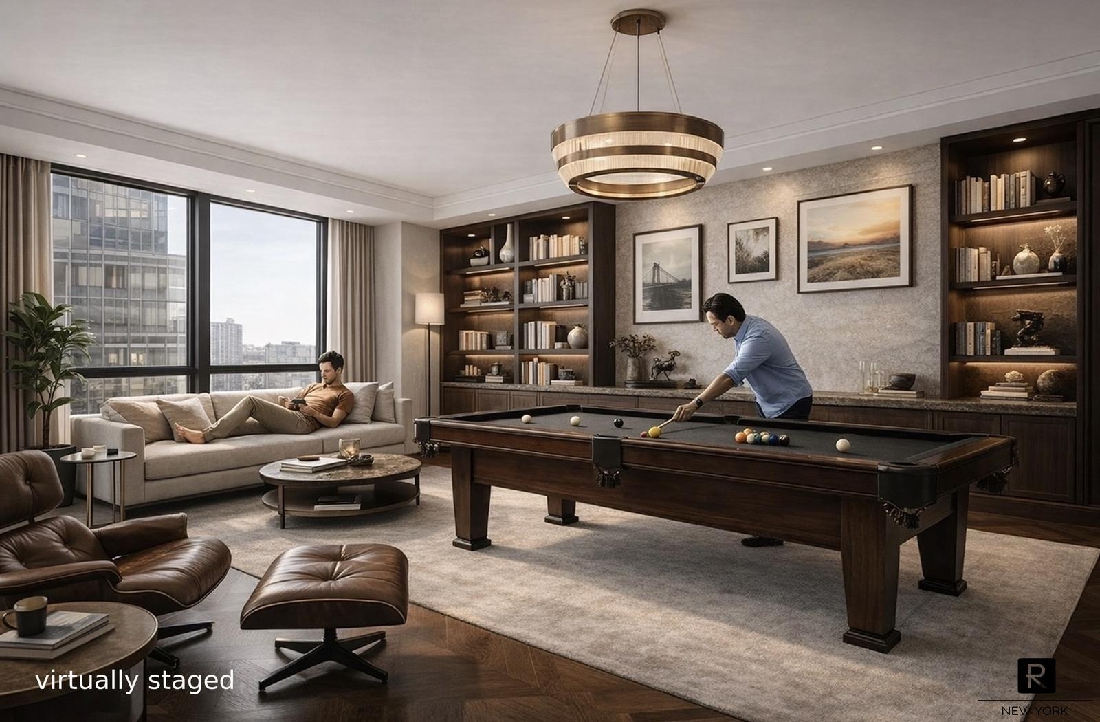 Residents of Dag Hammarskjold Tower enjoy white-glove amenities: 24-hour doorman and concierge, Indoor rooftop pool, State-of-the-art fitness center with steam and sauna, Residents’ lounge and private event space, Children’s playroom, Landscaped rooftop terrace with panoramic city views, Private storage and bike room, On-site parking garage, Live-in superintendent.