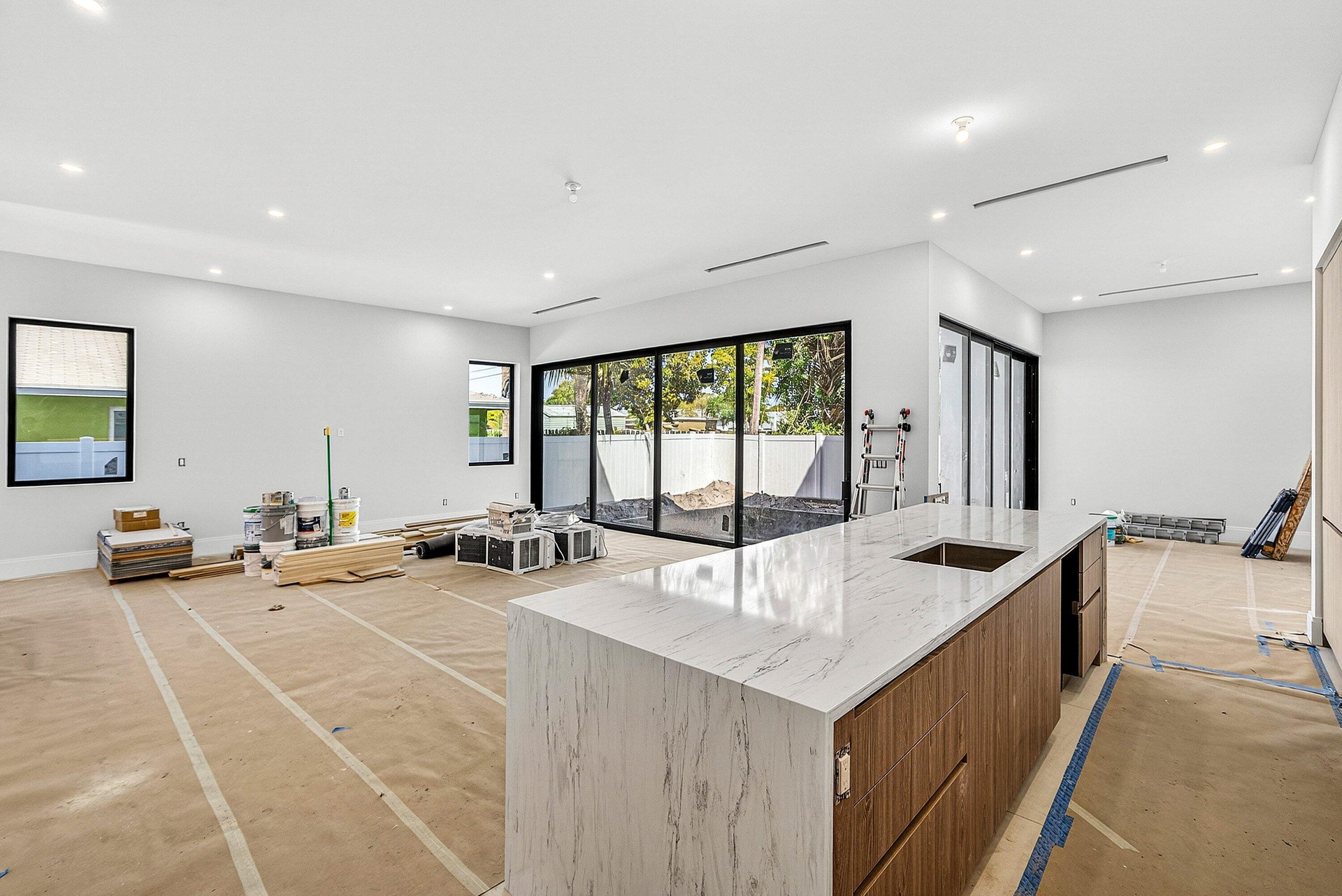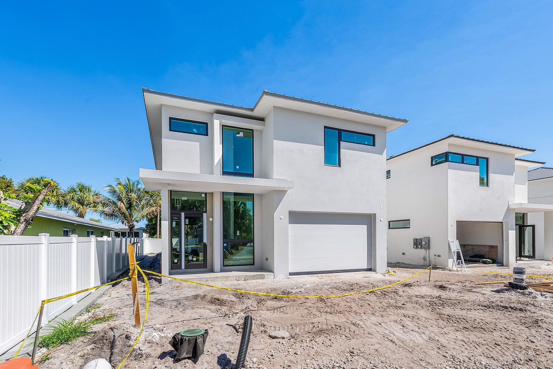 A striking expression of modern design, this newly constructed residence by Marc Julien Homes offers a seamless blend of architecture, light, and livability in one of East Delray Beach's hottest in-town locations - Osceola Park. Encompassing 3,223 square feet under air, this thoughtfully designed two-story home delivers clean lines, expansive glass, and a true indoor-outdoor lifestyle. From the moment you enter, a dramatic two-story foyer sets the tone, filling the home with natural light and volume. The open-concept living, dining, and kitchen spaces flow effortlessly, enhanced by oversized dual stacking sliders that extend to the private backyard—creating a seamless transition to the covered outdoor living area and saltwater pool with sun shelf. The designer kitchen serves as the centerpiece of the home, featuring custom two-toned cabinetry, quartz countertops and full backsplash, and a large waterfall-edge island ideal for both everyday living and entertaining. A premium Fisher & Paykel appliance package, including a 36" induction range, integrated refrigeration, and high-performance ventilation, completes the space. A stylish wet bar with wine refrigeration and open shelving adds an additional layer of sophistication. The first floor also offers a private den or office, a well-appointed powder bath, and refined finishes throughout, including large-format porcelain tile flooring and linear diffusers that enhance the home's modern aesthetic. Upstairs, the primary suite is a true retreat, complete with floor-to-ceiling glass, a Juliette balcony, dual walk-in closets, and a spa-inspired bath featuring a freestanding soaking tub, walk-in shower, dual floating vanities, and designer finishes. Two additional en-suite bedrooms and a full laundry room provide both comfort and functionality. Outside, professionally designed landscaping, privacy fencing, and a paver driveway complement the home's clean architectural lines and modern curb appeal. A standing seam metal roof and full hurricane-impact glass offer both durability and peace of mind. Ideally located in Osceola Park, a darling of the developer set, on a quiet residential street just minutes from Atlantic Avenue, the beach, and Delray's renowned dining and shopping, this exceptional residence represents the best of contemporary coastal living, just 5 blocks from the heart of it all....park your car and live that chic coastal in-town lifestyle. ***Developer's fee of 1.5% payable by buyer at closing. The information published and provided including but not limited to prices, measurements, square footages, lot sizes, features, finishes, and calculations are subject to errors, omissions or changes without notice. All such information should be independently verified. All parties should perform their own due diligence to verify all information.