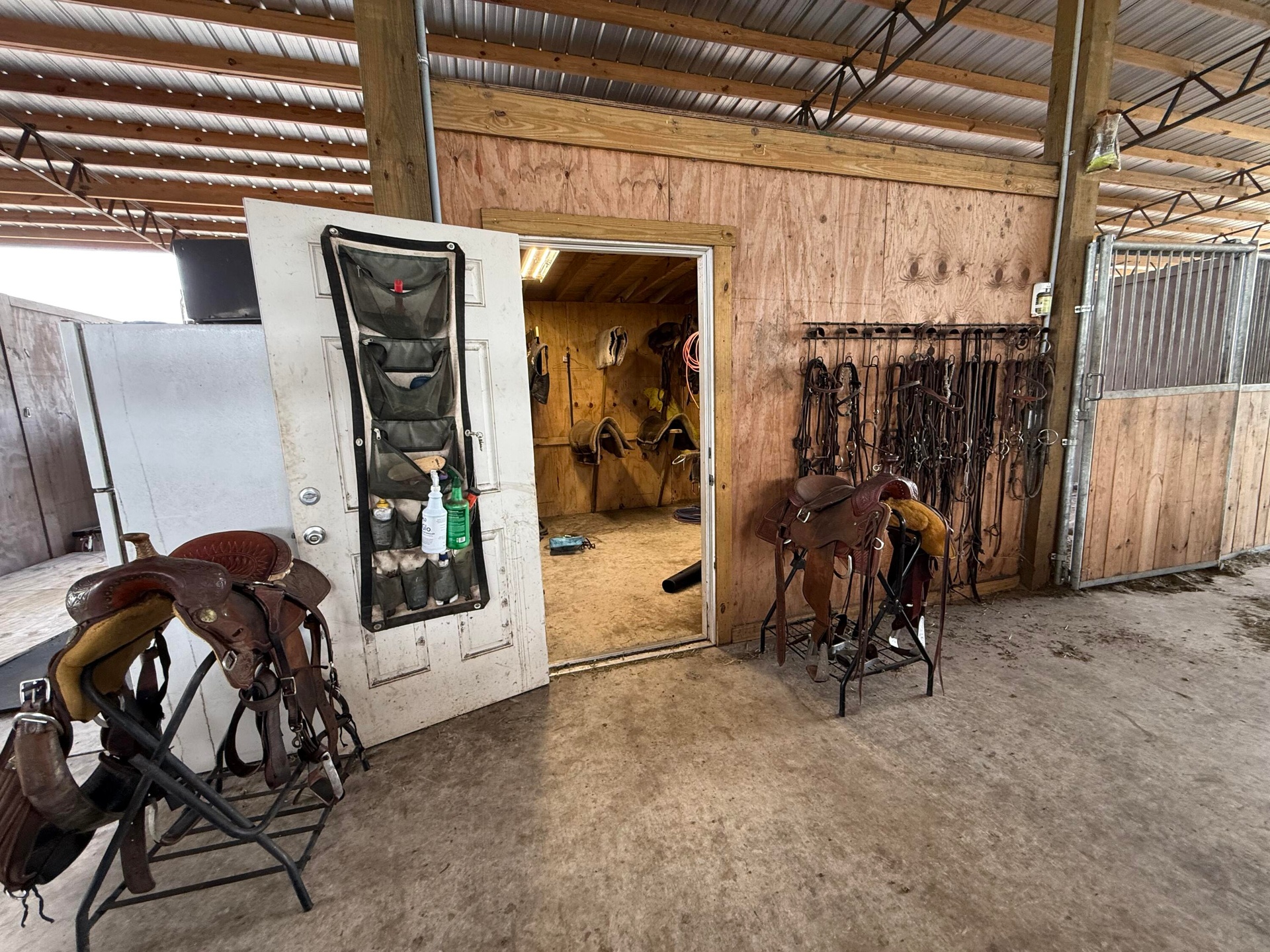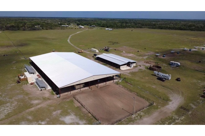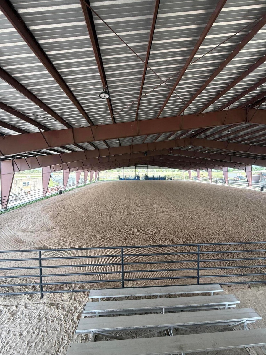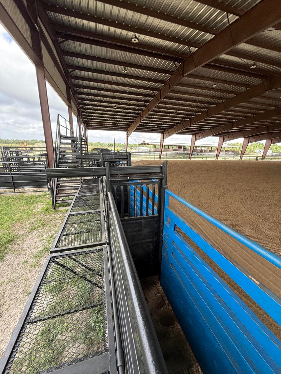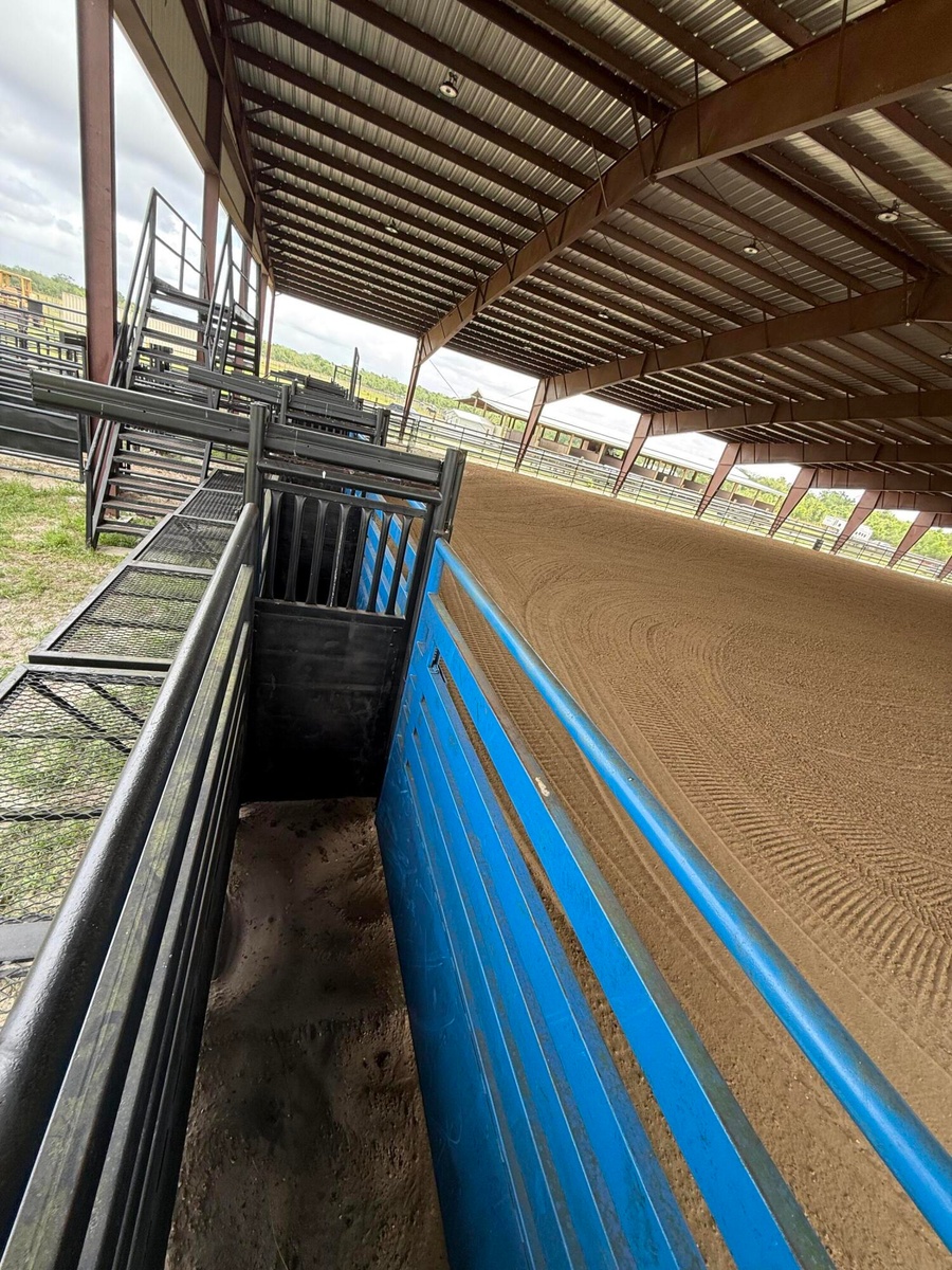 Rare opportunity to own a fully equipped 222.9-acre turnkey rodeo and equestrian facility built for serious operations and large-scale events. This one-of-a-kind property features a covered, lighted 140x250 arena, 6 bucking chutes, and a professional roping chute with box. Entertain and host with ease from the announcer's birdhouse overlooking three sets of bleachers. Designed for performance and capacity, the property includes a 16x32 round pen, 6 fenced pastures, and 16 oversized horse paddocks (approx. 200x100 each). The impressive 18-stall center-aisle barn offers 12x24 stalls, feed room, wash rack, and tack room. Complete with a 12x24 A/C office, full electric, 50-amp service, three septic systems, and five bathrooms. Built for rodeo, training, or income-producing events.