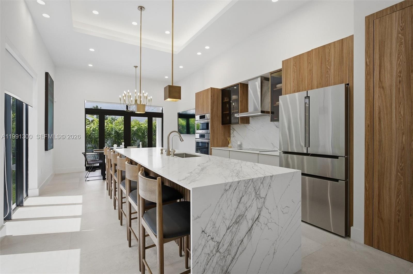 This is not just a home it's an atmosphere. Fully furnished Ultra-modern, clean lines, confident, and quietly provocative, where every space is designed to be felt as much as seen. Every element is intentional, every detail is restrained, yet completely luxurious. inside the space is warm with natural textures, light pours in from every angle from modern fully tinted windows and doors. The kitchen is a statement of seduction with sleek cabinetry, waterfall counter island, upgraded appliances, warm cabinetry and pantry. Matte flooring creates the perfect blend with marble kitchen counters, bathrooms and laundry room. Lutron switches, pool heater, electric car charger, smart toilets, upgraded pool, electronic fence, over 75 palm and fruit trees. Over $400K in upgrades and furniture.