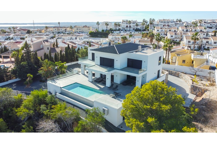 Built in 2019 to exceptionally high standards, this residence offers the perfect balance of modern architectural design and proven build quality. Spanning a total of 700 m2, the villa is situated on an expansive 1,750 m2 plot, offering total privacy and some of the finest panoramic views of the salt lakes and the Mediterranean coastlines of Guardamar and Santa Pola.