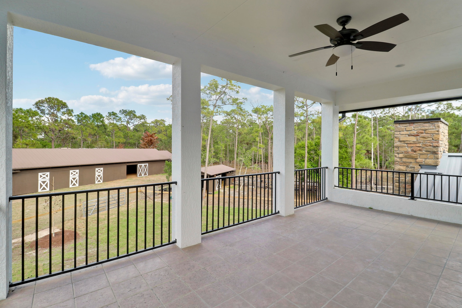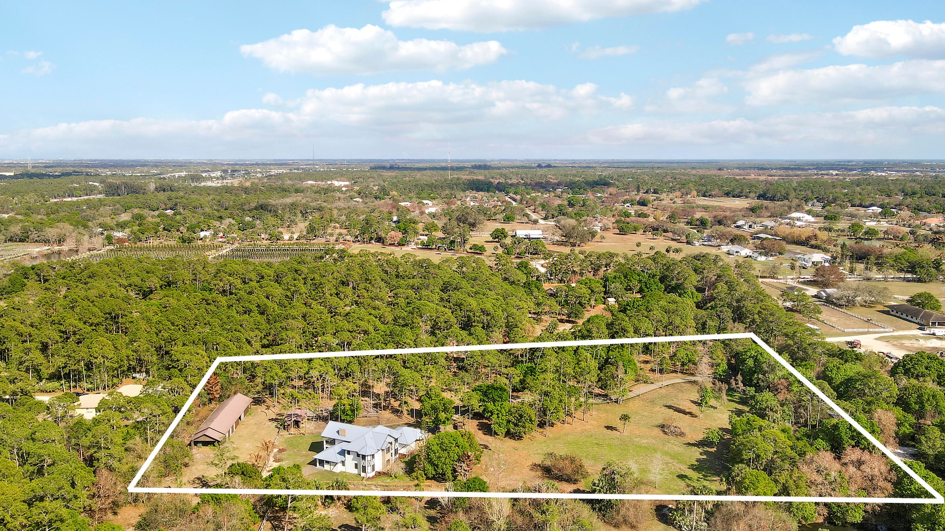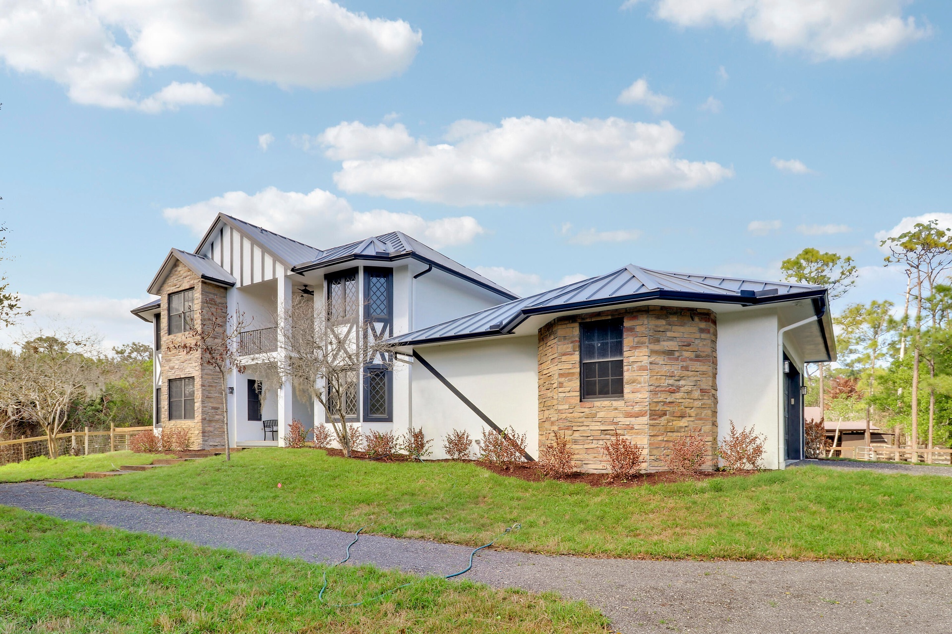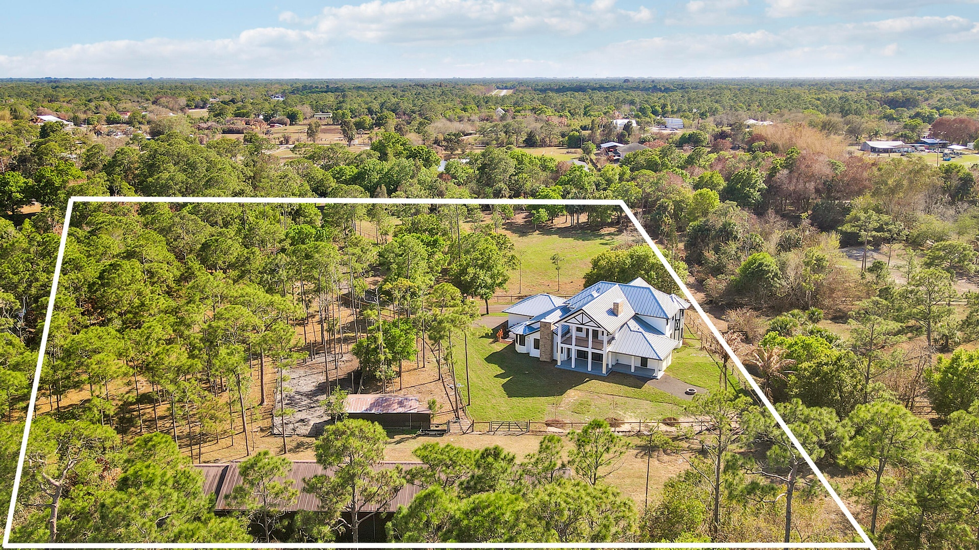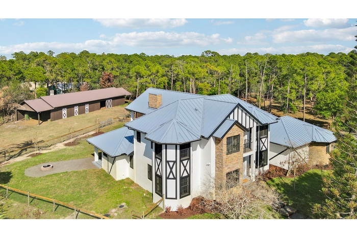 Welcome to this exquisitely renovated modern farmhouse estate, where refined luxury meets peaceful country living. Ideally located on a quiet, private street just minutes from I-95, fine dining, shopping, and everyday conveniences, this exceptional property offers the perfect balance of privacy and accessibility. Set on 5 fully fenced private acres, this stunning residence features 5 oversized bedrooms, 4.5 bathrooms, and 4,169 square feet of thoughtfully designed living space, all completely renovated with impeccable attention to detail. Every room and bathroom throughout the home has been beautifully updated, creating a seamless blend of modern sophistication and timeless farmhouse elegance. The home is filled with natural light thanks to all-new impact windows and sliding glass doors, offering both energy efficiency and peace of mind. Enhancing the home's fresh and refined aesthetic are all new lighting fixtures and ceiling fans throughout, along with brand-new flooring and carpet. The entire interior and exterior of the home have been freshly painted, providing a crisp, move-in-ready finish. At the heart of the home, the beautifully redesigned kitchen features a stunning island, a spacious custom pantry, and a separate wet bar, making it perfectly suited for both everyday living and entertaining. The living room is anchored by a new gas fireplace, creating a warm and inviting focal point ideal for gatherings and relaxing evenings. Designed with flexibility in mind, the home also features a newly added upstairs bonus room, offering additional living space that can easily serve as a media room, home office, playroom, or guest retreat. Outdoor living is just as impressive. Enjoy the newly completed front patio and expansive back deck, ideal for entertaining or relaxing while overlooking the peaceful acreage. The property has been enhanced with brand-new landscaping and a custom fire pit, creating a welcoming outdoor gathering space. The metal roof has also been recently repainted, adding to the home's well-maintained and updated appeal. Privately positioned off the road with its own private driveway, this exceptional estate offers both tranquility and convenience. The five fully fenced acres include a separate barn and paddocks, providing ample space for horses, farm animals, or simply enjoying the beauty and privacy of your own countryside retreat. This is a rare opportunity to own a fully renovated luxury farmhouse estate that seamlessly combines modern upgrades, expansive living spaces, and the serenity of country living — all in an exceptional and convenient location.