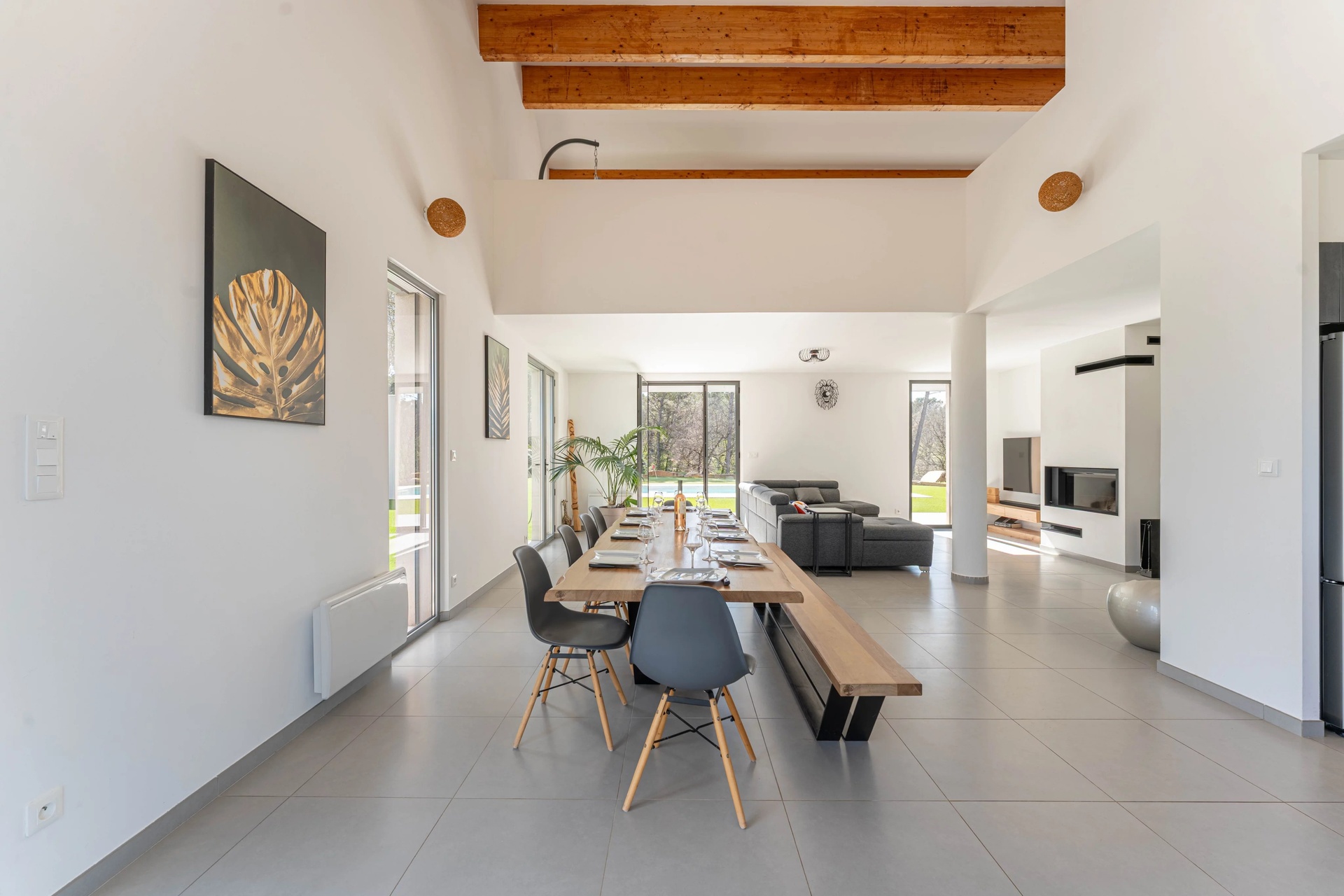 From the moment you enter, the villa impresses with its generous volumes and abundant natural light, enhanced by large openings seamlessly connecting the interior to the surrounding nature. The expansive living area of over 55 sqm, featuring a lounge and open-plan kitchen, provides an ideal setting for entertaining and enjoying special moments.
