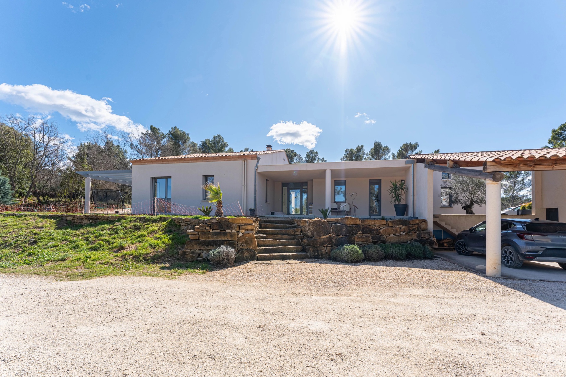 The property benefits from high-end amenities: • double carport with electric vehicle charging station • double garage • ample parking spaces