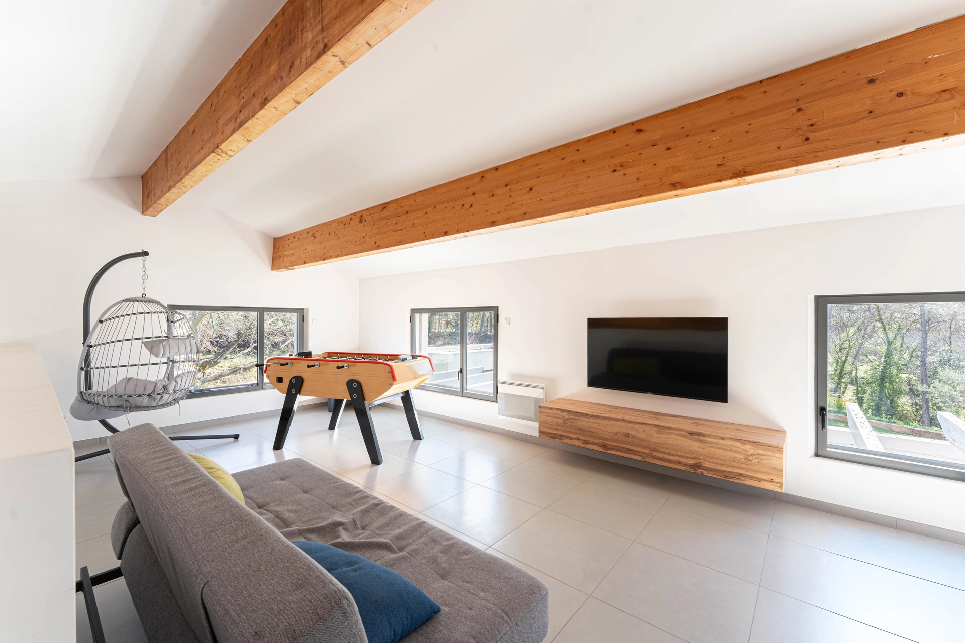 Upstairs, a versatile space allows for complete flexibility: games room, private cinema, wellness area or office. It opens onto a rooftop terrace to be designed, offering breathtaking views of Sainte-Victoire, a true emblem of Provence.
