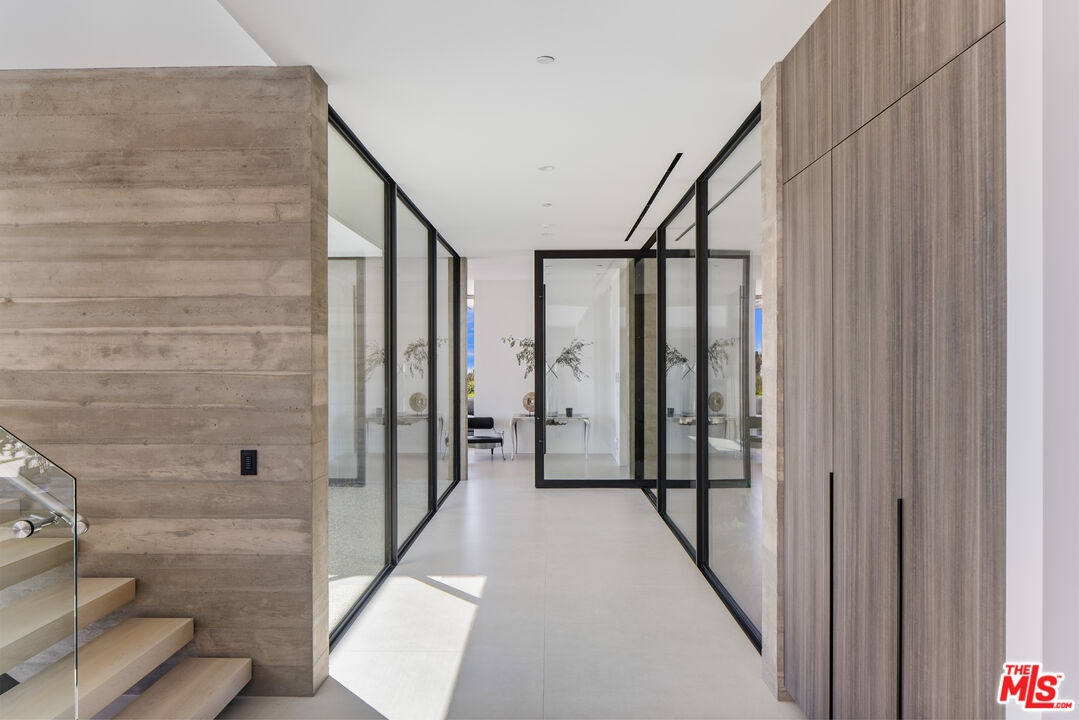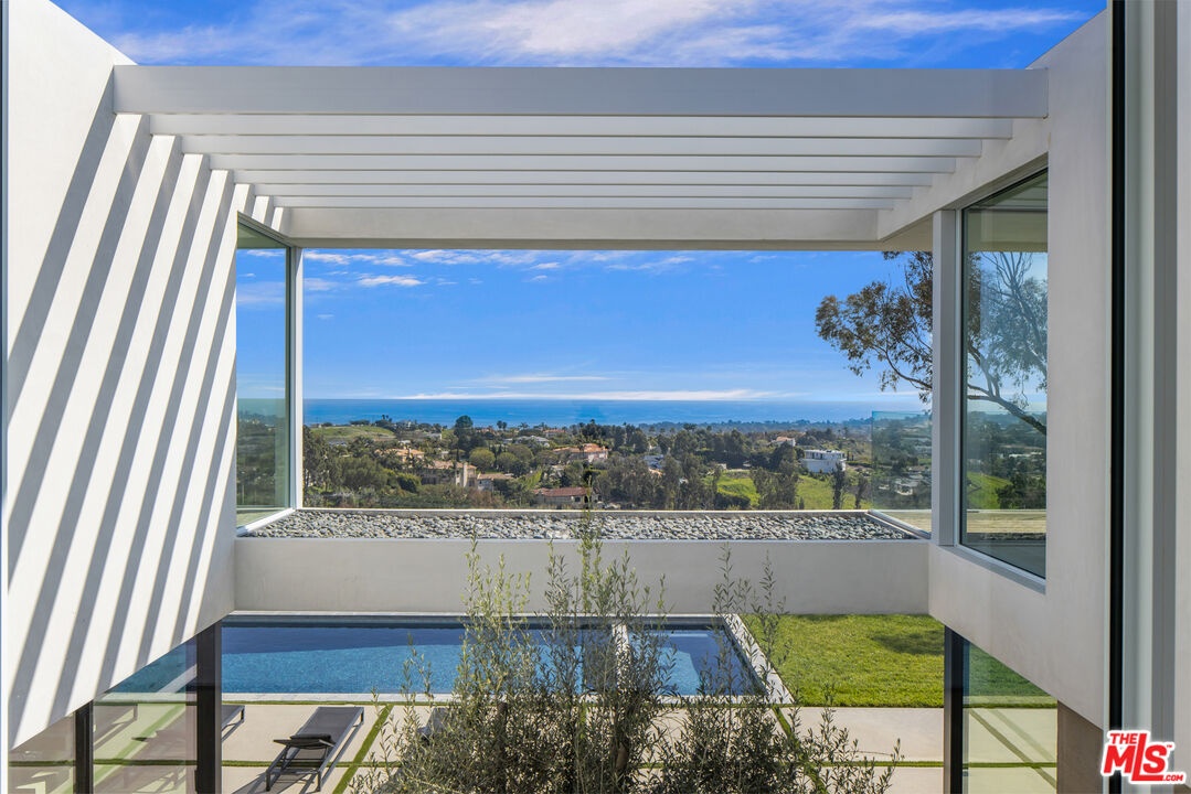 Nestled on a serene 2.8 acre bluff overlooking the Pacific Ocean, this architectural masterpiece epitomizes coastal luxury. Newly completed and designed by renowned architect Steven Kent, this 5-bedroom, 5.5-bathroom residence offers unparalleled privacy and breathtaking ocean views. Step into sophistication as you're greeted by a meticulously crafted interior, where an expansive double-height living volume overlooks the spacious backyard entertainment area and infinity-edge pool. Floor-to-ceiling glass doors and windows seamlessly connect the indoor and outdoor spaces, allowing for effortless entertainment and relaxation. Architectural elegance abounds with board-formed concrete walls, creating a harmonious blend of contemporary design and natural elements. Ascend the open staircase to discover a bridge that offers panoramic views of the ocean. Indulge in the epitome of luxury in the primary suite, featuring dual walk-in closets, a private balcony, and a spa-inspired ensuite with sweeping hillside views from the soaking tub. Each additional bedroom boasts its own ensuite, walk-in closet, and private balcony. Embrace the Southern California lifestyle in the expansive backyard retreat, featuring a 60 ft. zero-edge swimming pool, oversized spa, chic cabana and firepit, tennis court, and mesmerizing city and sunset views. Additional amenities include a gourmet kitchen with Miele appliances and a built in wine refrigerator, imported Italian Doca cabinetry, a Control 4 Smart Home system, custom DaVinci gas fireplace, motorized Lutron shades throughout, wide-plank Italian flooring, solar-powered pool heating, and an attached 3-car garage with hydraulic doors.
