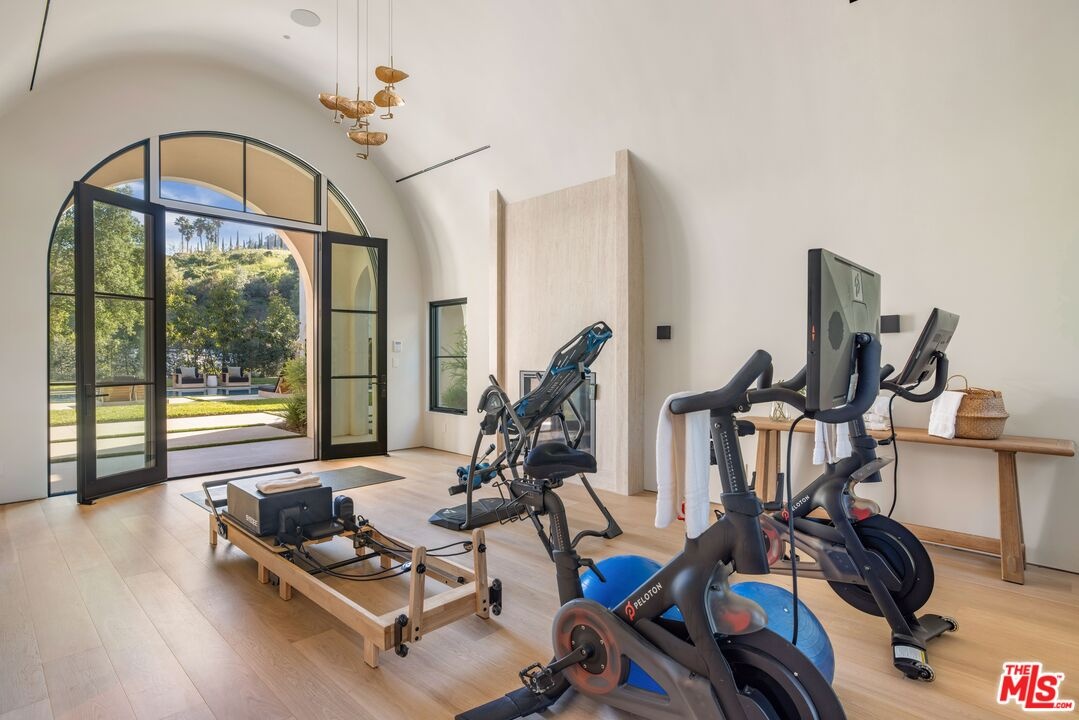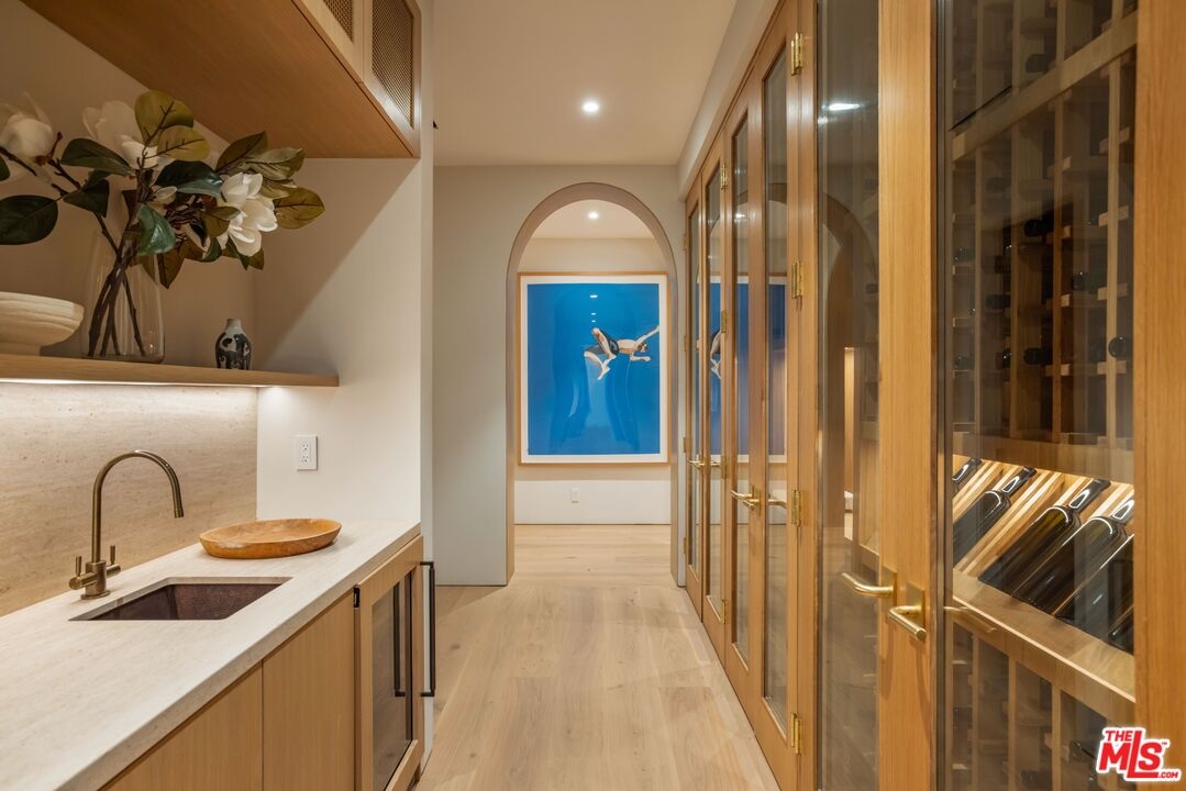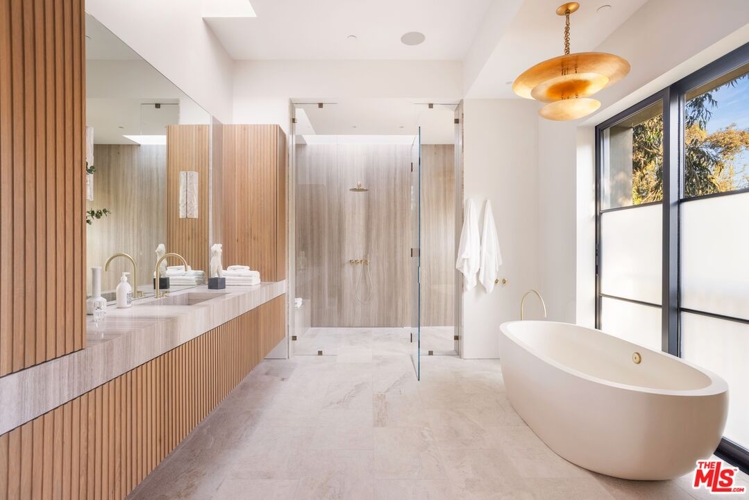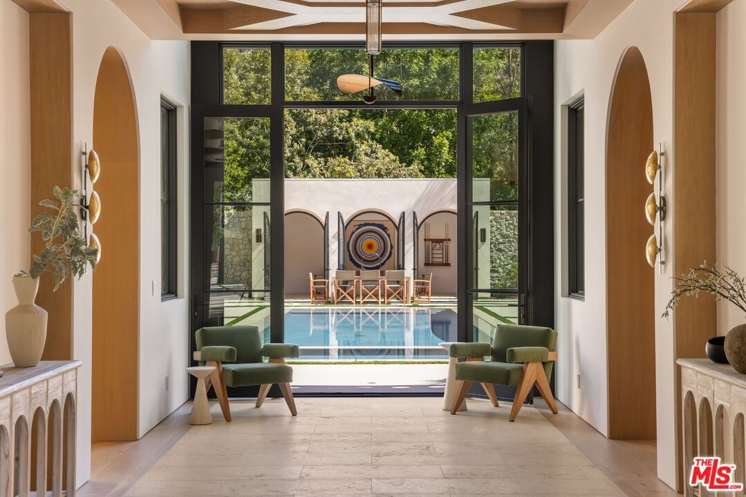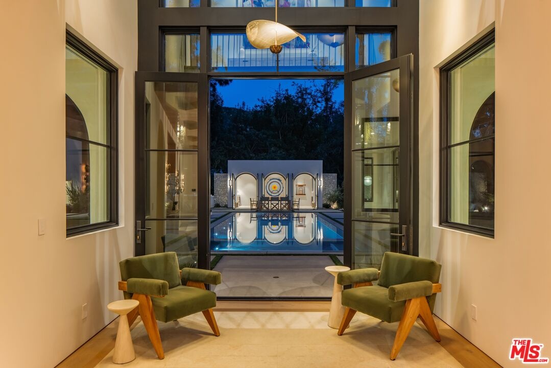 The Liebe compound is a premier romantic destination home offering an enchanting mix of the intimate, the vibrant, and the tranquil. Redefining the urban sanctuary for the global stage, this 1.3-acre Moroccan-modern compound is a rare architectural estate perfectly positioned for private, sophisticated living and for Los Angeles' upcoming spotlight during the World Cup and Olympic Games. The design, both vibrant, and filled with modern energy reflects a romantic classicism in the repetition of the arches and walk loggias that are a thematic emphasis for both the upper and lower levels throughout the household. The Loggias also act as a transition space allowing for moments of beauty and serenity as you enter and exit from the main home to the adjoining out buildings through sleek contemporary glass doors. Across four distinct structures, this nine-bedroom, fourteen-bathroom estate offers the ultimate zero-edge pool rivaling the finest hotels on the global stage, a private theater, gym structure, pool/gaming structure, in-house spa and a 600-bottle showcase wine wall. From the 15-car motor court and independent two-story staff house to the sprawling 2,400-square-foot primary sanctuary and three professional-grade kitchens, every inch is engineered for high-security, large-scale entertaining, and total seclusion. This is the very essence of a secret garden compound, both home and wellness center, a retreat from the bustle of the center of Beverly Hills just 10 minutes away. For those who have globetrotted their entire lives, this is a respite oasis, a home as a singular compound; your own personal palace and gardens sited behind gates and privacy. This is a destination home that gives way to an entire world of relaxation, serenity, health, and wellness.Approved plans ready to build a pickleball court while leaving the soccer field lawn in place and all surrounded by mature landscaping on a quiet street in the Estate Section of Benedict Canyon approximately 25 minutes to Los Angeles' premier private airport - Van Nuys private, coveted Warner Avenue Elementary and 10-30 minutes to almost every top private school in Los Angeles. This is a prime example of new construction that delivers state of the art functionality with architectural romance.