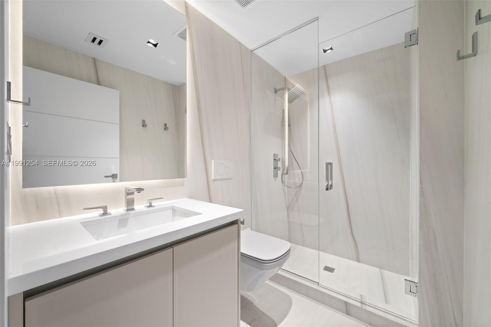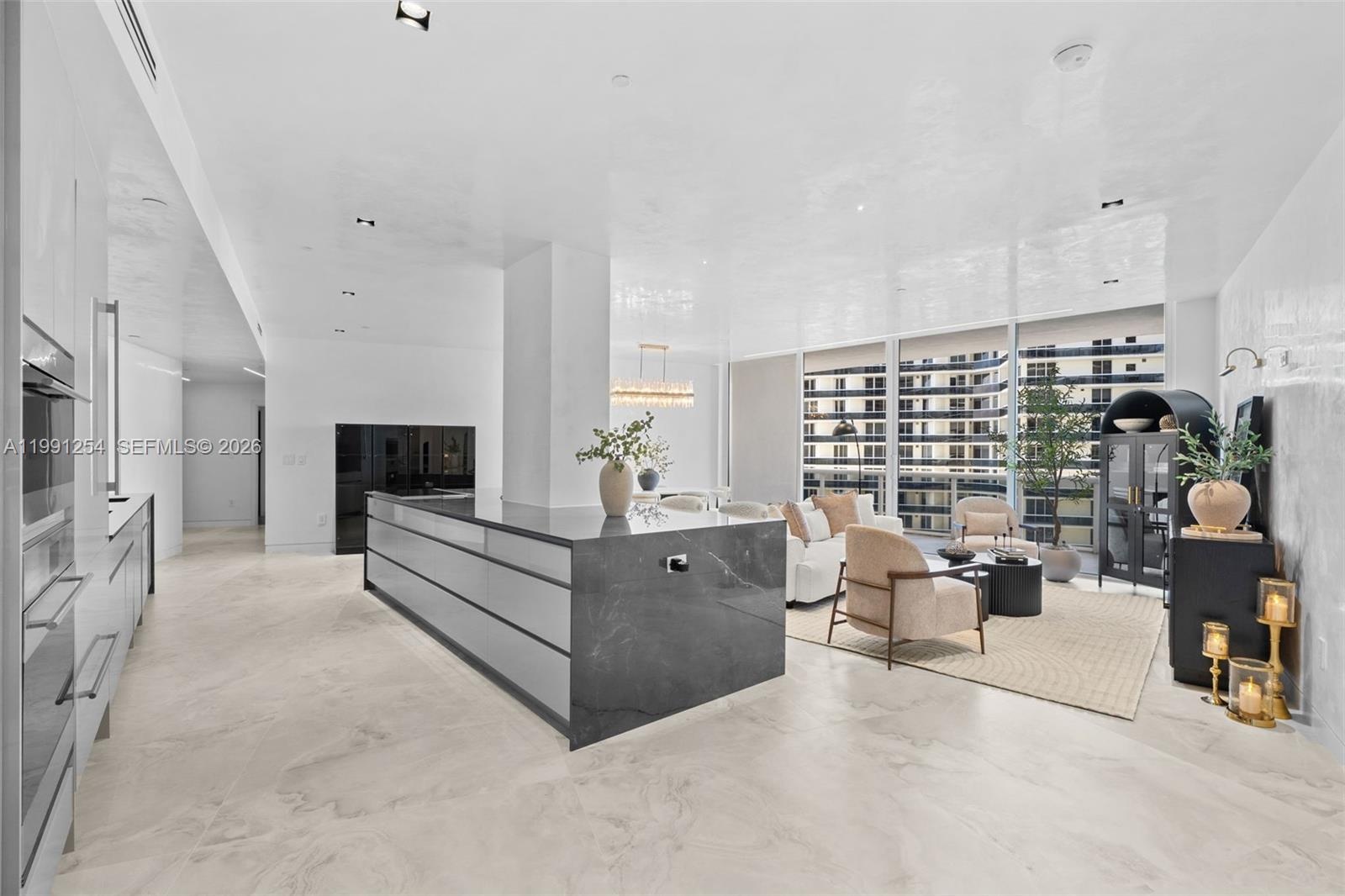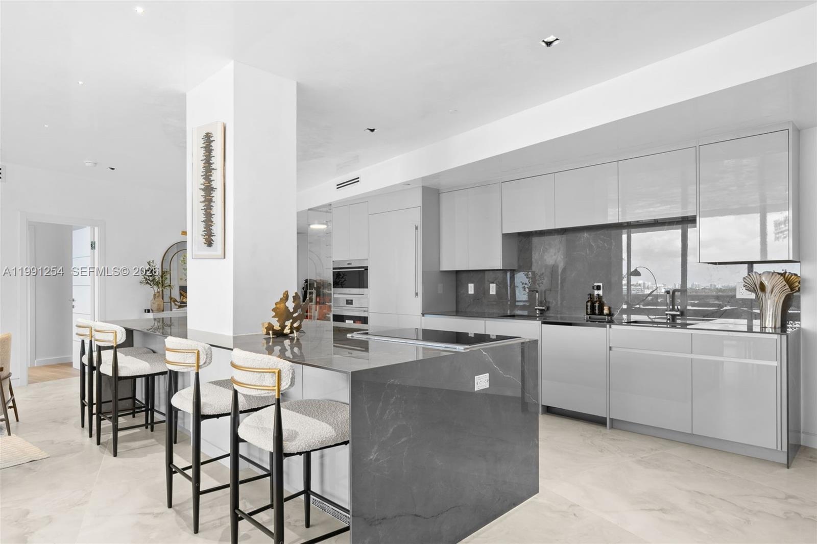 Sleek chef’s kitchen with custom cabinetry, premium appliances, and oversized island. Wide-plank flooring and high-end finishes throughout.