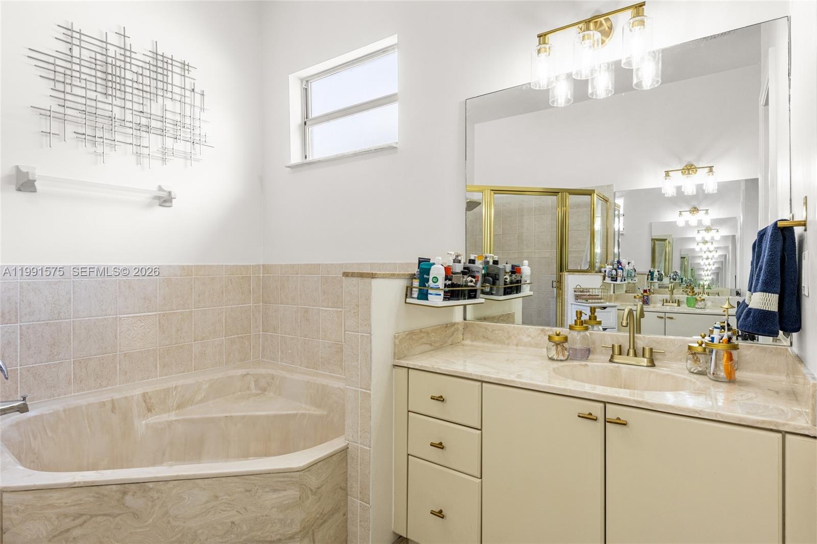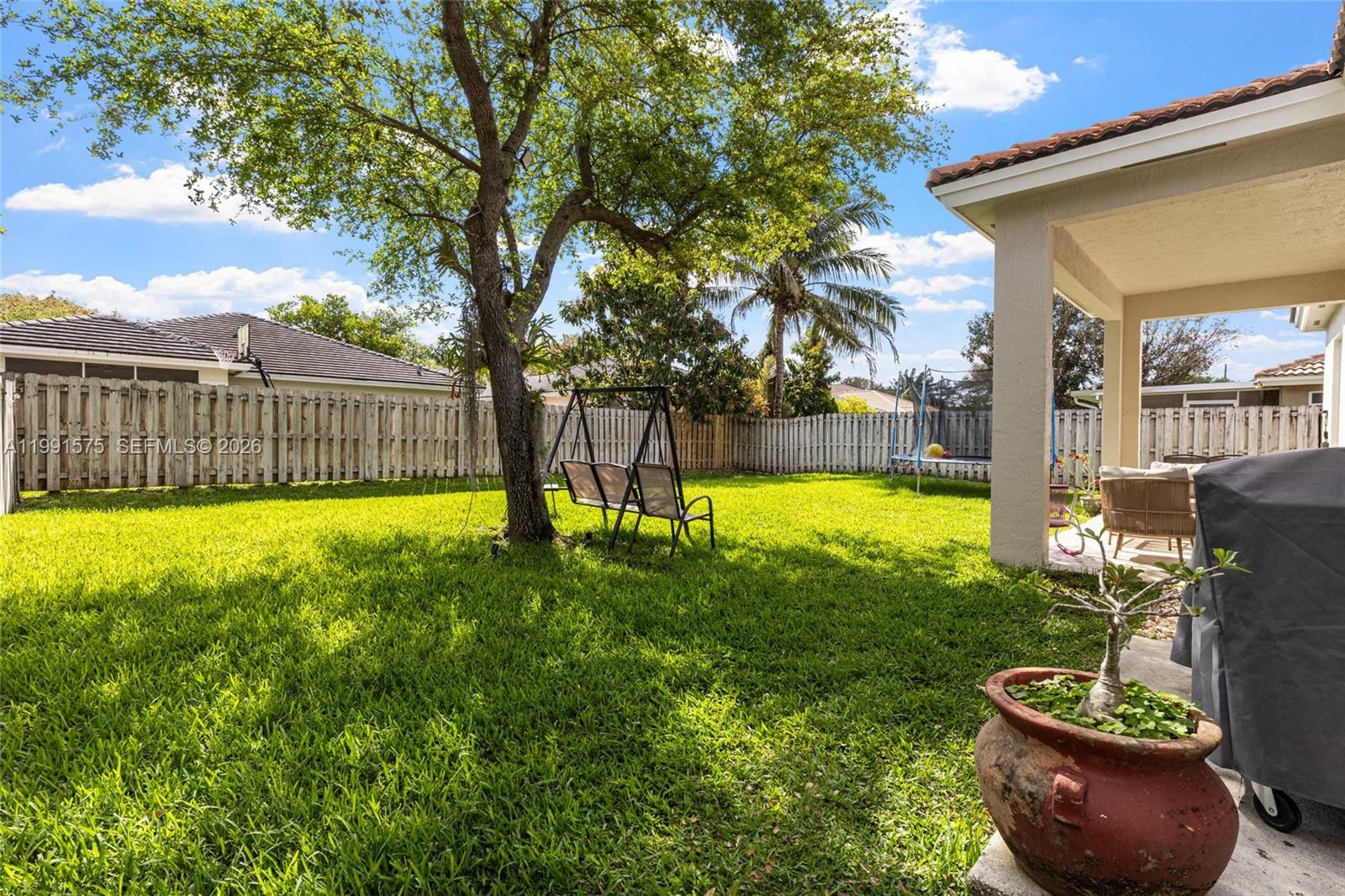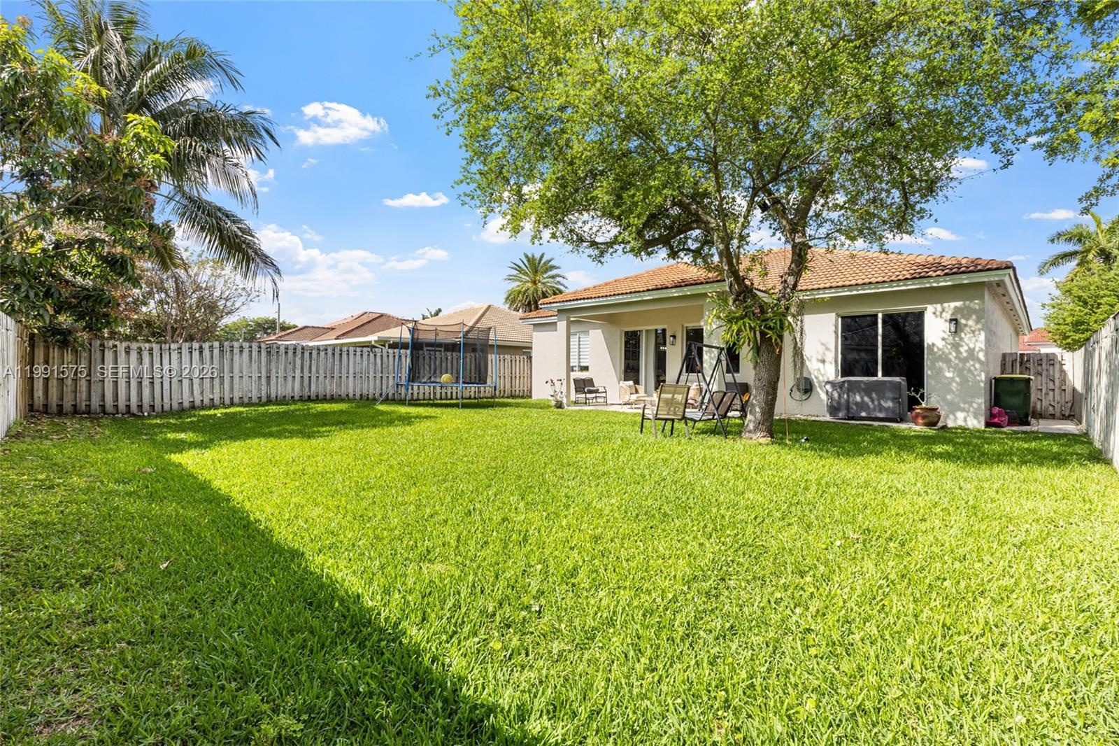 The primary suite features a walk-in closet and an en-suite bathroom with dual sinks, soaking tub, and separate shower. Enjoy a spacious fenced backyard with room for outdoor entertaining or future pool.