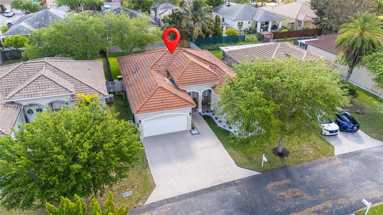 Additional features include a tile roof, paver driveway, 2-car garage, Tesla charger, and whole-home water filtration system.
