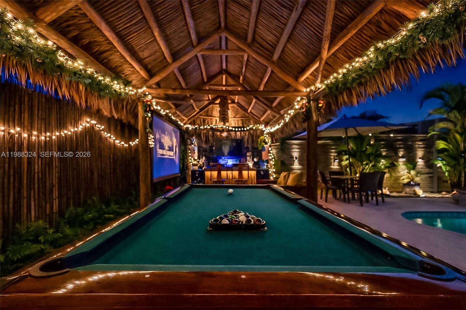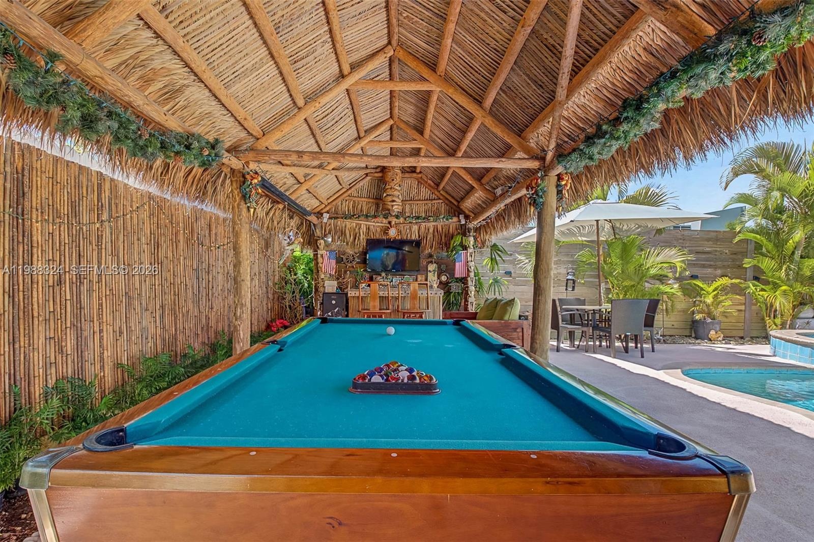 Welcome to this inviting 3-bedroom, 2-bathroom home nestled in the desirable Cutler Bay community of Chanterelle by the Bay. Offering 1,193 sq ft of living space and 1,459 total sq ft on a 5,500 sq ft lot, this home is perfect for families seeking comfort, convenience, and a great neighborhood feel.A welcoming foyer leads into bright living and dining areas filled with natural light, with lovely views of the pool and backyard; ideal for everyday living and family gatherings. The primary bedroom features a spacious remodeled cabana-style bathroom with direct access to the pool area and a walk-in closet.Step outside to a true backyard retreat where kids and adults alike can enjoy the swimming pool, tiki bar, and even a pool table; perfect for weekend barbecues, celebrations, or simply relaxing at home. Additional features include a roof replaced in 2015, washer and dryer conveniently located in the garage, accordion/panel shutters for peace of mind, a wood-fenced yard for privacy, and a 1-car garage. Located near great schools and just minutes from parks, bike paths, and top outdoor destinations; including Black Point Marina, Lakes by the Bay, and Saga Bay Park—offering endless opportunities for family fun and outdoor activities.
