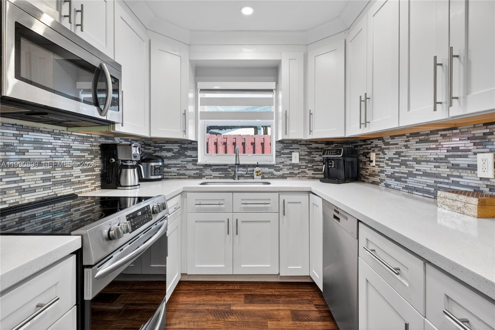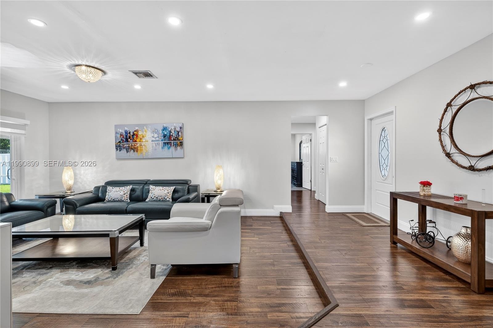Beautiful 3-bedroom, 2-bath single home with an additional room that can be used as an office, den, or possible 4th bedroom. This move-in ready home features a remodeled kitchen with white cabinetry, quartz countertops, and stainless steel appliances, along with updated bathrooms. The home also includes impact windows and doors, new interior doors throughout, and modern zebra blinds.