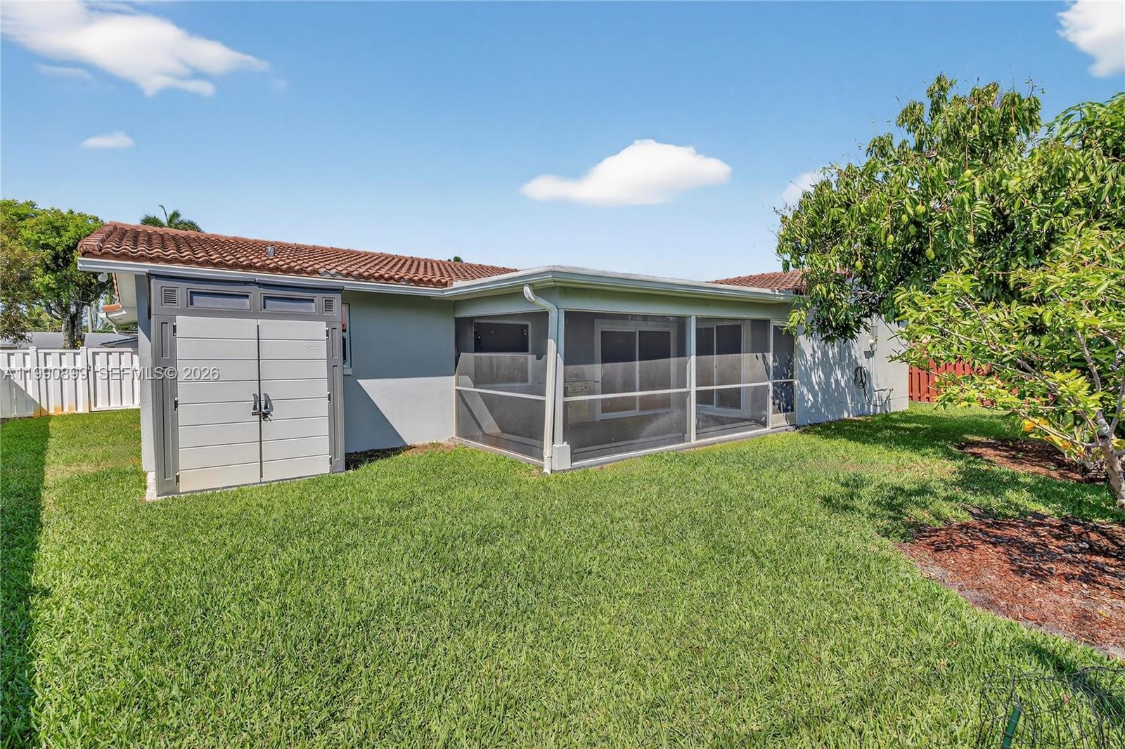 Spacious, fully fenced backyard with fruit trees, a screened-in patio, and a convenient storage shed for extra storage. The property includes a double-car garage, extended driveway for additional parking, irrigation system using well water, and municipal water and sewer. Interior and exterior have been recently painted. Conveniently located near shopping, dining, and major roadways.