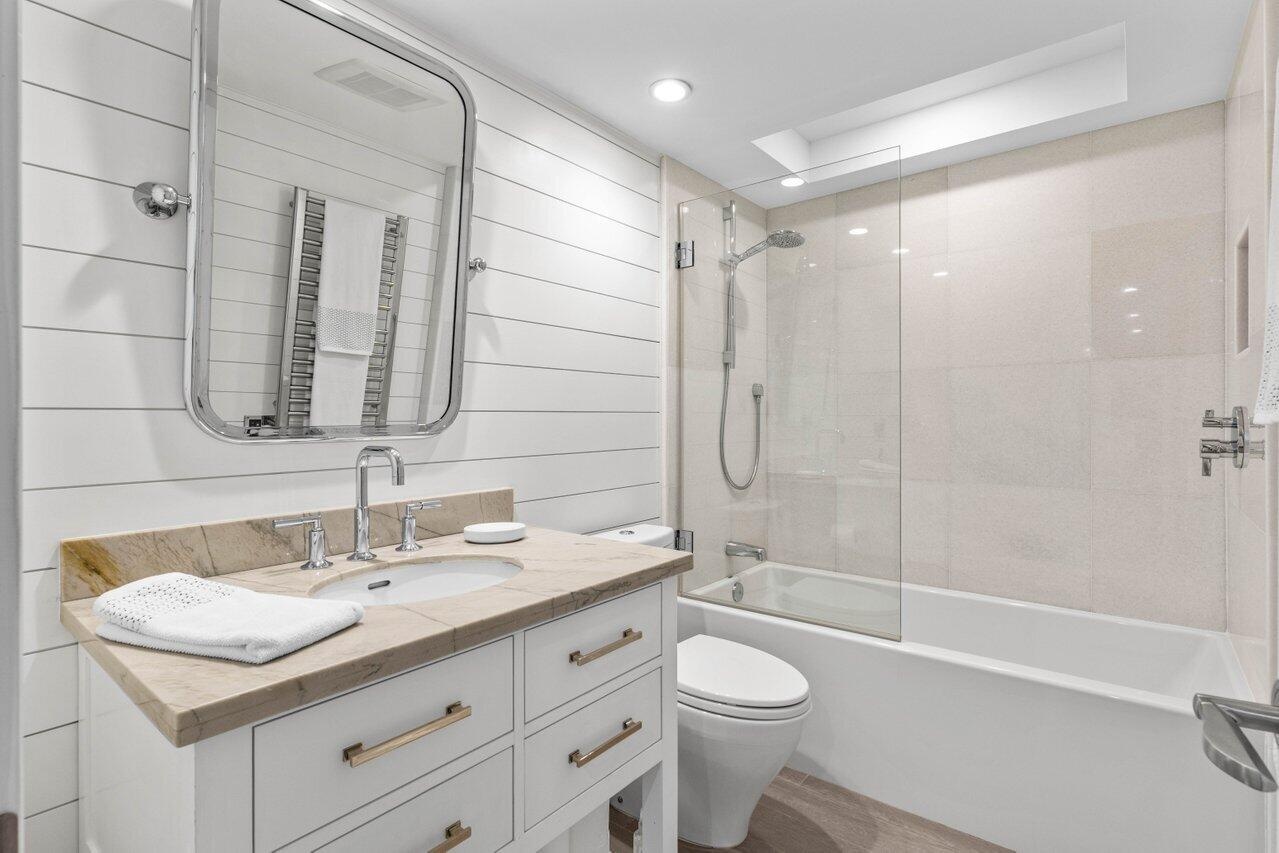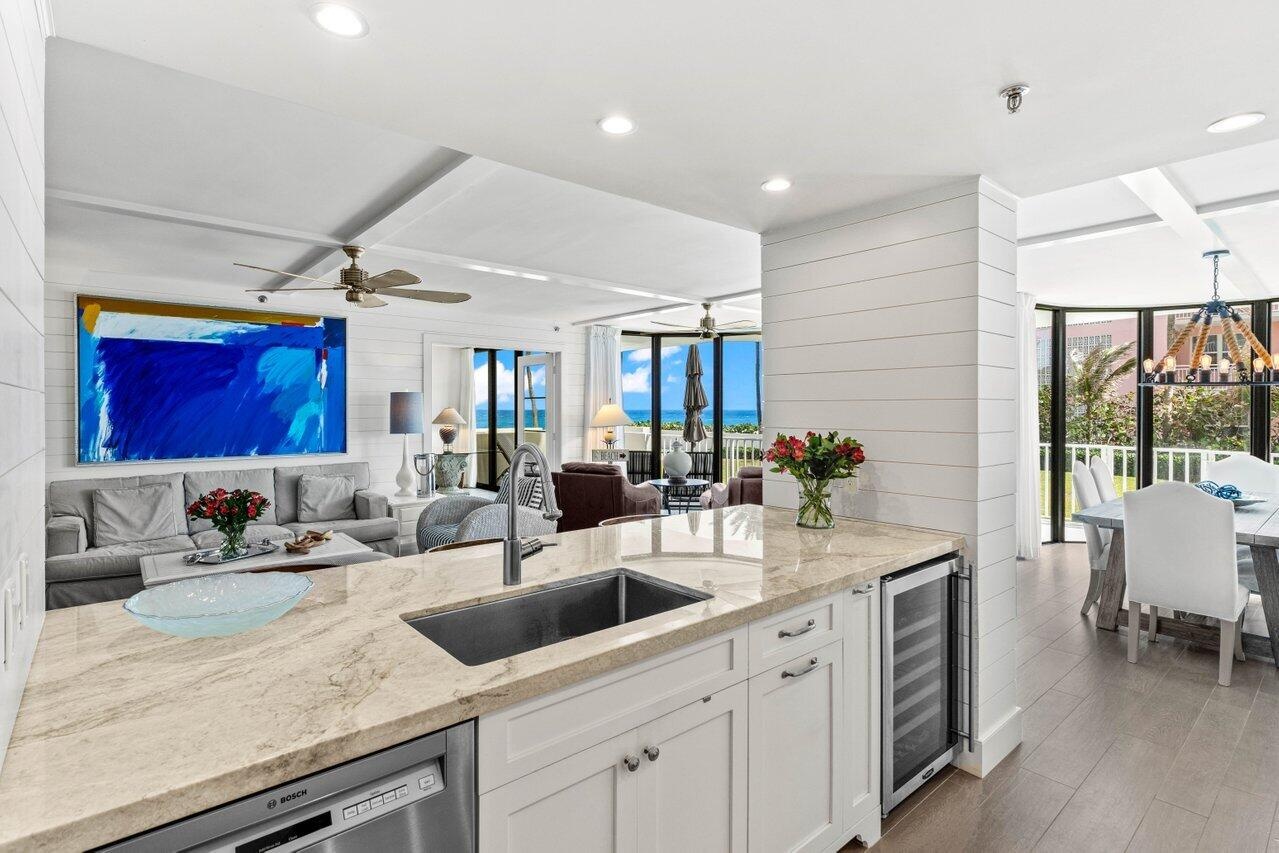 Experience coastal luxury at its finest in this beautifully updated 2-bed, 2-bath first floor walk-out condo at dog friendly Trafalgar of Highland Beach. Enjoy stunning ocean views from every room of this unit, featuring an oversized patio, with balcony access from both bedrooms and the living area. Split floorplan. The well appointed kitchen has been thoughtfully designed with the chef in mind. Premium quartzite counters, Bosch induction cooktop and dishwasher, Miele steam/convection oven, Fisher & Paykel convection oven and refrigerator, plus a wine fridge. Additional highlights include impact bay windows (2024), in-unit washer/dryer, and one assigned parking space with electrical plug. Offered fully furnished/turnkey. This perfect seaside retreat is ready for its next lucky owner. Trafalgar is a boutique oceanfront 24-hour guarded building with a gym, sauna, social room, fantastic oceanfront pool deck and elevated hot tub with ocean views. Enjoy peace of mind as the large concrete restoration project was recently completed. Brand new resident corridors and stunning new clubroom by Brown Design Group are nearing completion. Trafalgar is located just 3 buildings South of the Delray Sands Resort and Latitudes Restaurant, which is ideal when hosting out-of-town family, guests and visitors.