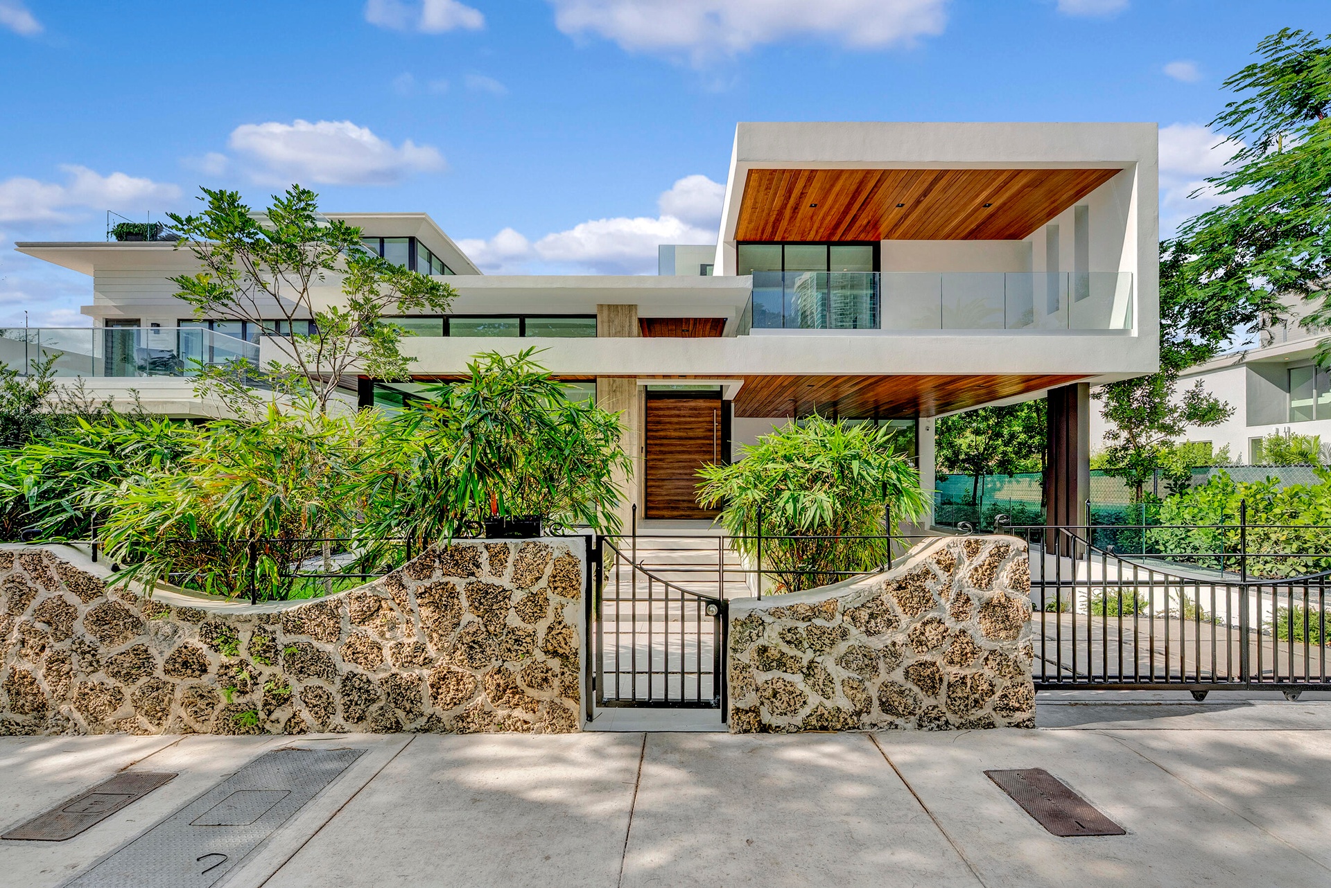 One-Of-A-Kind, 17' above the sea elevation. Experience unmatched luxury and modern refinement. This luxury residence exemplifies architectural excellence, innovative technology, timeless design. This architecturally striking residence offers 5,765 SF & over 11,000 +/- SF total, blending bold design with elevated living. The home features private storage & a six-car garage. Designed for effortless indoor-outdoor living, the open-concept living & dining, Expansive Island anchors this showpiece kitchen. It features Gaggenau, Wolf appliances, Sub-Zero and two outdoor kitchens. Scavolini Italian cabinetry. The 2nd floor offers generous bedroom suites with walk-in closets/spa-inspired bathrooms and family room. Roof Top that overlooks Miami skyline, Impact/Thermal windows & doors, gated entry.