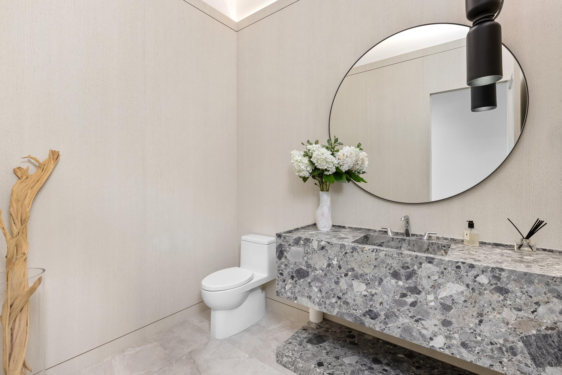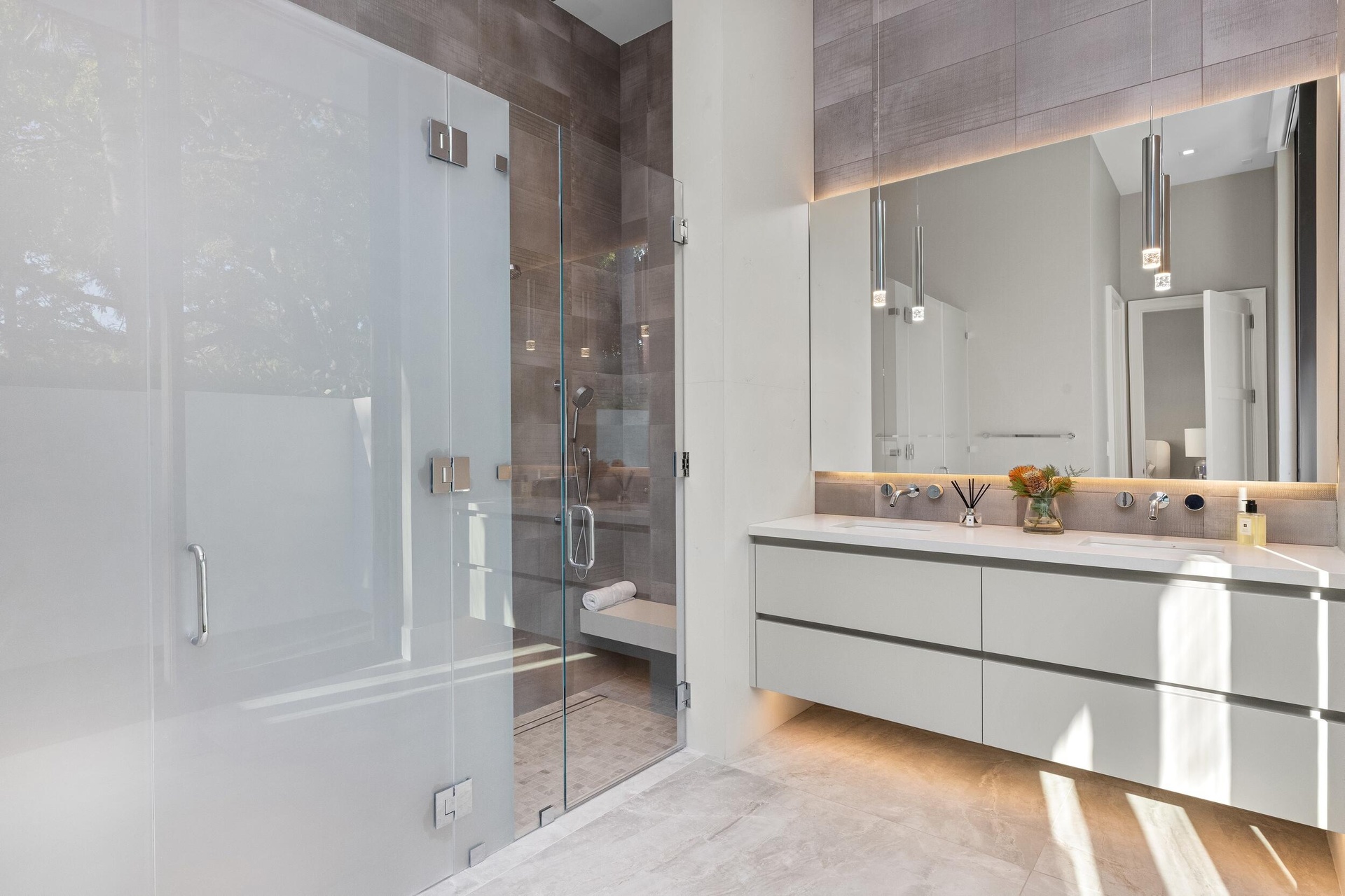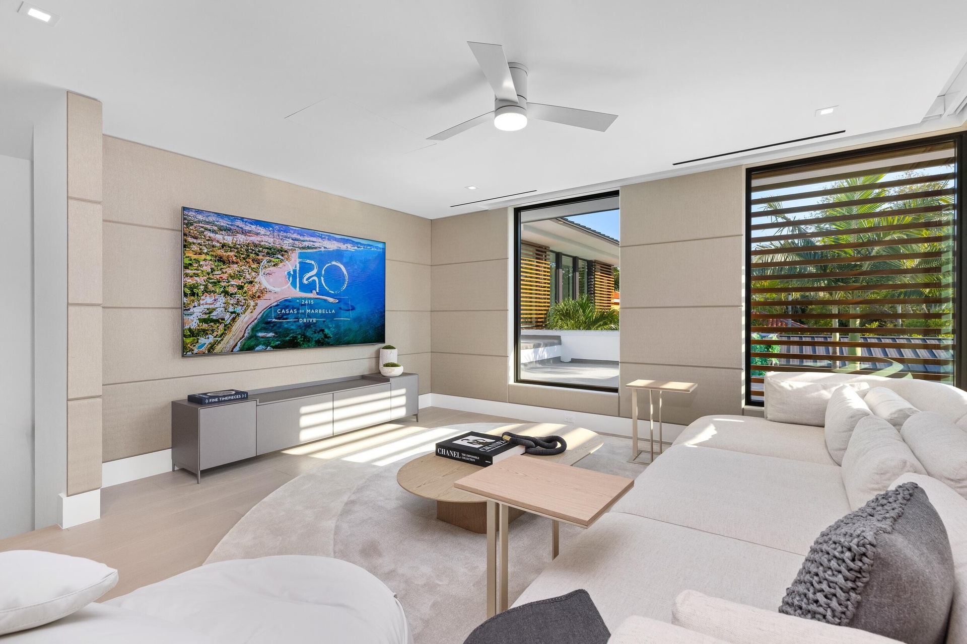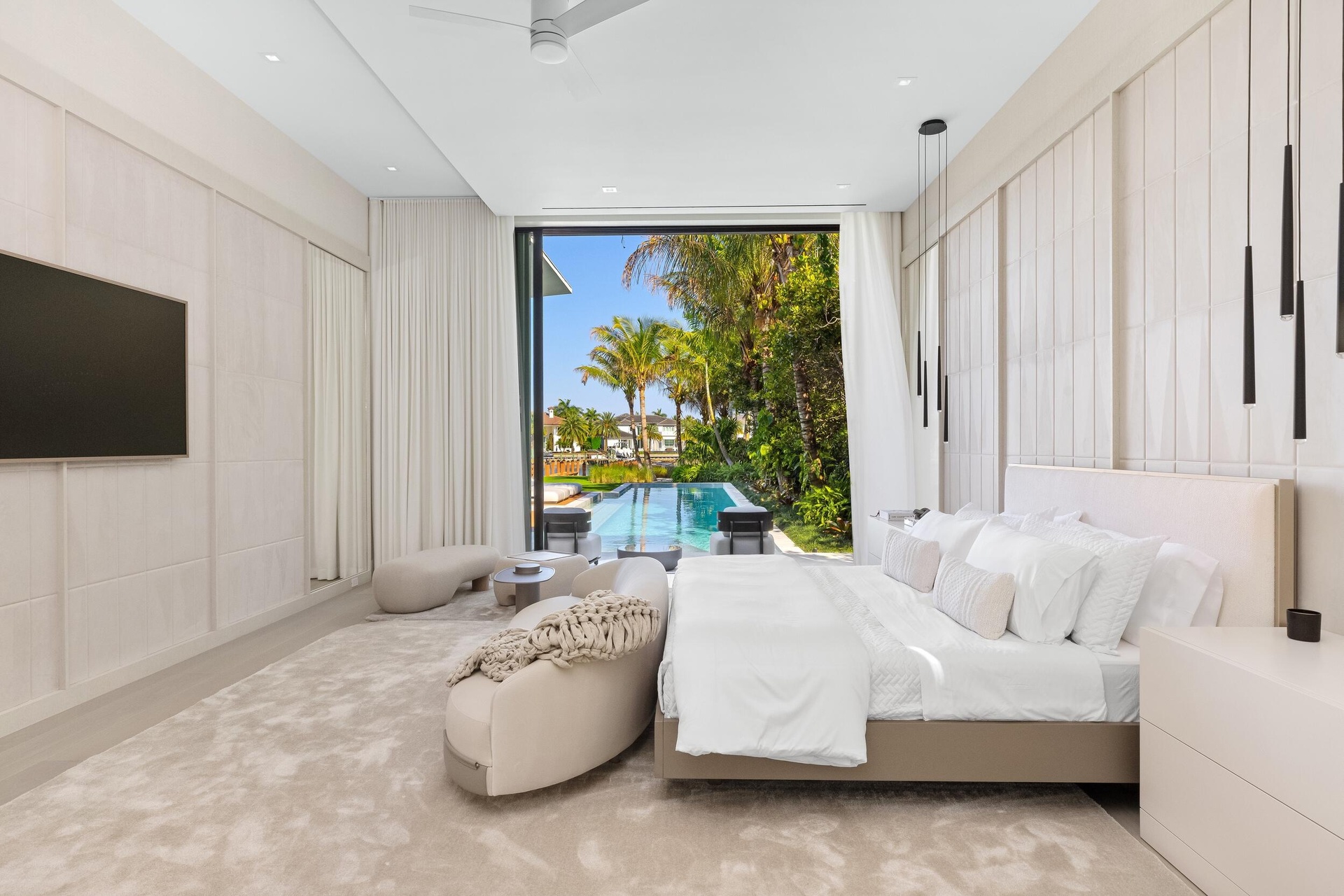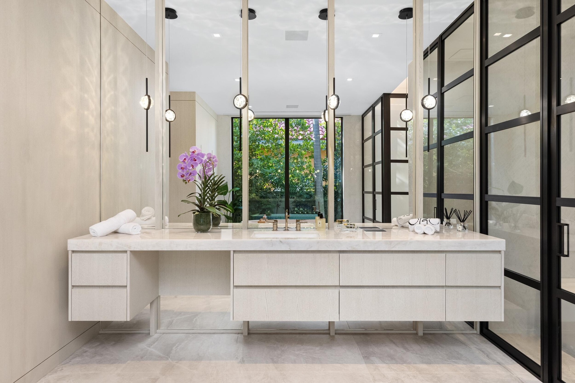 A singular expression of modern serenity and architectural mastery, ORO SATORI is a newly constructed waterfront estate set on over one acre within an exclusive gated enclave of only four residences. Defined by its connection to water, light, and space, the property commands over 105 feet of waterfrontage with direct Intracoastal access and the capacity to accommodate a substantial yacht. Conceived as both a private retreat and an extraordinary setting for entertaining, this bespoke compound spans over 16,000 square feet with more than 14,000 square feet under air, seamlessly uniting a main residence, guest house, and trophy garage into a cohesive, resort inspired estate. The grounds unfold as a private sanctuary where architecture and landscape exist in perfect harmony. A 60-foot heated lap pool stretches alongside the waterfront, complemented by a spa and sculptural fire feature that anchor the outdoor experience. Multiple covered loggias extend the living spaces outward, creating a seamless transition between interior and exterior living. Curated wellness environments are thoughtfully integrated throughout, offering a setting designed for both quiet retreat and elevated entertaining. The estate is further enhanced by its own private gate and a dedicated guard house discreetly positioned at the entrance, offering an additional layer of security and privacy beyond the already gated enclave. Inside, ORO SATORI offers five bedrooms, five full bathrooms, and four half bathrooms within the main residence, complemented by a private guest house with its own bedroom and bath. The interiors are defined by a refined balance of architectural precision and warm modern design, featuring European oak flooring, bespoke millwork, and a cohesive material palette throughout. Expansive living areas are designed to accommodate both grand scale entertaining and intimate daily living, anchored by a chef's kitchen appointed with Wolf and Sub-Zero appliances, custom cabinetry, and a fully equipped butler's pantry. A club room with a 500-bottle wine display, dual laundry rooms, and elevator access to both levels further enhance both comfort and functionality. Wellness is seamlessly woven into the fabric of the home. A dedicated fitness center, private sauna, and massage room create a spa like experience within the residence, complemented by spaces designed for movement, mindfulness, and recovery. Indoor and outdoor environments are intentionally connected, allowing natural light, water, and surrounding landscape to become part of the daily ritual. Each space is designed to promote balance, privacy, and a sense of calm rarely achieved within a private estate. The detached guest house offers a fully independent living experience with its own kitchen, living quarters, and private amenities, including its own pool and outdoor shower, creating a secluded retreat for guests or extended stays. A trophy garage and expansive motor court provide both functionality and a striking setting to showcase a curated automobile collection. State of the art smart home technology integrates Control4 automation, whole home audio, advanced security prewiring, and comprehensive infrastructure throughout, delivering effortless control and modern convenience. ORO SATORI is more than a residence. It is a rare and intentional offering where architecture, wellness, and waterfront living converge to create a lifestyle defined by privacy, design, and enduring sophistication.