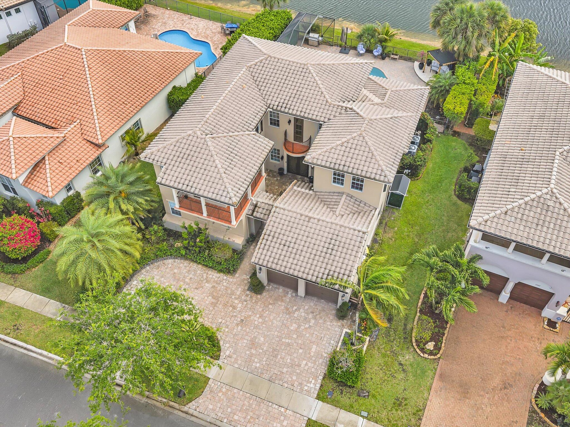 Simply stunning waterfront home located in one of Parkland's most sought-after communities, known for its A-rated schools and exceptional lifestyle. Impressive curb appeal welcomes you with manicured landscaping, charming balconies, and an idyllic gated courtyard. Inside, a light-filled interior showcases soaring 2-story ceilings, expansive glass doors, and elegant finishes throughout. The crisp white chef's kitchen features a large island, quartz countertops, and seamless flow to the outdoor living space. Enjoy a serene backyard with tranquil water views, pool and lush landscaping. Luxurious primary suite with custom closets and spa bath. Private guest/in-law suite with separate entrance. True South Florida resort-style living!