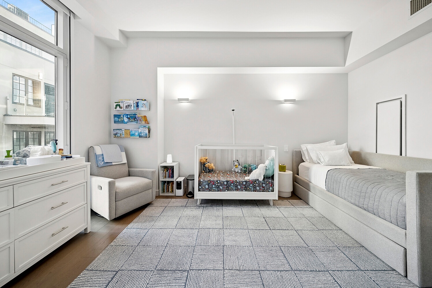 Smart home integration has been implemented throughout. All three thermostats have been upgraded to Nest. Over twenty light switches have been converted to wired smart switches. Living room and bedroom lighting has been professionally rewired and enhanced, and shades throughout have been upgraded, including new blackout systems in both bedrooms.