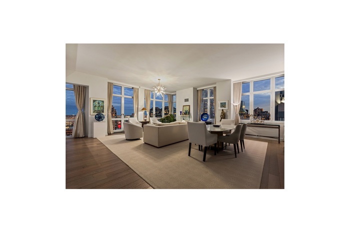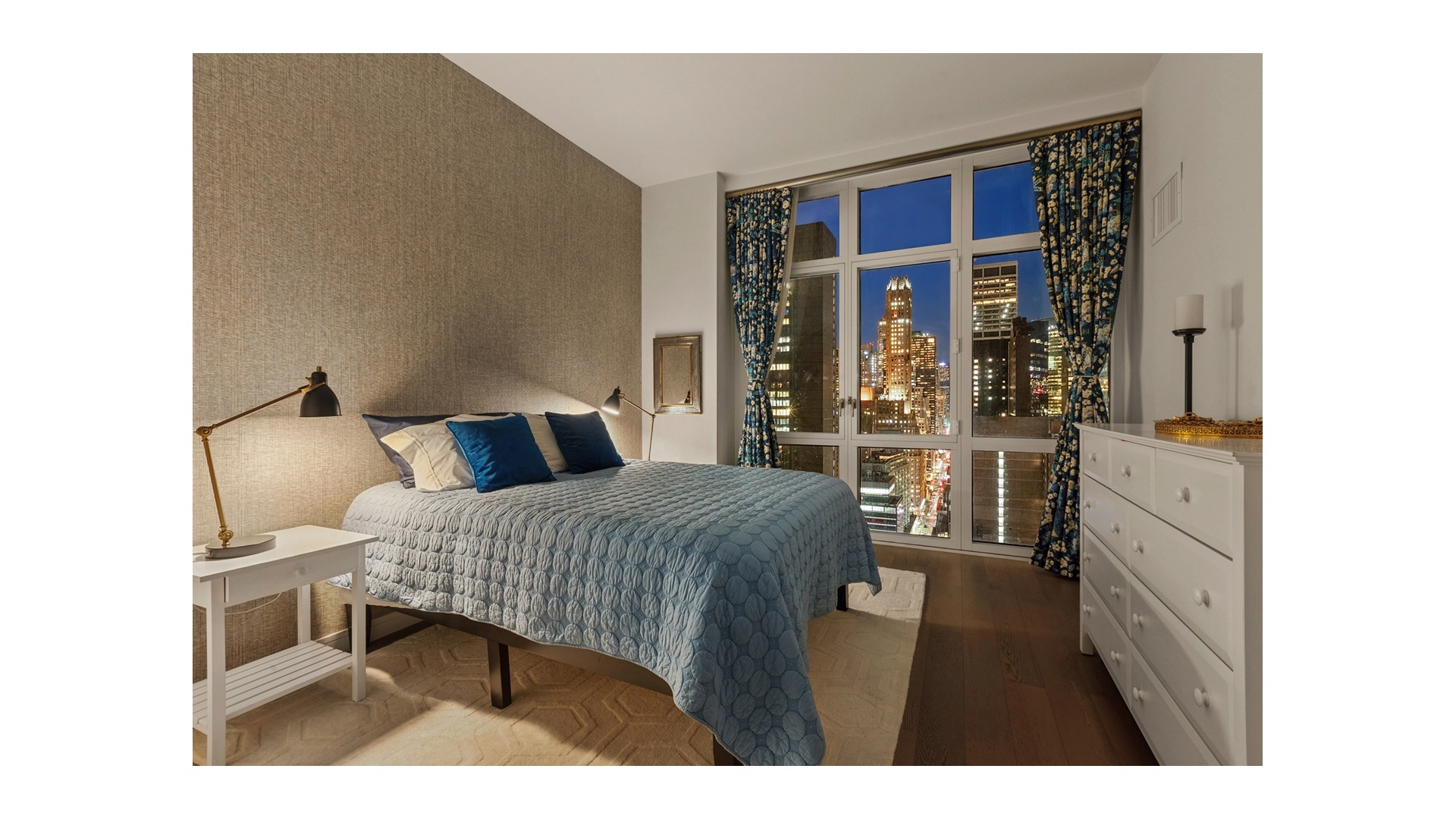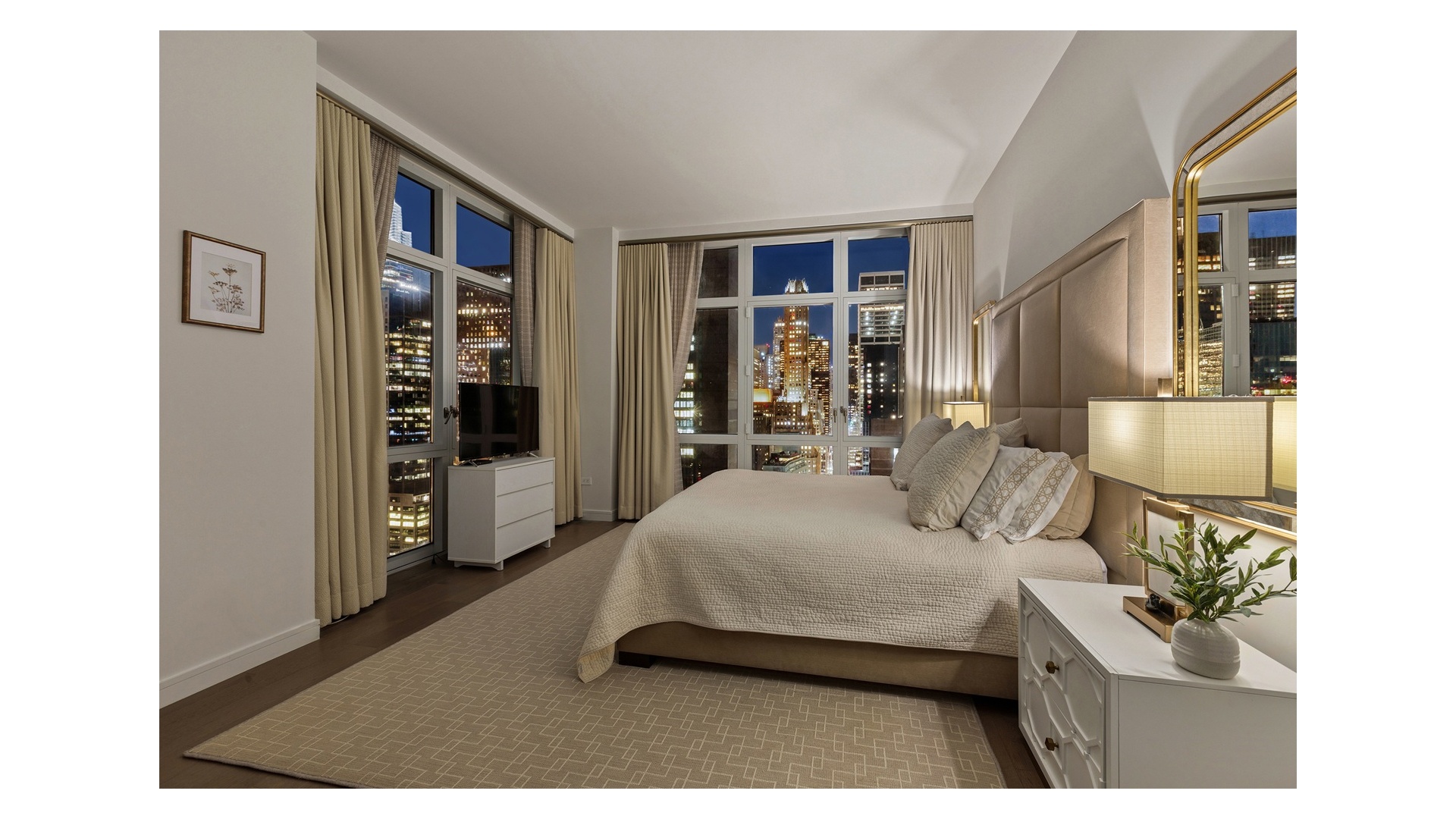 The scale of this residence is immediately commanding. Ceilings over ten feet high, floor-to-ceiling windows, and a corner living and dining room that captures the city from three directions - the Empire State and Chrysler buildings to the south, Midtown's skyline to the west, and sweeping river vistas to the east. Few apartments in Manhattan offer this breadth of outlook from a single home.
