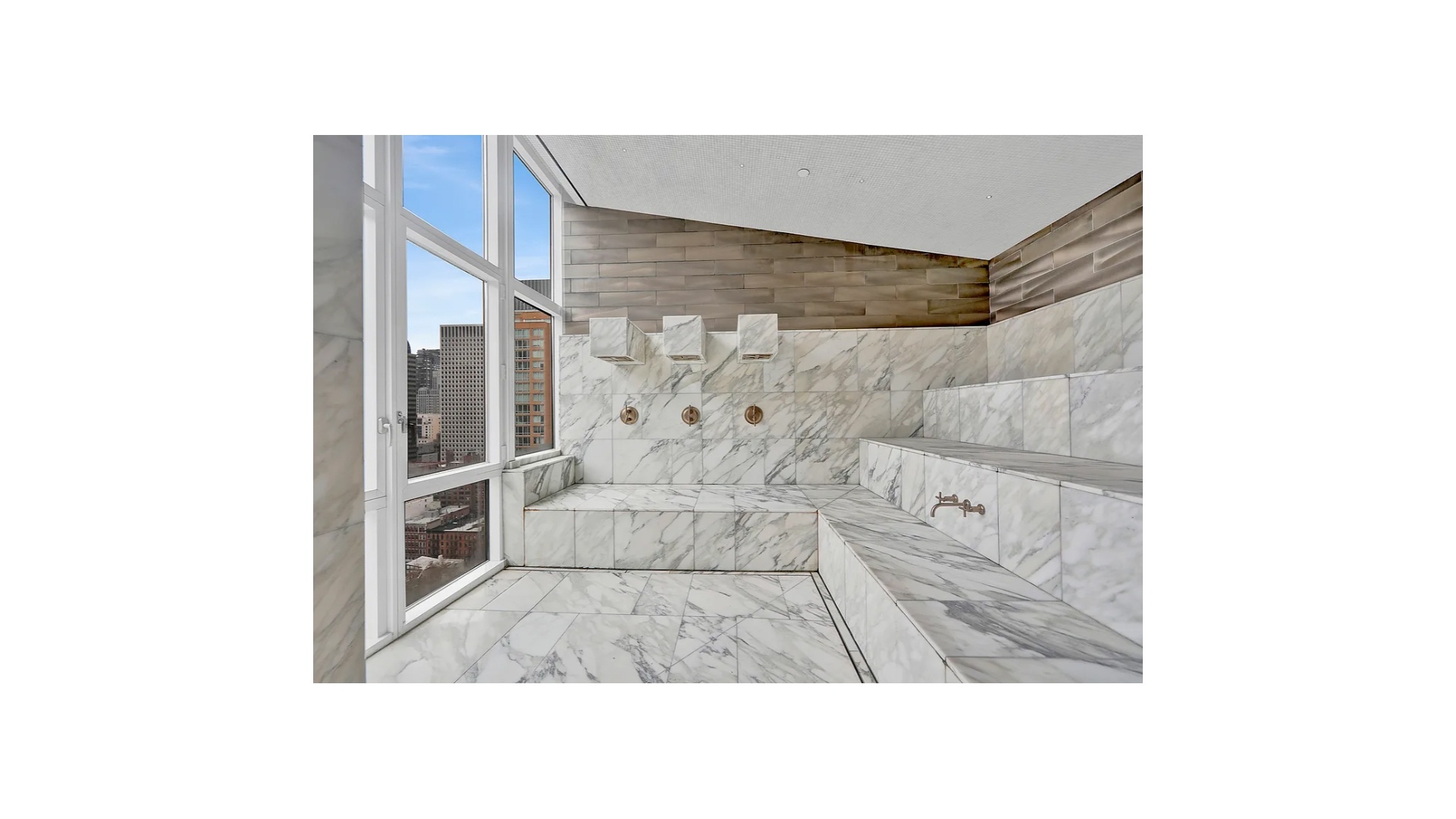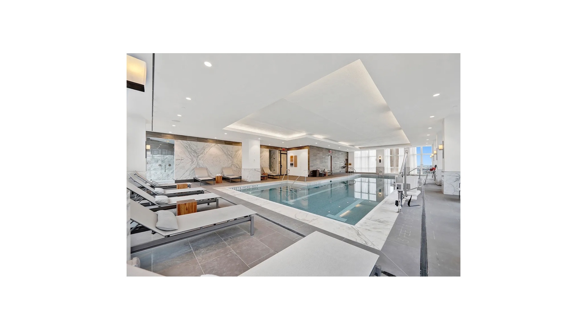 The Halcyon itself is one of Midtown East's most distinguished addresses - a 33-story luxury condo designed by AD100 architect S. Russell Groves, where the amenities are genuinely exceptional: a 52-foot heated indoor pool, a light-filled fitness center, steam and sauna rooms, a private treatment room, a golf simulator, a children's playroom, a media lounge with catering kitchen, a library, a sky lounge, and a serene courtyard garden - all with 24-hour doorman and concierge services.