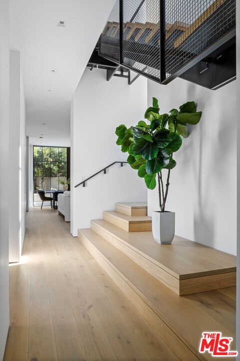 Glass House at 8899 Beverly. West Hollywood luxury presides at 8890 Rosewood Avenue where incredible resort amenities meet architectural brilliance. This exceptional home is part of a unique collection of eight signature homes crafted by the world-renowned architect Olson Kundig, each boasting a distinctive material palette and a one-of-a-kind living experience. Glass House is a stunning home with unparalleled features that epitomize comfort and understated opulence. This three-bedroom, two-level masterpiece immediately makes an impression with a modern exterior featuring exposed structural steel and a curved standing-seam metal roof, complemented by a painted metal trellis wrapping from the front to the side entry. True to its name, Glass House makes use of extensive glazing, soaring ceiling heights, and a natural flow between the indoor and outdoor environments to create open, airy living spaces. Sophisticated yet welcoming in design, the interior boasts wood floors, Lutron HomeWorks QS System lighting, and Fleetwood glazed doors and windows. The gourmet kitchen features top-of-the-line Gaggenau and Miele appliances, dark-stained white oak cabinetry, and custom paneling. A custom stairwell with open-riser wood treads and exposed steel curates an artful transition from level to level.Upstairs, the primary suite includes a private balcony adorned with a woven-wire mesh guardrail and steel grate decking, providing a tranquil retreat to unwind and admire the views. The ensuite bathroom has full stone flooring and walls made of Danube marble. Outside, find a chaparral-inspired garden curated by Coen + Partners, a pool and spa, and a guest house. Explore the eclectic palette of crepe myrtle and cork oak trees, exuberant bougainvillea, sea lavender, and fairy crassula, creating a picturesque backdrop for outdoor gatherings. The signature collection deftly blends individuality and privacy with exceptional resort lifestyle amenities. 8899 Beverly Boulevard - offers residents access to 24-hour concierge service, a state-of-the-art fitness center, and a lushly landscaped oasis with a resort-style pool, spa, a custom outdoor kitchen, and an on-site restaurant, Stella. Experience the epitome of luxury urban living in West Hollywood.