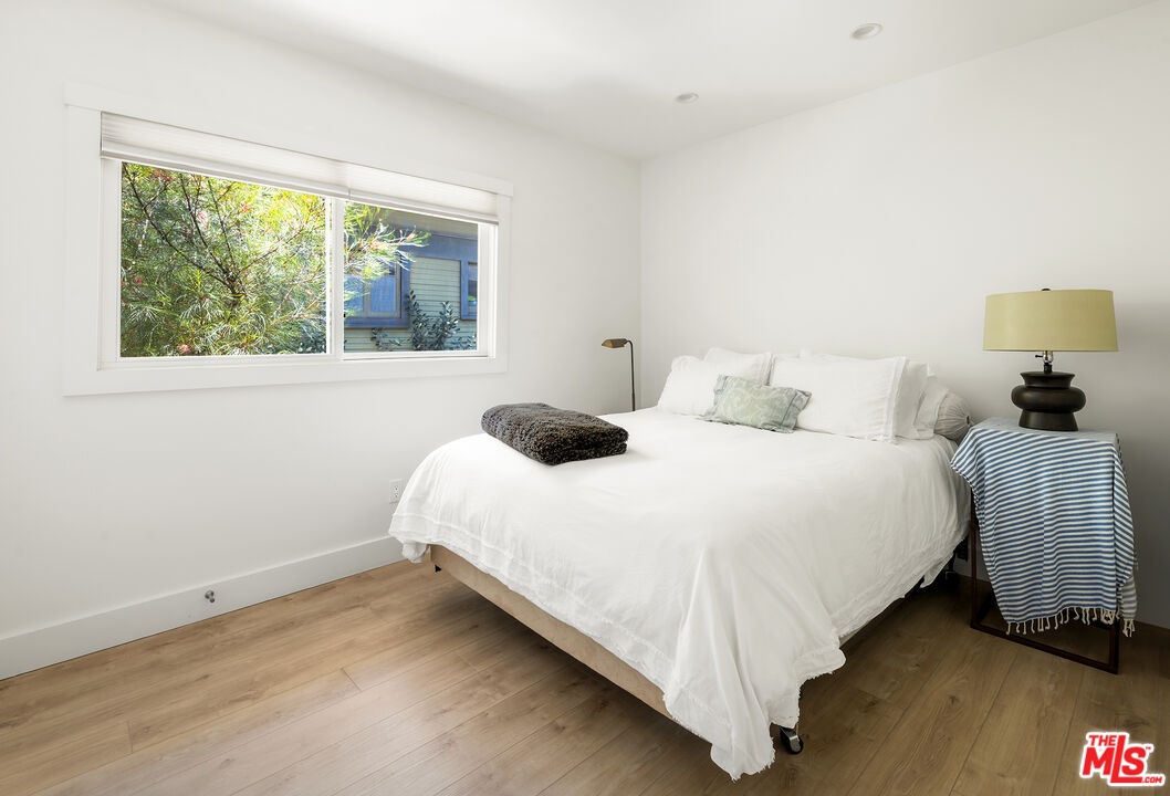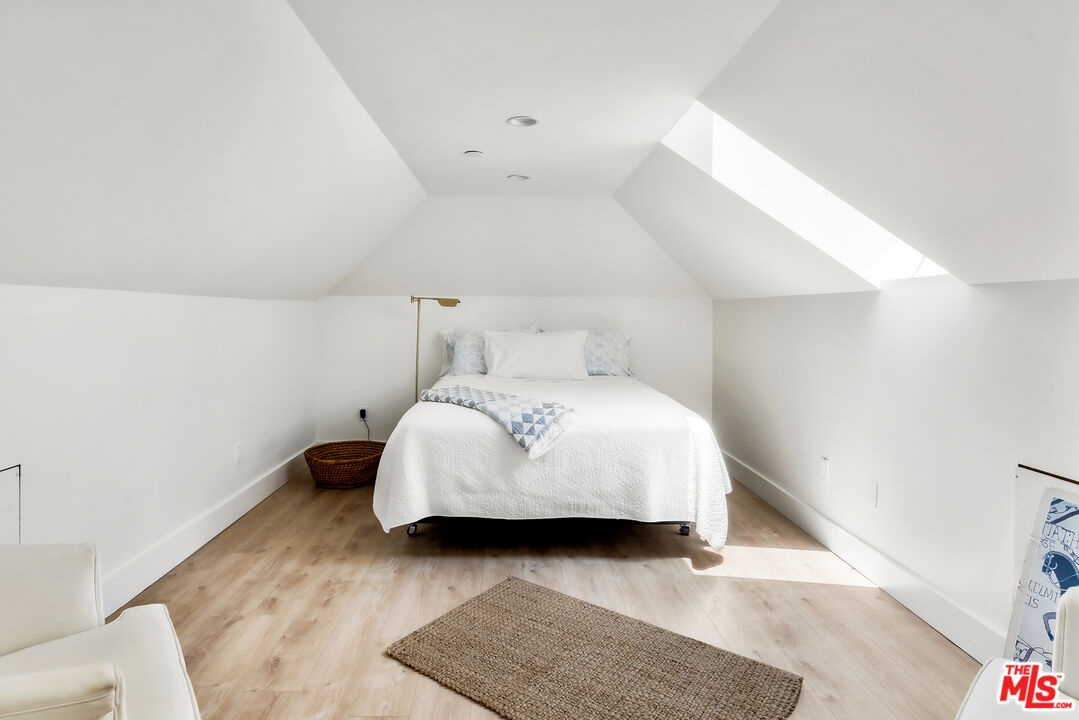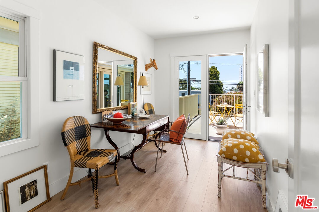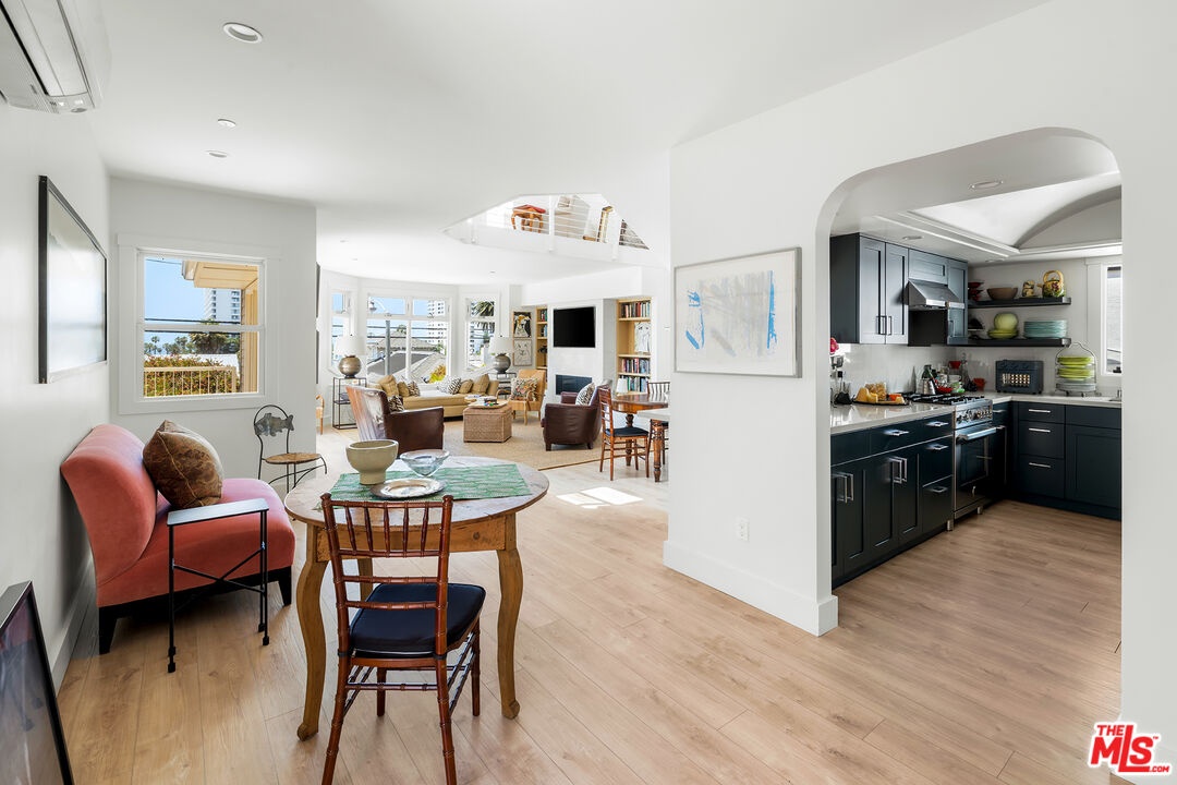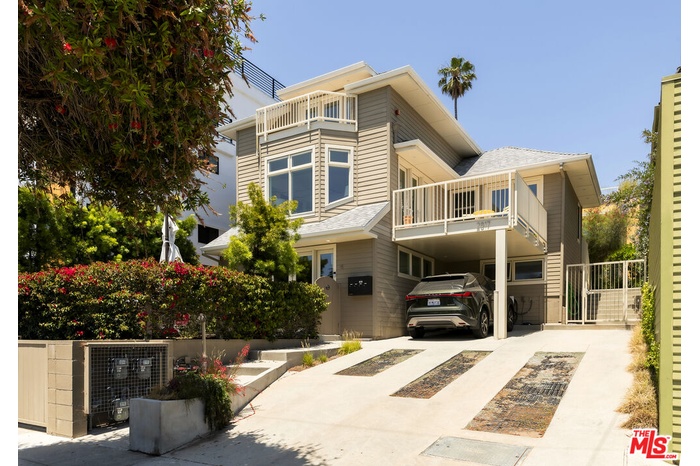 Located at 2817 3rd Street #1, this contemporary condo is set in a private four unit building just blocks from the beach and moments from Main Street and Abbot Kinney. The three bedroom residence offers over 2,000 square feet of light filled living space with ocean views throughout. The open living and dining area features lofted ceilings, a large skylight, fireplace, built in shelving, and a bay window seat. The gourmet kitchen is equipped with Bertazzoni appliances, a wet bar, wine storage, and a pantry. A flexible third bedroom, office, or gym opens to an oversized west facing deck with ocean views and can also be accessed from the living room. The two additional bedrooms each feature en suite baths and spacious walk in closets, including a primary suite with its own private patio. Upstairs, two mezzanine areas, a roof deck, and a bonus room with potential for a fourth bedroom add to the home's versatility. Modern finishes throughout include quartz countertops, marble baths, composite hardwood floors, and in unit laundry.