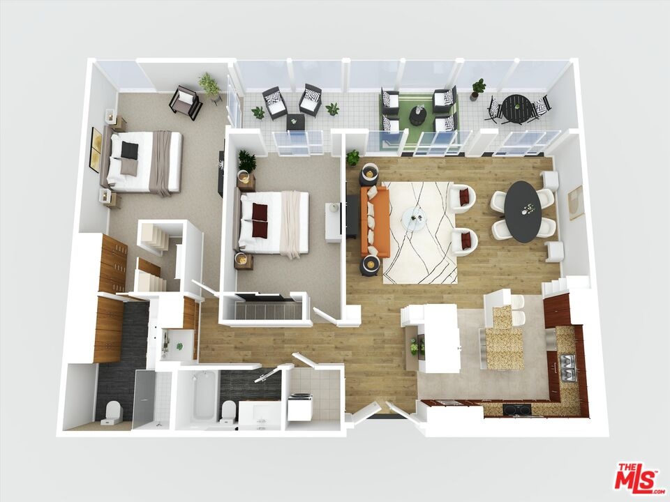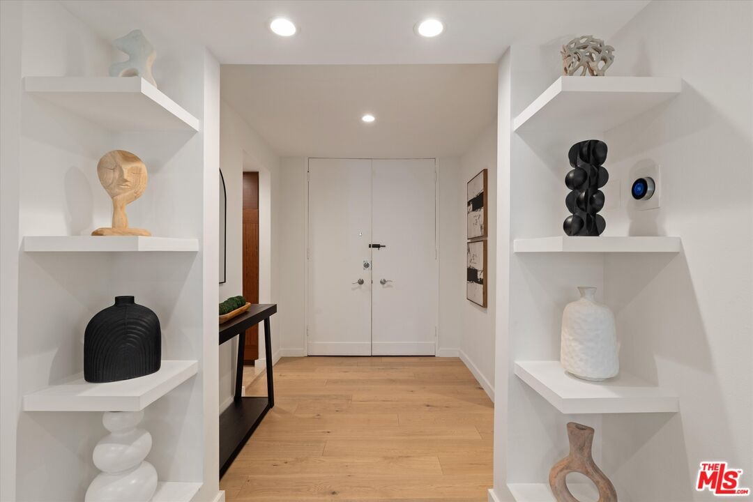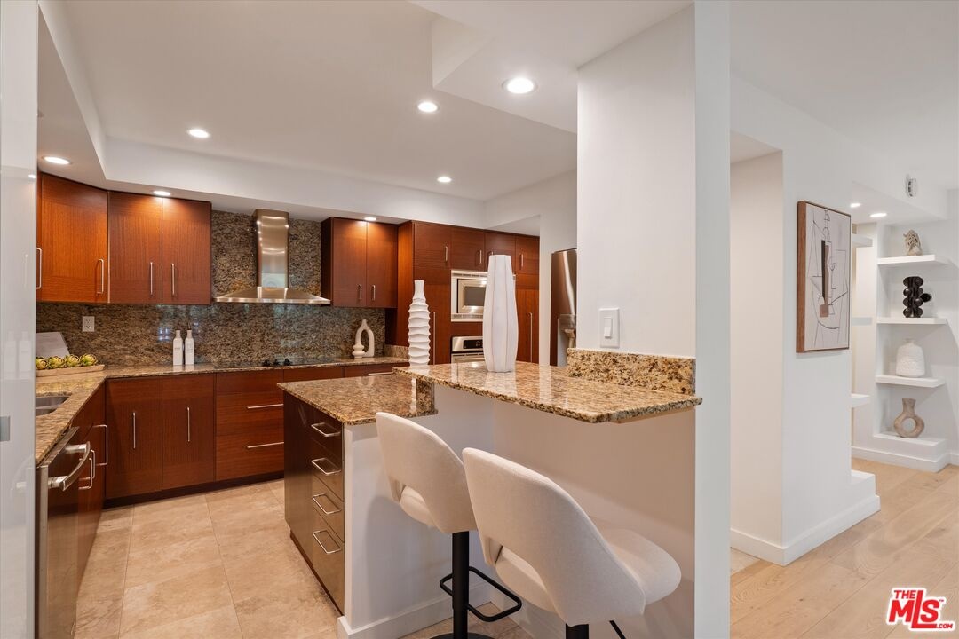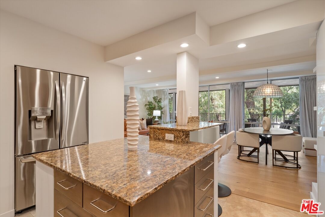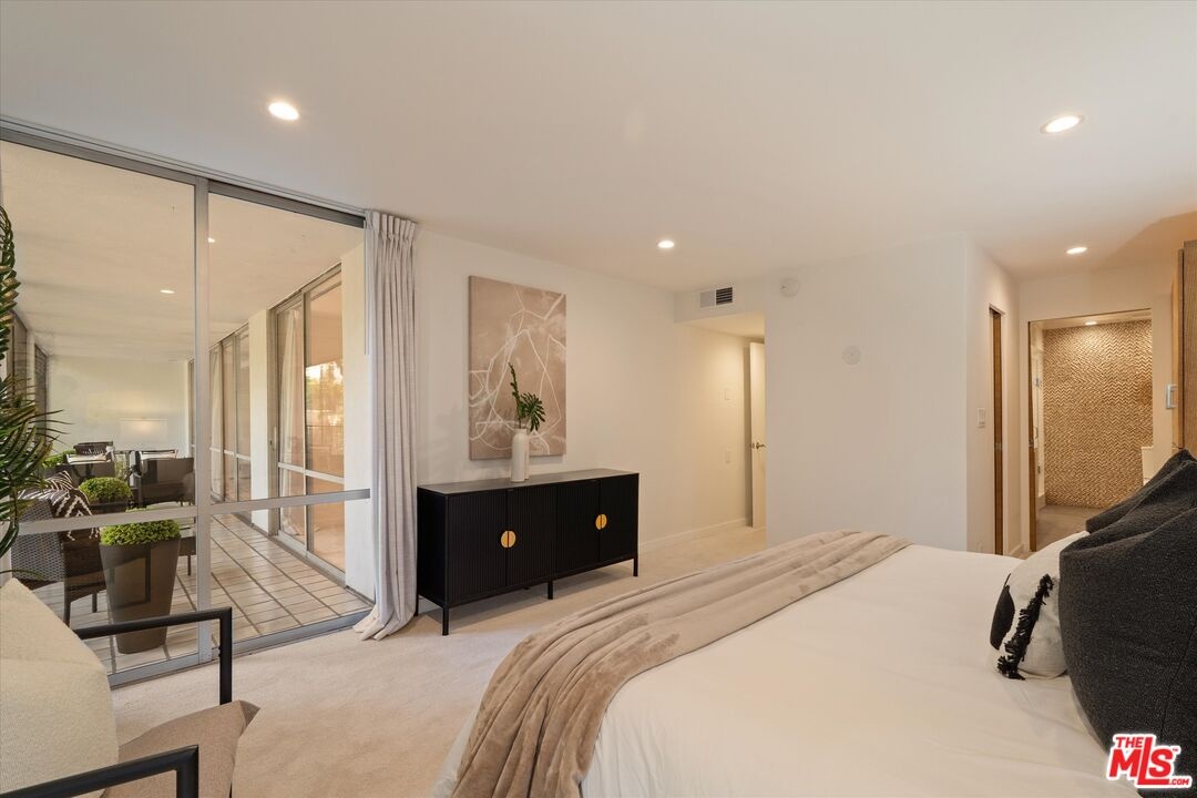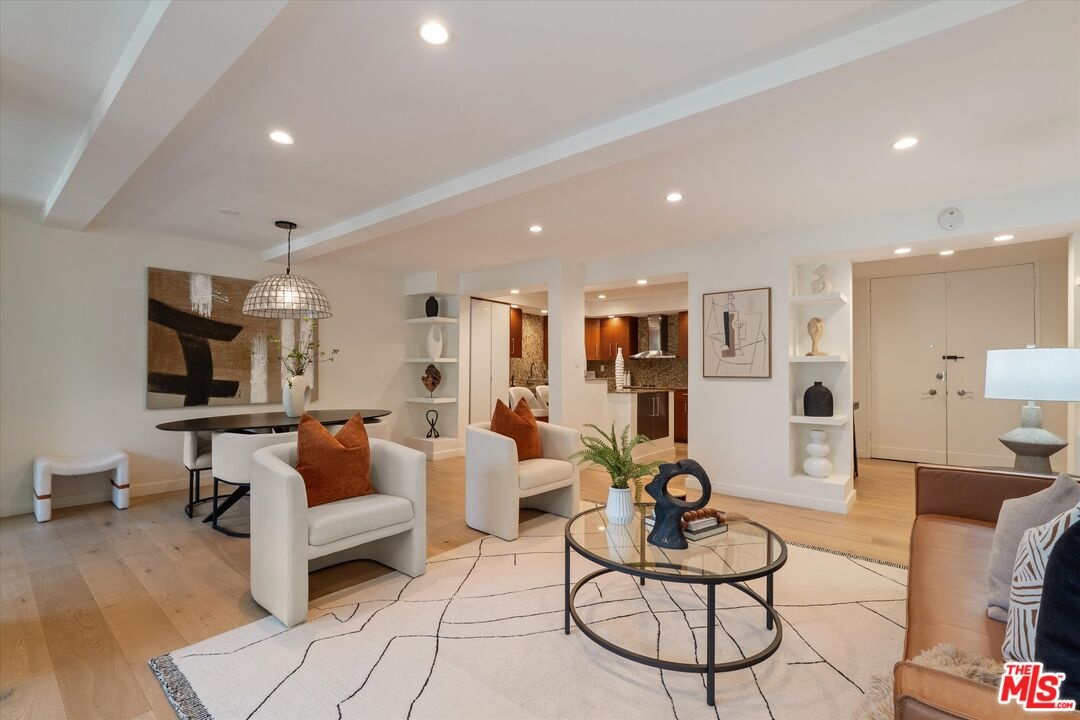 Tucked quietly at the rear of the building in prime West Hollywood, this 1317 sf, 2-bedroom, 2-bath residence feels like a hidden retreat in the middle of the city. What truly sets it apart is the oversized, fully enclosed balcony that spans the entire length of the condo, and surrounded by lush, mature greenery. Floor-to-ceiling glass brings the outdoors in, creating a calm, treehouse-like setting that's both private and serene. Inside, the layout is idyllic and functional with a formal entry, open living and dining areas, and a sleek kitchen with a large island and generous storage - perfect to entertaining guests! The primary suite is spacious and tucked away, featuring an updated en-suite bath and ample closet space with walk-in, while the second large bedroom offers flexibility for guests, a home office, or both. An updated hallway bathroom with shower over tub is great for your guests. Additional features include central air & heat, recessed lighting, custom shelving, smart light fixtures, in-unit laundry, and two side-by-side parking spaces and designed large storage closets. Located in the gated Kings Plaza community with a resort-style pool, spa, and lush courtyard, just moments from Melrose, Santa Monica Blvd, and the Sunset Strip. Welcome home!