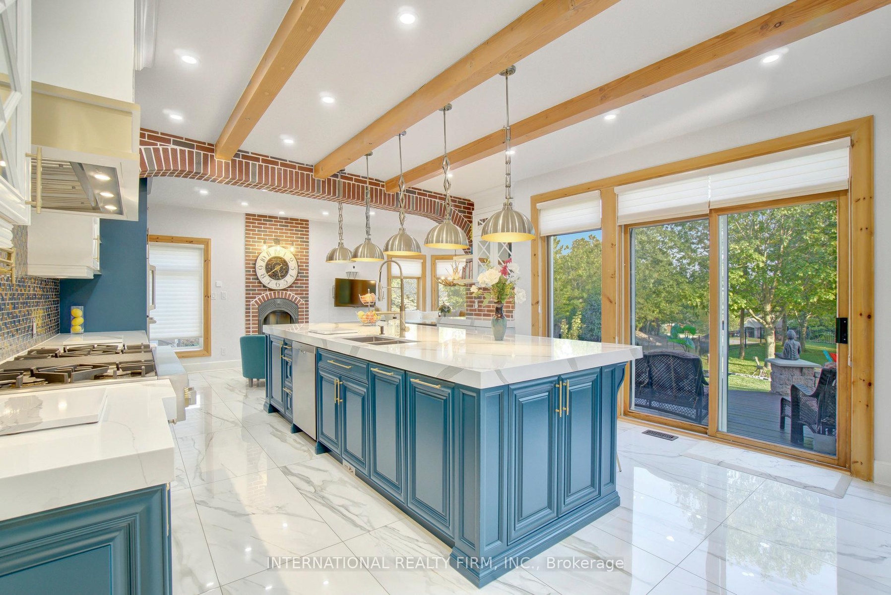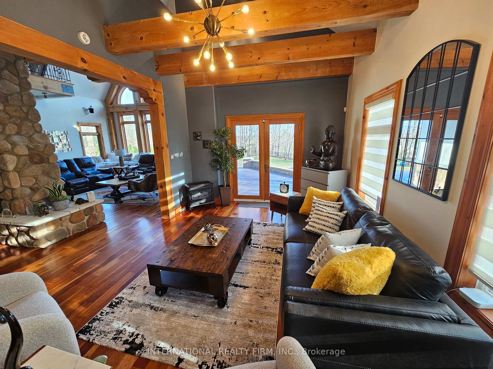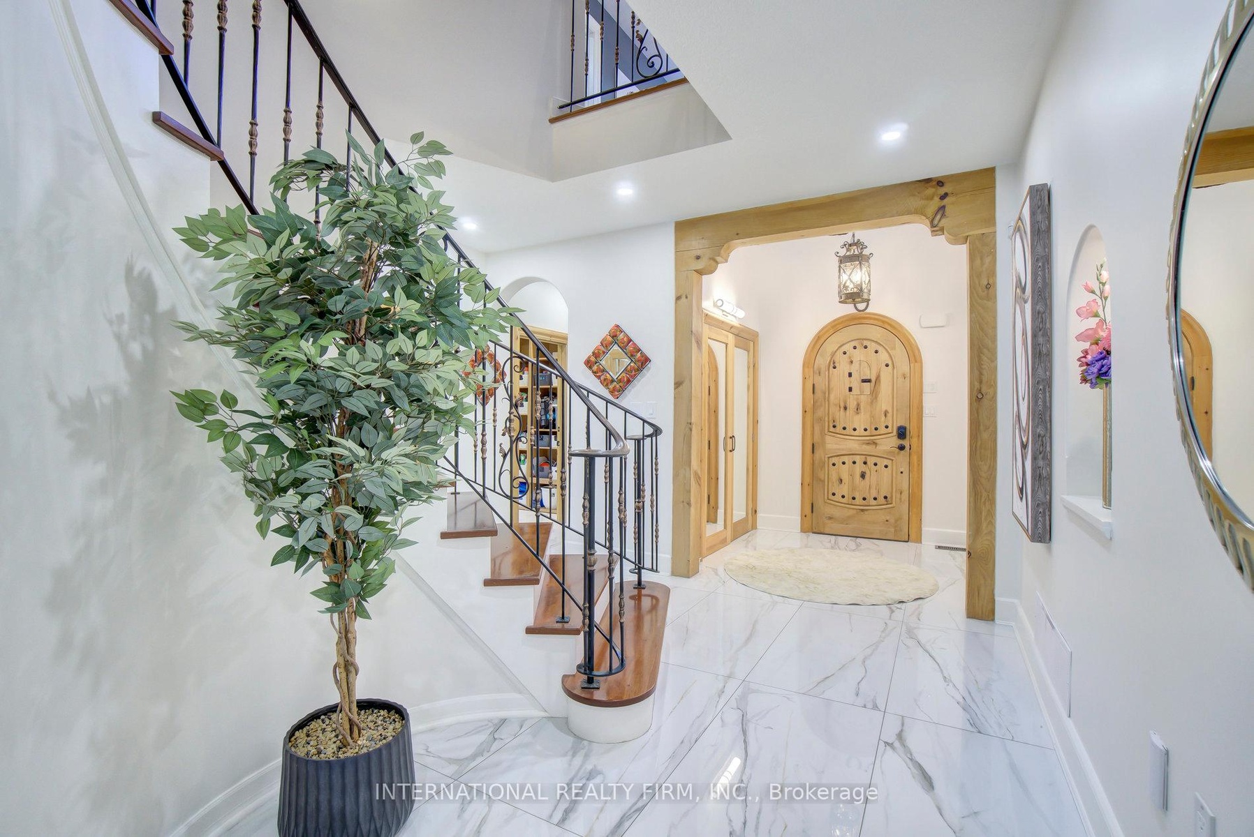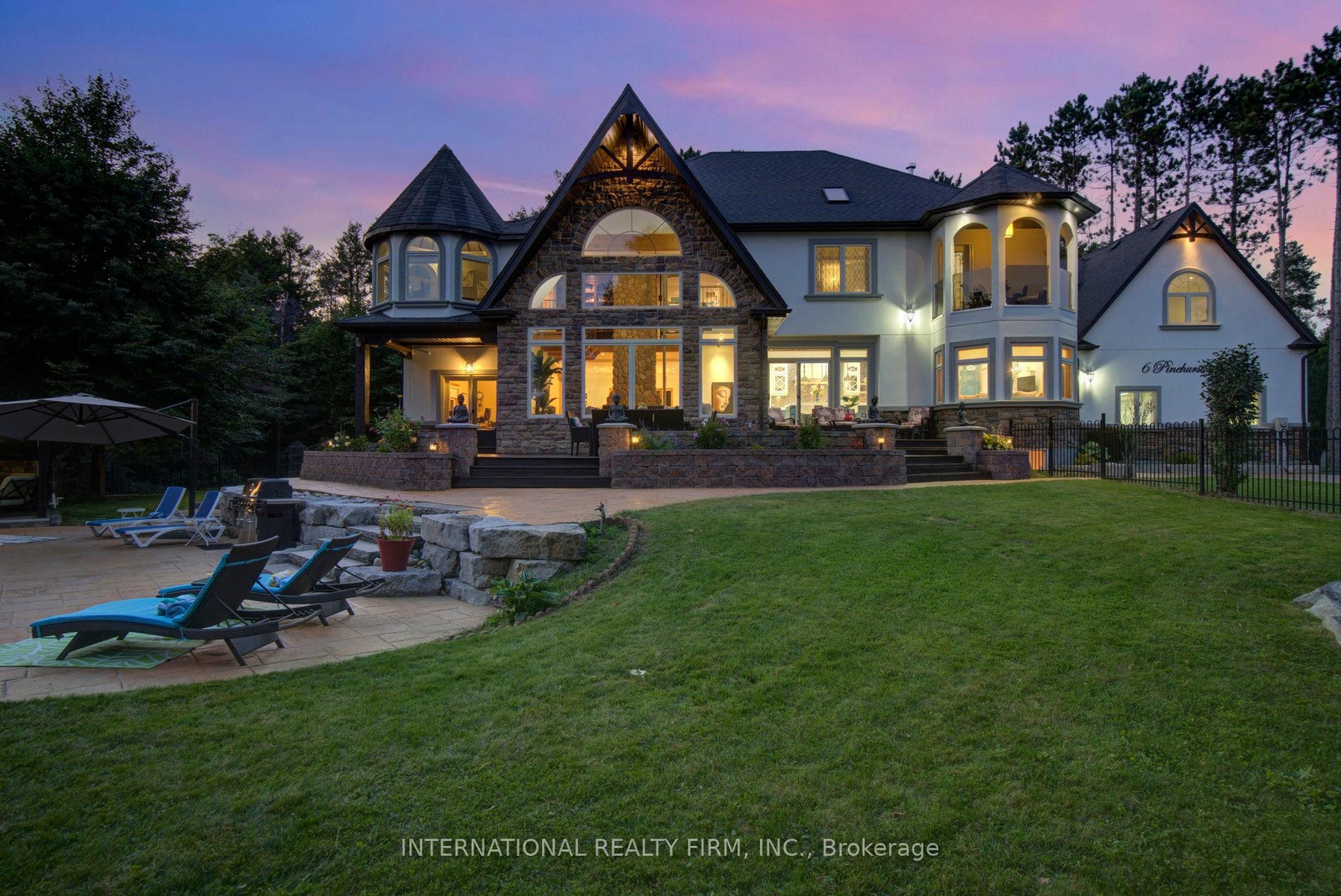 Experience the ultimate retreat in this stunning custom-built estate, perfectly positioned on a private 1.62-acre lot just minutes from Barrie. Designed for the move-up buyer seeking space and sophistication, this residence offers over 7,000 square ft of high-end living space that functions as both a grand entertaining venue and a private family sanctuary. Step into a breathtaking two-storey foyer, where polished porcelain floors meet a signature chandelier. The heart of the home is the massive Great Room, where 24-ft cathedral ceilings and a double-sided stone fireplace meet a wall of panoramic windows overlooking your private "Pool Paradise"-a spectacular backyard oasis featuring a saltwater pool, pool house, and lush professional landscaping. The chef's kitchen is a showstopper, anchored by a 12x5 Ft quartz island and top-of-the-line stainless appliances. Detailed with brick arches, pine beams, and a dedicated butler's bar and baking station, it is a dream space for hosting. An elegant dining room awaits your next dinner party, paired with a "Zen-like" family room perfect for quiet evenings. The primary suite is a true luxury retreat, featuring its own fireplace, a private Juliette balcony, and a spa-style ensuite with heated floors and a deep-soaking Jacuzzi. The home's unique character continues to the second floor with an elevator lift, a built-in library, and a spectacular octagonal room featuring soaring cathedral ceilings. Designed for versatility, the property includes an ultra-convenient 2nd-floor laundry, a contemporary guest suite with its own kitchenette and ensuite, plus a massive lower level featuring a gym, dance studio, and billiards room. Outside, the 1.64-acre grounds are fully fenced for privacy, featuring a circular driveway with parking for 13 cars and a 3-car garage with 14-ft ceilings. Nestled on a quiet cul-de-sac only 10 minutes from Barrie and 25 minutes from Wasaga Beach, this is the definitive 4-season estate for the discerning buyer.