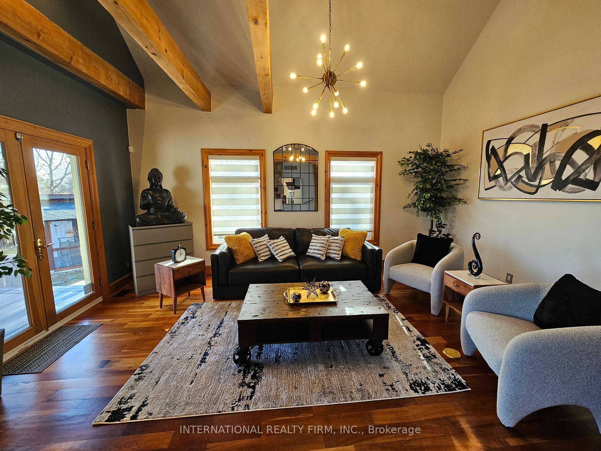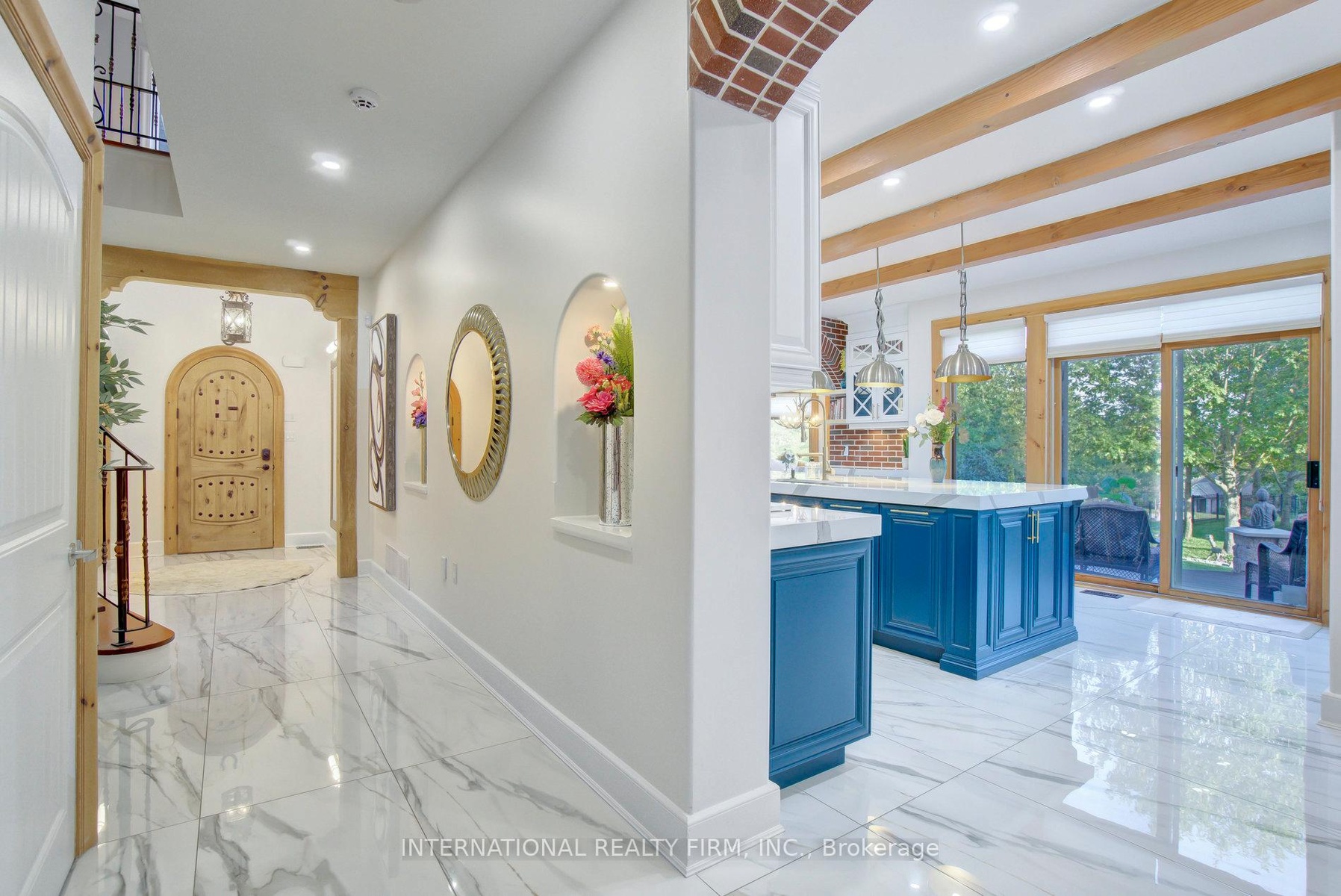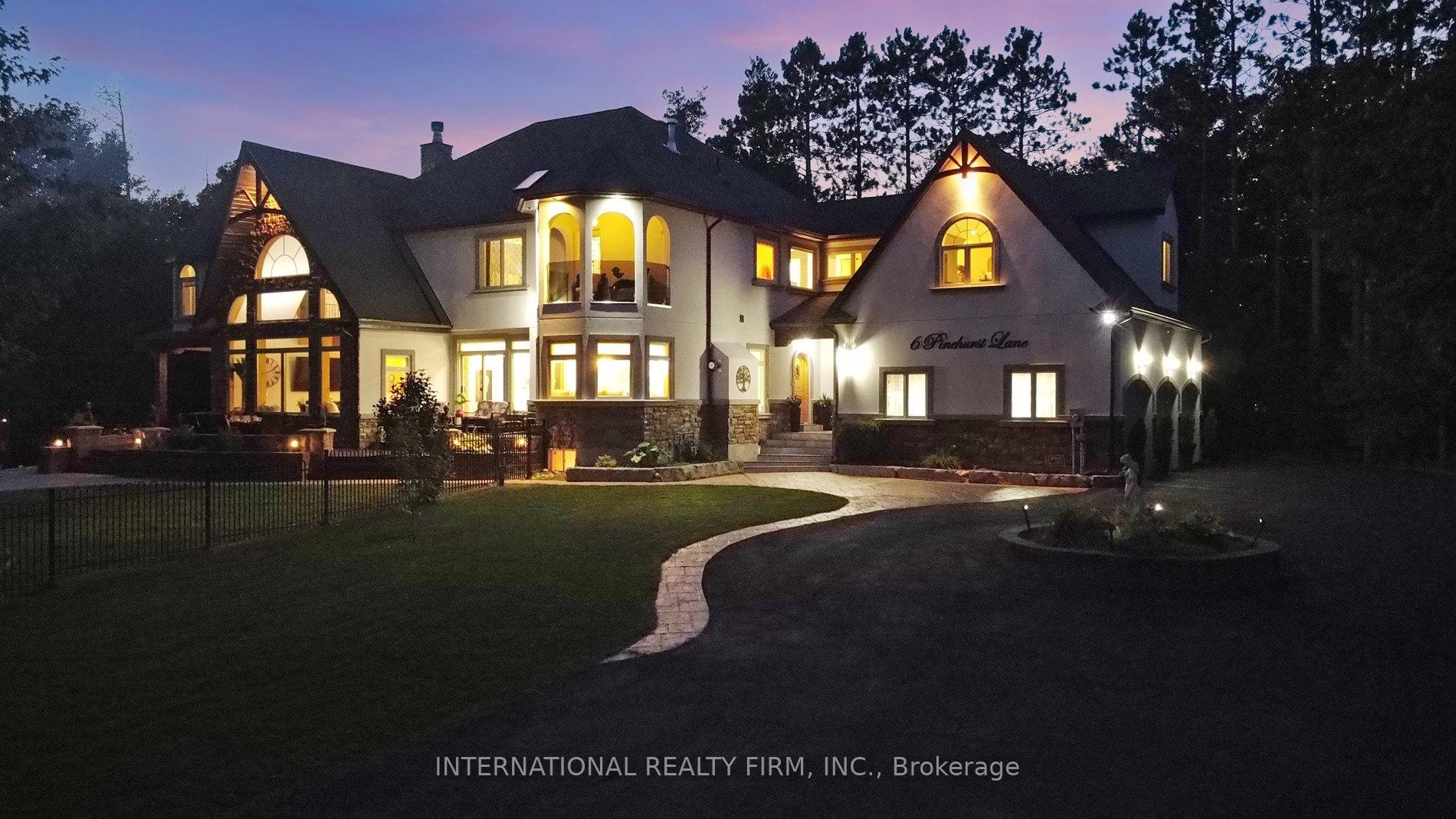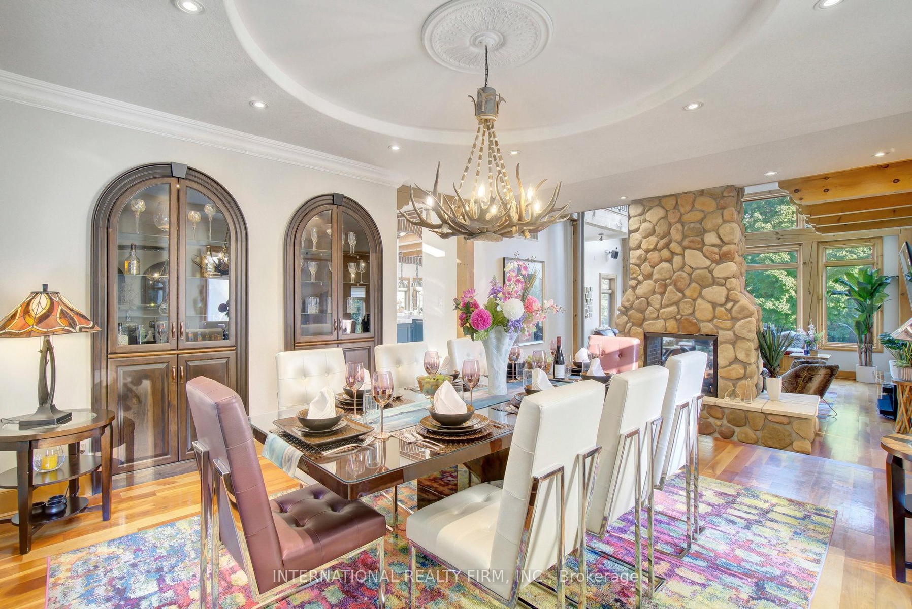 Experience the ultimate retreat in this stunning custom-built estate, perfectly positioned on a private 1.62-acre lot just minutes from Barrie. Designed for the move-up buyer seeking space and sophistication, this residence offers over 7,000 square ft of high-end living space that functions as both a grand entertaining venue and a private family sanctuary. Step into a breathtaking two-storey foyer, where polished porcelain floors meet a signature chandelier. The heart of the home is the massive Great Room, where 24-ft cathedral ceilings and a double-sided stone fireplace meet a wall of panoramic windows overlooking your private "Pool Paradise"-a spectacular backyard oasis featuring a saltwater pool, pool house, and lush professional landscaping. The chef's kitchen is a showstopper, anchored by a 12x5 Ft quartz island and top-of-the-line stainless appliances. Detailed with brick arches, pine beams, and a dedicated butler's bar and baking station, it is a dream space for hosting. An elegant dining room awaits your next dinner party, paired with a "Zen-like" family room perfect for quiet evenings. The primary suite is a true luxury retreat, featuring its own fireplace, a private Juliette balcony, and a spa-style ensuite with heated floors and a deep-soaking Jacuzzi. The home's unique character continues to the second floor with an elevator lift, a built-in library, and a spectacular octagonal room featuring soaring cathedral ceilings. Designed for versatility, the property includes an ultra-convenient 2nd-floor laundry, a contemporary guest suite with its own kitchenette and ensuite, plus a massive lower level featuring a gym, dance studio, and billiards room. Outside, the 1.64-acre grounds are fully fenced for privacy, featuring a circular driveway with parking for 13 cars and a 3-car garage with 14-ft ceilings. Nestled on a quiet cul-de-sac only 10 minutes from Barrie and 25 minutes from Wasaga Beach, this is the definitive 4-season estate for the discerning buyer.