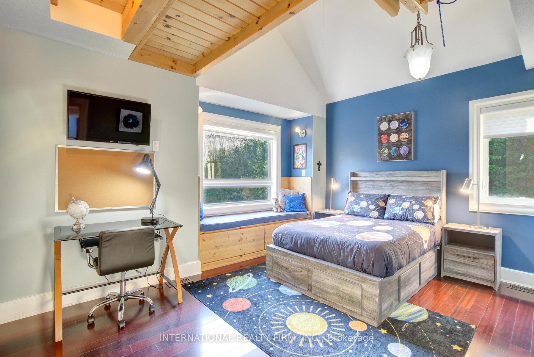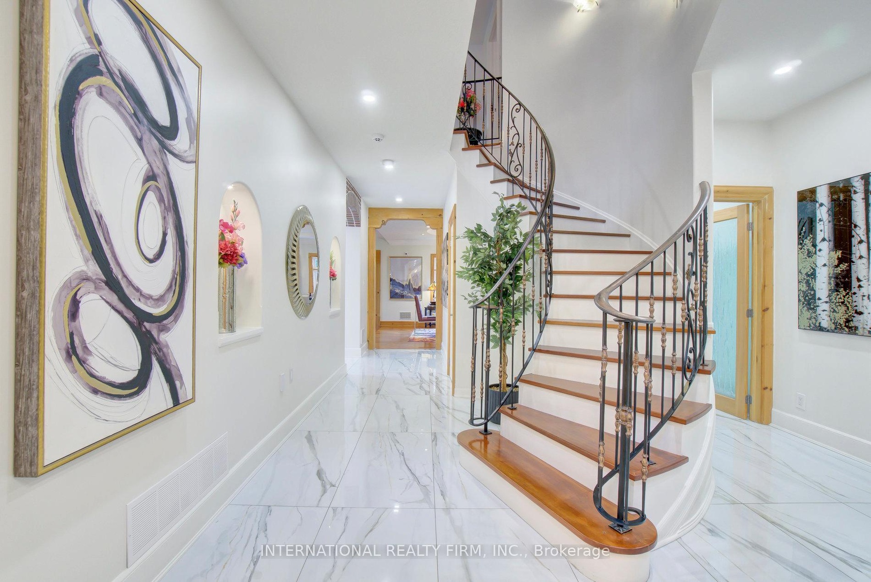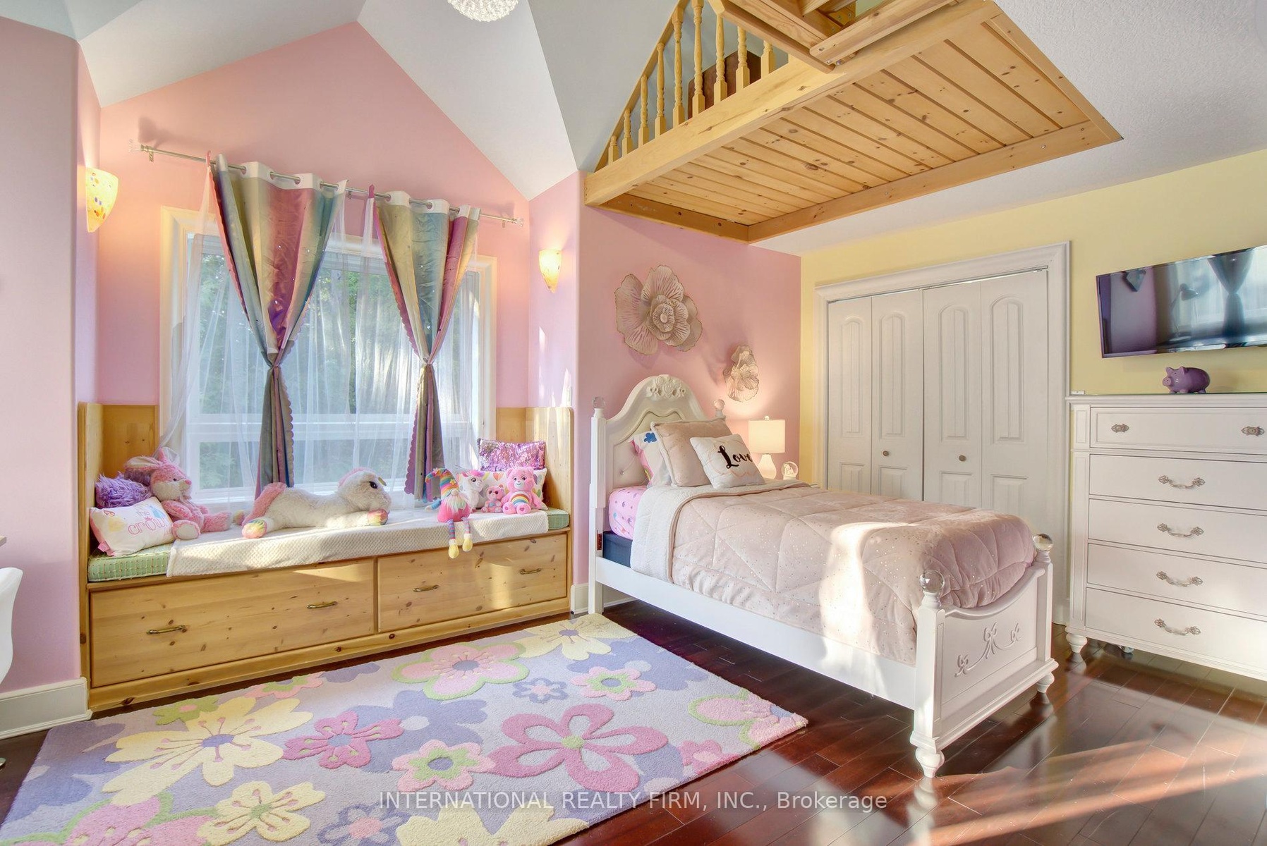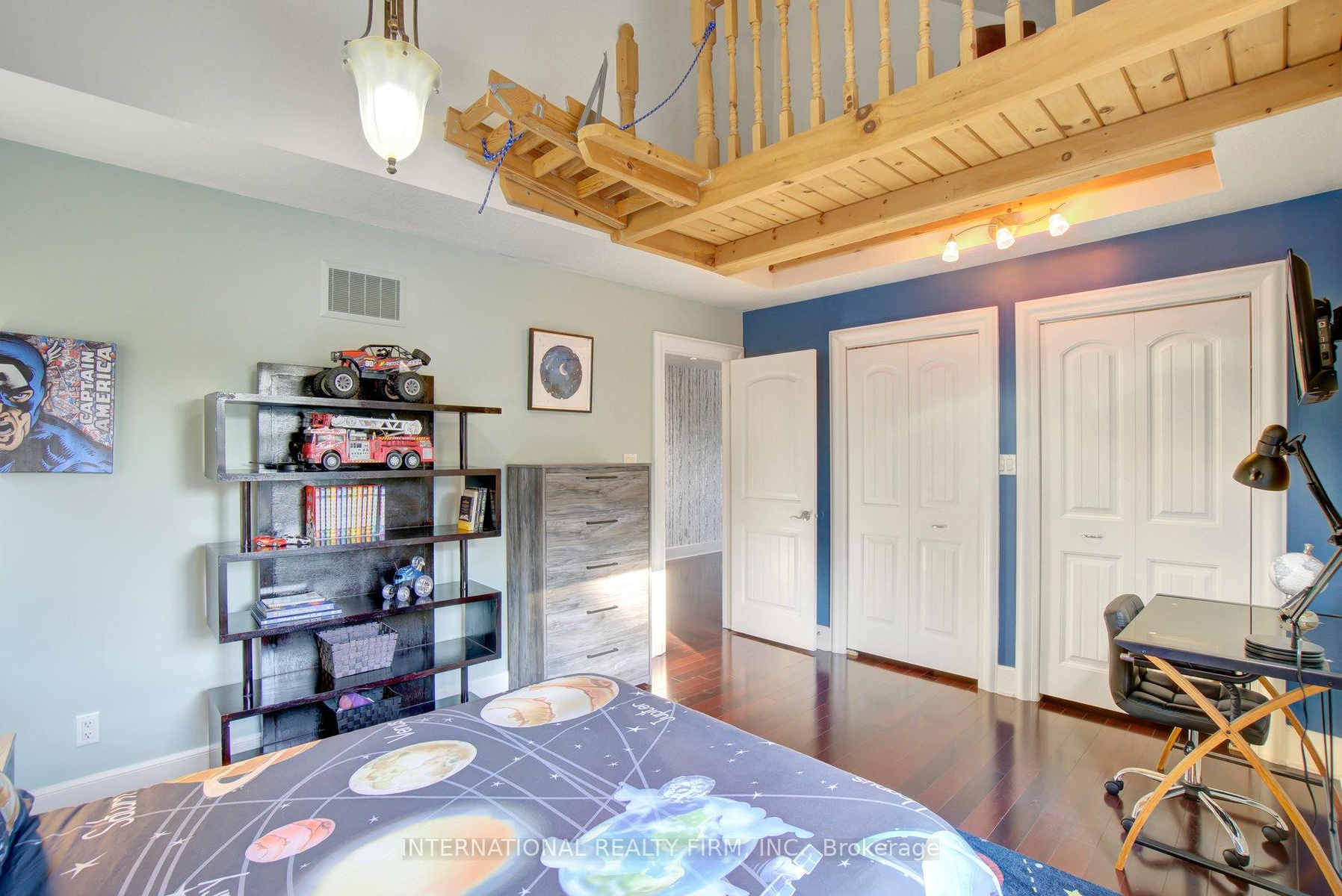Experience the ultimate retreat in this stunning custom-built estate, perfectly positioned on a private 1.62-acre lot just minutes from Barrie. Designed for the move-up buyer seeking space and sophistication, this residence offers over 7,000 square ft of high-end living space that functions as both a grand entertaining venue and a private family sanctuary. Step into a breathtaking two-storey foyer, where polished porcelain floors meet a signature chandelier. The heart of the home is the massive Great Room, where 24-ft cathedral ceilings and a double-sided stone fireplace meet a wall of panoramic windows overlooking your private "Pool Paradise"-a spectacular backyard oasis featuring a saltwater pool, pool house, and lush professional landscaping. The chef's kitchen is a showstopper, anchored by a 12x5 Ft quartz island and top-of-the-line stainless appliances. Detailed with brick arches, pine beams, and a dedicated butler's bar and baking station, it is a dream space for hosting. An elegant dining room awaits your next dinner party, paired with a "Zen-like" family room perfect for quiet evenings. The primary suite is a true luxury retreat, featuring its own fireplace, a private Juliette balcony, and a spa-style ensuite with heated floors and a deep-soaking Jacuzzi. The home's unique character continues to the second floor with an elevator lift, a built-in library, and a spectacular octagonal room featuring soaring cathedral ceilings. Designed for versatility, the property includes an ultra-convenient 2nd-floor laundry, a contemporary guest suite with its own kitchenette and ensuite, plus a massive lower level featuring a gym, dance studio, and billiards room. Outside, the 1.64-acre grounds are fully fenced for privacy, featuring a circular driveway with parking for 13 cars and a 3-car garage with 14-ft ceilings. Nestled on a quiet cul-de-sac only 10 minutes from Barrie and 25 minutes from Wasaga Beach, this is the definitive 4-season estate for the discerning buyer.
