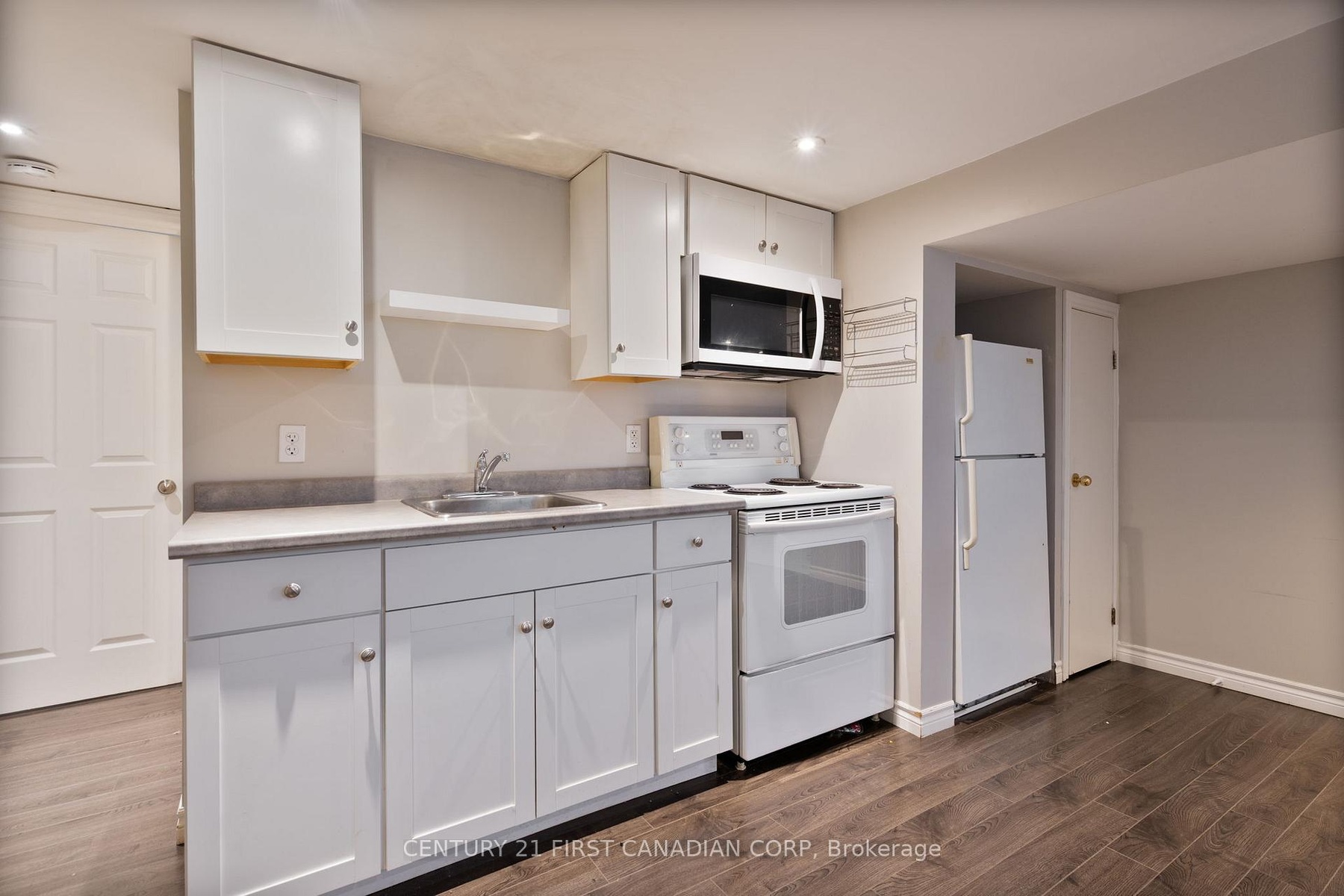 Tucked away on a quiet street in East London, this clean and well-maintained legal duplex offers excellent flexibility for investors, multi-generational living, or buyers looking for a home with income potential. The property could also be easily converted back into a single-family residence if desired. Set on a generous 50 x 208 ft partially fenced lot, the home features three self-contained living spaces with separate entrances. The upper-level unit is a bright one-bedroom apartment with its own front entrance and separate hydro meter. The main floor unit, accessed from the rear of the home, offers two bedrooms and comfortable living space. The lower-level granny suite features one bedroom and its own entrance through an exterior stairwell. A shared laundry and utility room is located in the basement with separately keyed access for convenience. Each unit includes a fridge and stove, and microwave. All the essentials have been updated including the furnace and air conditioning unit in 2020, and the majority of windows in 2023. Outside, you'll find an oversized single-car garage (19 x 25 ft) with 110-volt service and a finished drywall interior, along with ample parking for at least four vehicles plus the garage.Ideally located close to Fanshawe College, Argyle Mall, Clarke Road Secondary School, and major bus routes, this property offers both convenience and strong rental appeal.