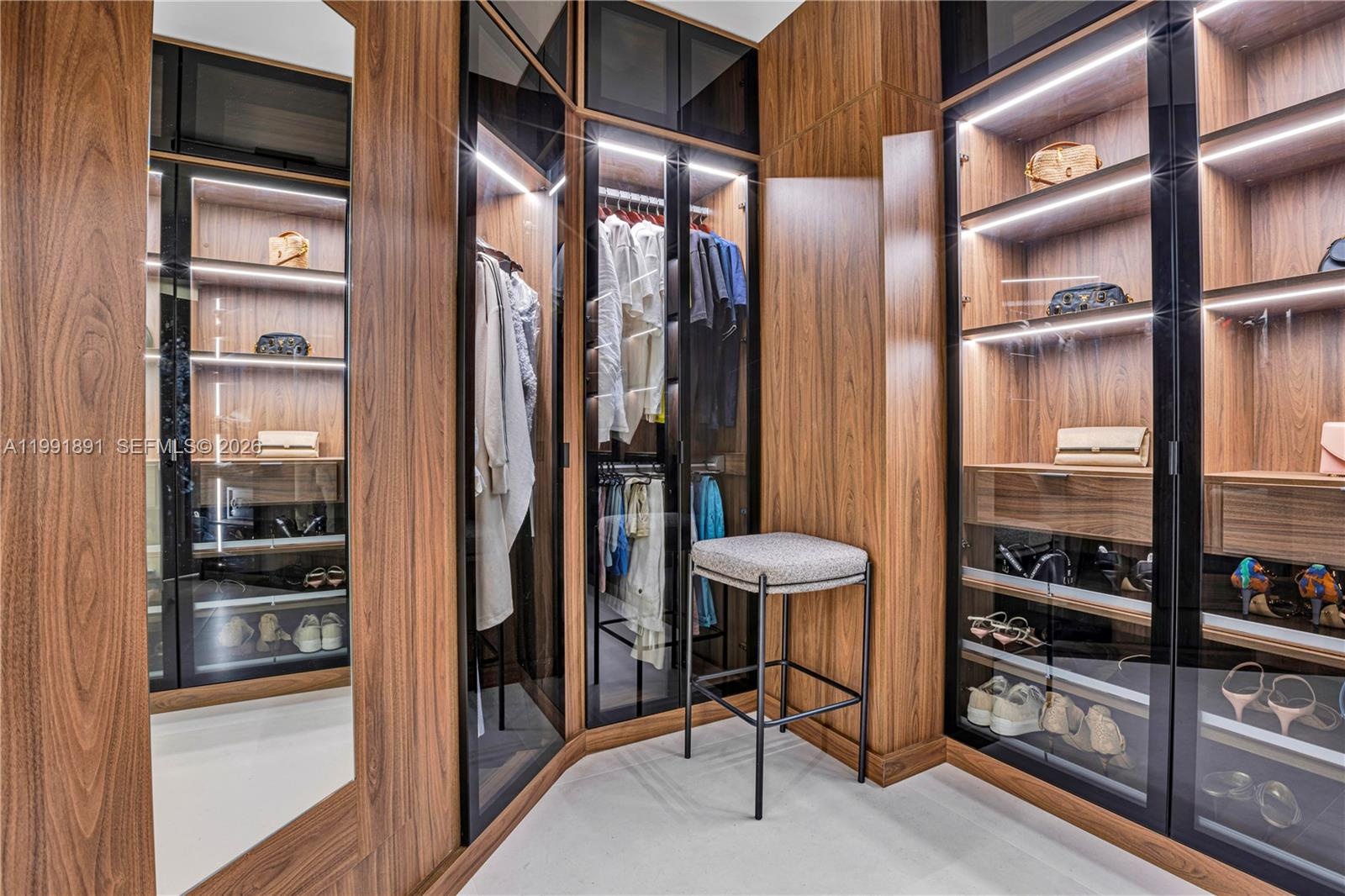 Interior features include 48” slate tile flooring, custom closets, designer vanities, automated window treatments, washer/dryer, and fully furnished custom interiors.
