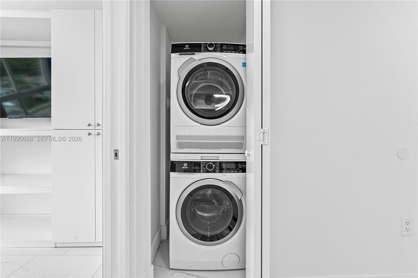 The contemporary kitchen is thoughtfully designed with Italian cabinetry, stainless steel appliances, granite countertops, and abundant storage, opening seamlessly to the living and dining areas to create an easy flow for both everyday living and entertaining. The residence also includes the convenience of a washer and dryer inside the unit.
