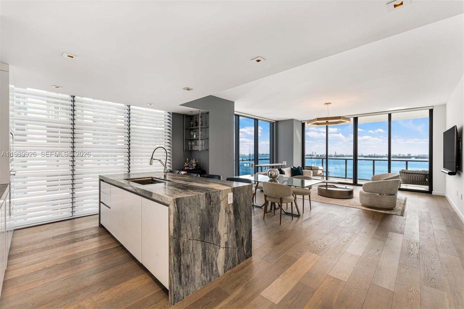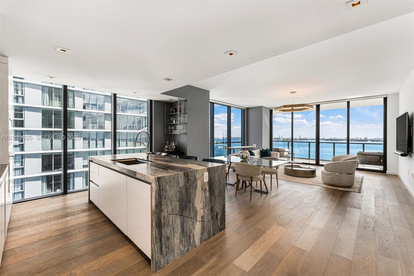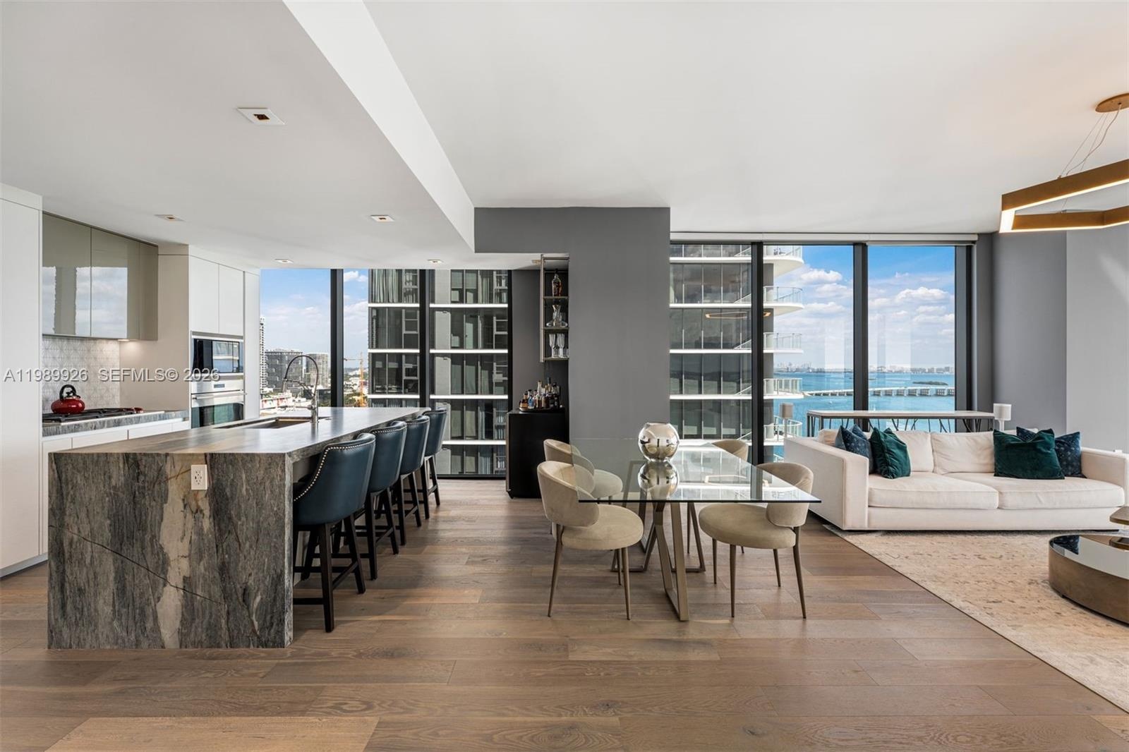 Set within Edgewater’s premier boutique tower of just 94 residences, Elysee Miami, Residence 2302 offers a flow-through layout with 3 bedrooms + den/media room (optional fourth bedroom) and 4.5 baths. Interiors are thoughtfully curated with custom finishes, oak wood flooring, and a gourmet kitchen featuring quartzite surfaces, Wolf and Sub-Zero appliances, and wine storage.