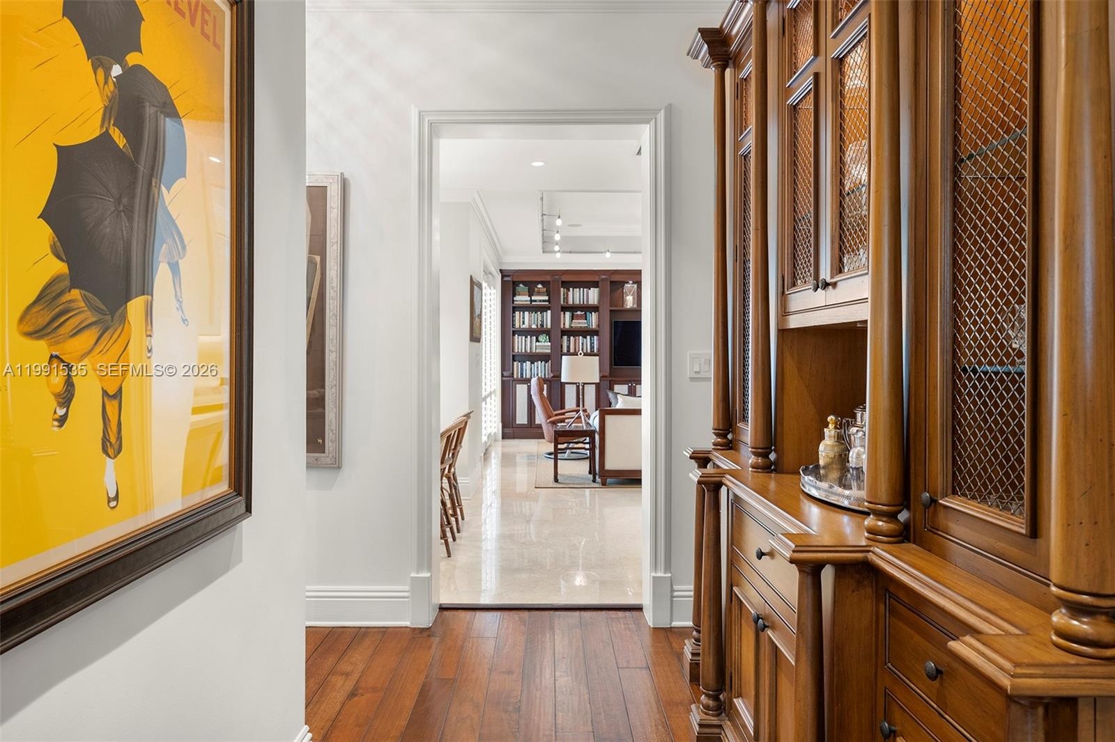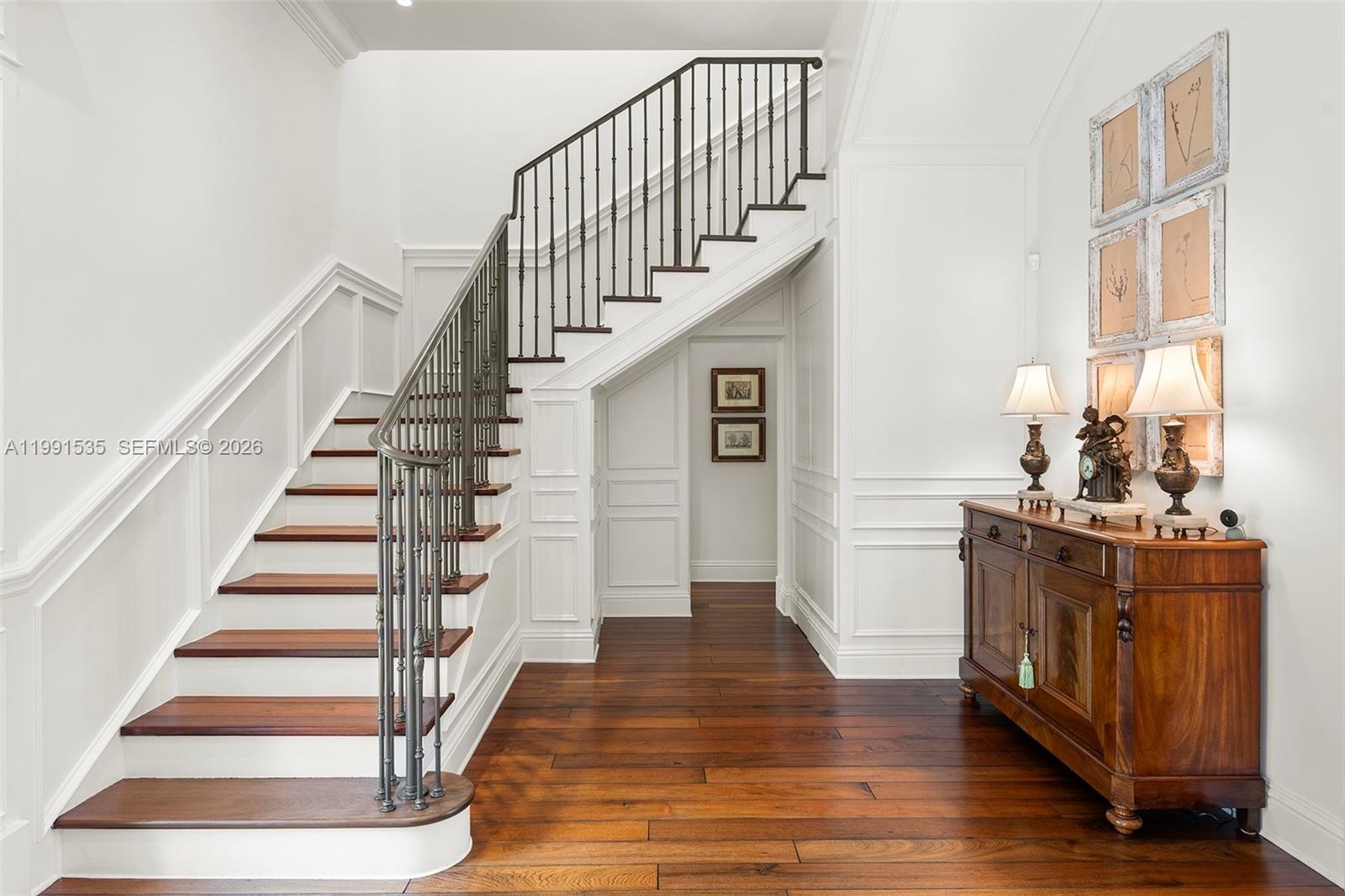 A refined and elegant designer-owned residence located in South Coral Gables. This beautifully appointed home offers 3953 sq ft of impeccably curated interiors under air on a 10,000 sq ft lushly landscaped lot. Features include, formal living room with fireplace, formal dining room, 3 bedrooms, 4 full bathrooms and 1 half bath, plus a private office, and dedicated gym. Spacious primary suite on the first floor with dual bathrooms. Open concept kitchen with breakfast nook flowing seamlessly into a comfortable gathering room, ideal for everyday living and entertaining, that opens to a pergola-covered patio perfect for a al fresco dining. The second story opens to a comfortable living area with lots of natural light, a perfect space for relaxation leading to the 2 bedrooms with ensuite baths.