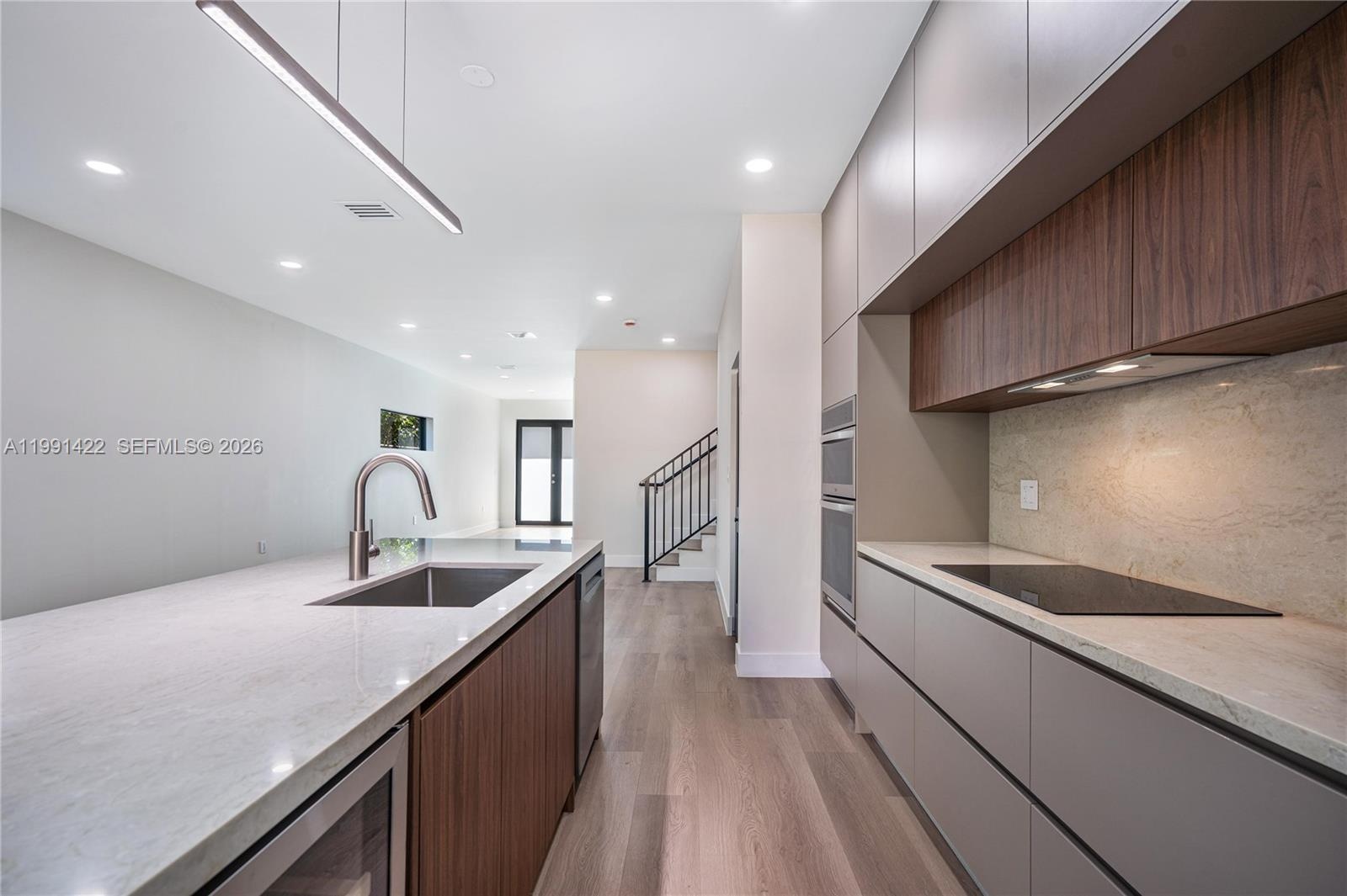 Step into modern elegance in this rare 2,450-square-foot residence — a size that’s increasingly hard to find in the area. Designed to impress from the moment you arrive, the home features a dramatic tall front door, soaring high ceilings, and a bright, open layout that feels both luxurious and welcoming. The heart of the home is a chef’s kitchen with fully custom cabinetry, designed for both beauty and function. It features a stunning Taj Mahal quartzite countertops and outfitted with premium stainless-steel appliances, including an integrated refrigerator for a seamless, high-end look and a built-in wine cooler—perfect for entertaining or everyday enjoyment. Both the kitchen and bathrooms feature fully custom cabinetry, elevating the home with clean lines, quality craftsmanship, and generous storage throughout. Function meets style with a spacious laundry room, ideal for organization and daily convenience—an often-overlooked luxury that truly enhances everyday living. Outdoors, enjoy your own private pool and gated driveway, creating a secure and serene oasis for entertaining, relaxing, or soaking up Miami’s sunshine. Whether you’re looking for a primary residence, a long-term rental, or a high-performing Airbnb opportunity, this property offers incredible versatility and appeal. With its modern design, and generous square footage, it’s suited for both personal enjoyment and income potential. This is more than a home — it’s a lifestyle and an opportunity.
