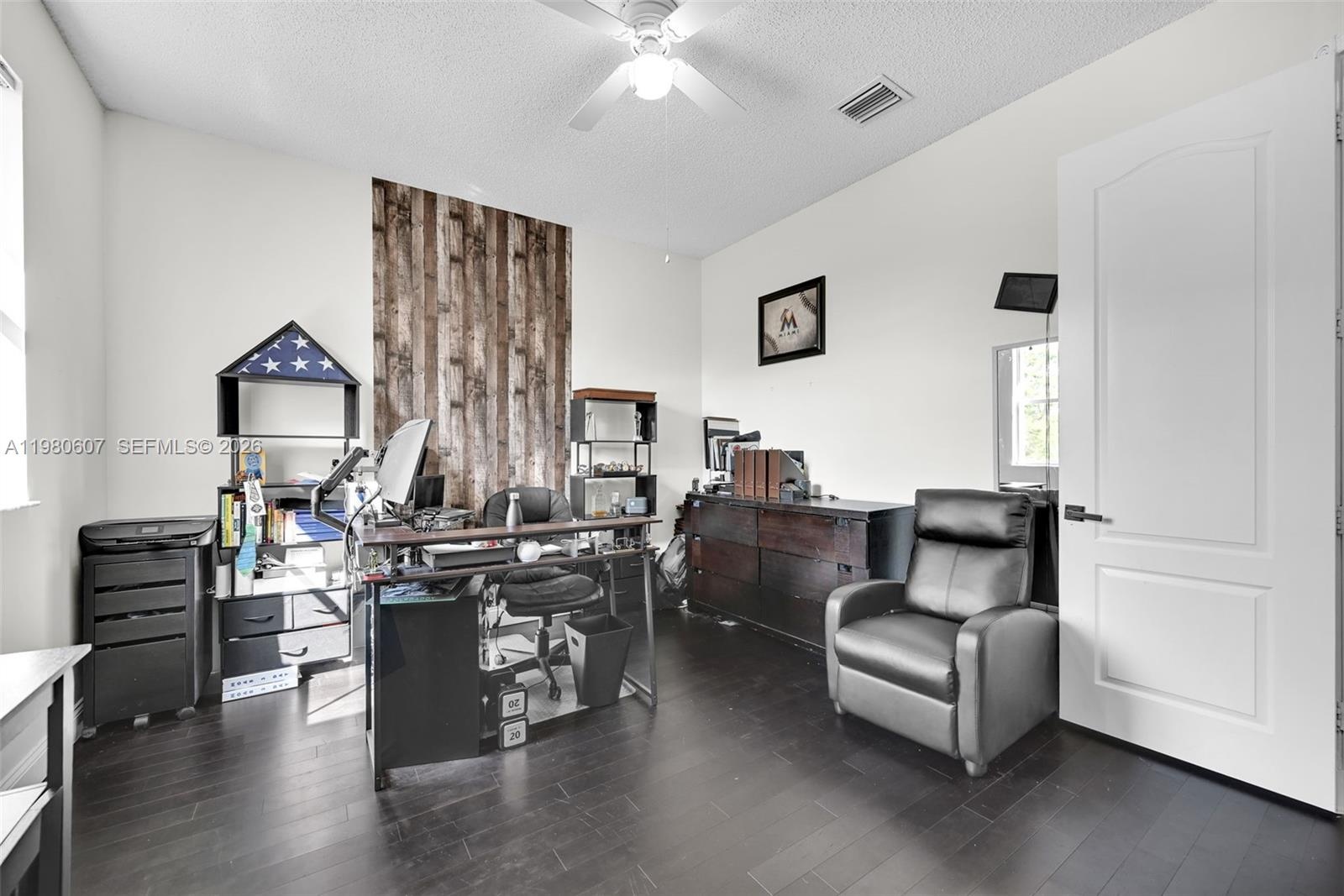 Welcome to luxury living in the highly desirable Granada Estates! This stunning 5-bedroom, 3-bath home offers over 3,000 sq. ft. of beautifully designed living space and a spacious two-car garage. The thoughtfully designed floor plan flows effortlessly from the elegant living room to the formal dining area and inviting family room, while a versatile loft provides the perfect space for a game room, office, or additional lounge. The impressive primary suite is a private retreat, featuring a generous bedroom, dedicated study, private balcony, and a spa-inspired bathroom with a soaking tub and separate shower. The chef’s kitchen is designed to impress with quartz countertops, stainless steel appliances, and ample space for cooking and entertaining. Porcelain tile floors enhance the main living areas, while rich bamboo flooring adds warmth upstairs. The home also includes hurricane shutters on all doors and windows for protection during storms. Step outside to your own private oasis—an expansive fenced yard filled with mature fruit trees, perfect for relaxing or entertaining. Homes of this size and quality in Granada Estates rarely come available. Low HOA - HOA covers front and back lawn maintenances. Don’t miss your chance, schedule your private showing today before this exceptional property is gone!