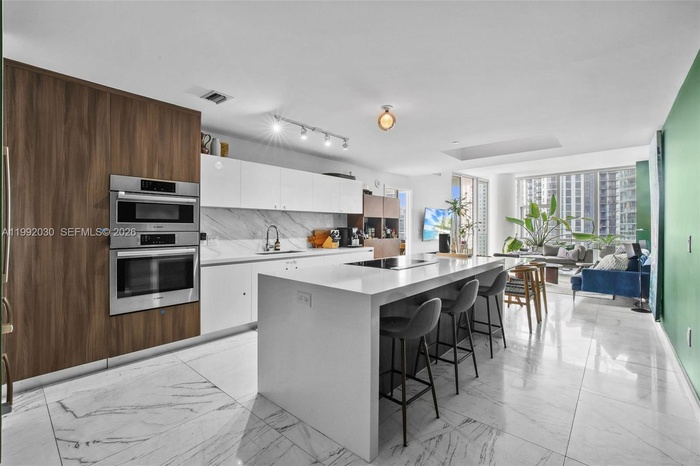 High floor corner unit in the more desired line in the building. 4 Bedrooms, 4 full bathrooms, (in the unit den, converted into a bedroom), with private foyer and elevator. Direct view of the Biscayne Bay. 10 ft high ceilings, upgraded marble floors, floor to ceiling impact windows, large terrace space, spa like master bath with dual vanities, separate shower, walking closet and much more to describe. Bosch appliances and sub-zero floor to ceiling fridge. Access to resort like amenities including two roof top pools, plus three resort style pools with towel service. Gym, tennis, racquetball, basketball, boxing, child play area, sauna/hot tub, clubhouse, yoga room, business center, party rooms, virtual golf, theatre room, 24/7 valet, security and front desk. World class restaurants and shopping in the new developed Miami World Center.