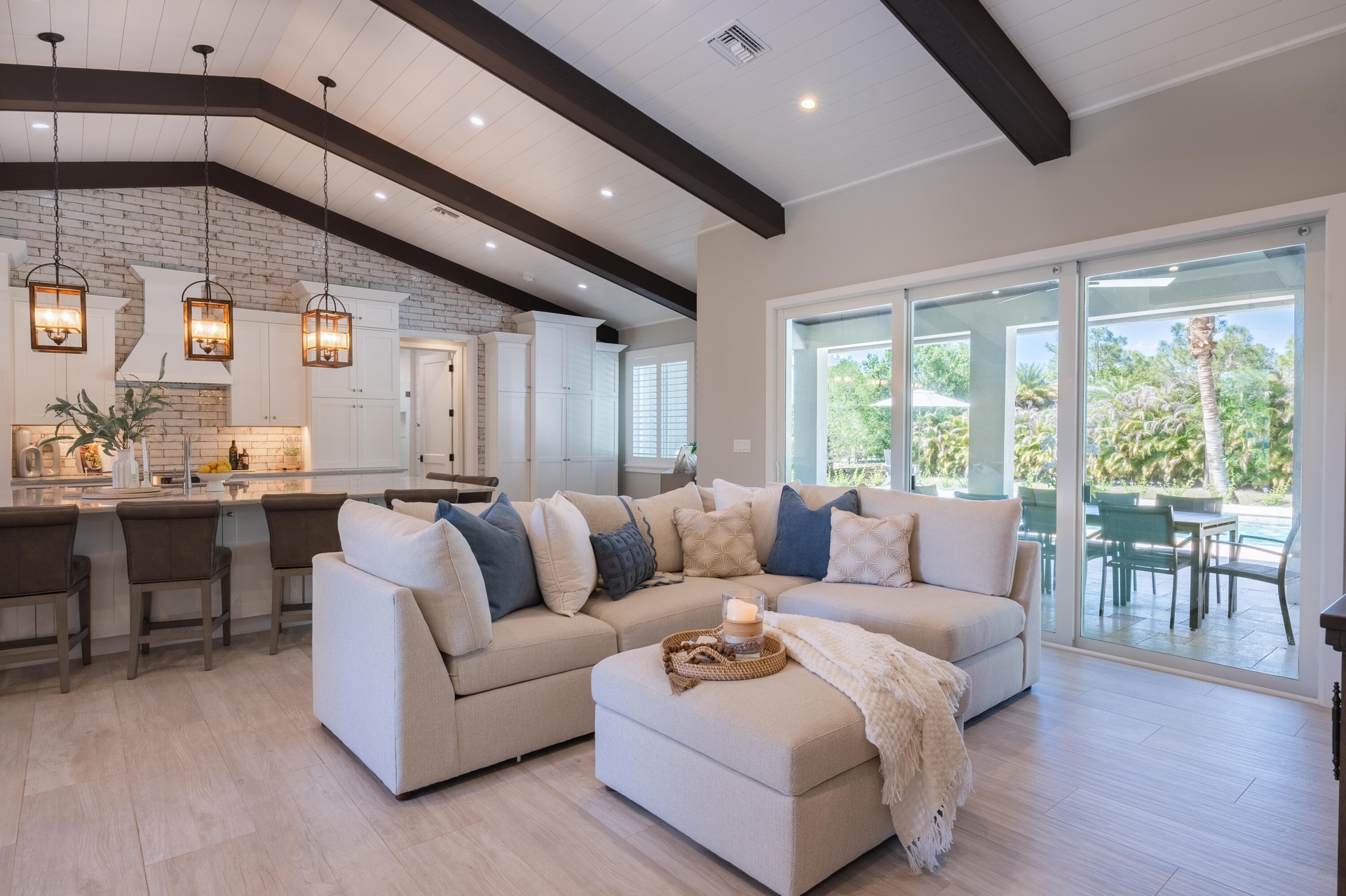 Discover an exceptional private estate on a sprawling 2.4 acres in the highly sought-after Jupiter Farms community. This completely turnkey, meticulously renovated CBS home offers sophisticated living, privacy, and versatility with no HOA restrictions. Complementing the main residence is an extraordinary 1,750 sq ft fully enclosed, air-conditioned CBS-built garage with 16-foot ceilings. Pre-wired electrical makes it ideal for fully protected storage for an array of options that could include a boat and trailer, Gulfstream, RV, equestrian trailer, car collection, guest quarters, or a grand workshop. At the heart of the property is a beautifully updated 2,583 sq ft residence with impact windows, a metal roof, reverse osmosis water system, and Icynene foam insulation. Soaring vaulted ceilings, 12x47 Italian porcelain plank tile, 7-inch crown molding, solid 8-foot core doors, plantation shutters, and custom details create an elegant yet welcoming feel. The gourmet kitchen features an oversized island, custom hood, and newer Bosch induction appliances. Seamless indoor-outdoor living opens to a private entertainer's paradise with a heated saltwater pool, large summer kitchen with stacked stone fireplace, and brick paver fire pit. An oversized living room offers easy conversion into an additional guest suite, while a dedicated office provides an ideal work-from-home space. The entire property is securely enclosed by a high-quality black chain-link fence and private electric gate. Over an acre of the lot features a separate entrance - perfect for a guest house, sport courts, or equestrian facilities - creating rare estate-scale living. This property is just minutes from pristine beaches, the Jupiter Inlet, Riverbend Park, and the Historic Jupiter-Indiantown Trail. Easy access to PBI airport and Brightline high-speed rail completes the picture. Welcome to refined country living at its finest - no HOA, maximum privacy, and endless potential.