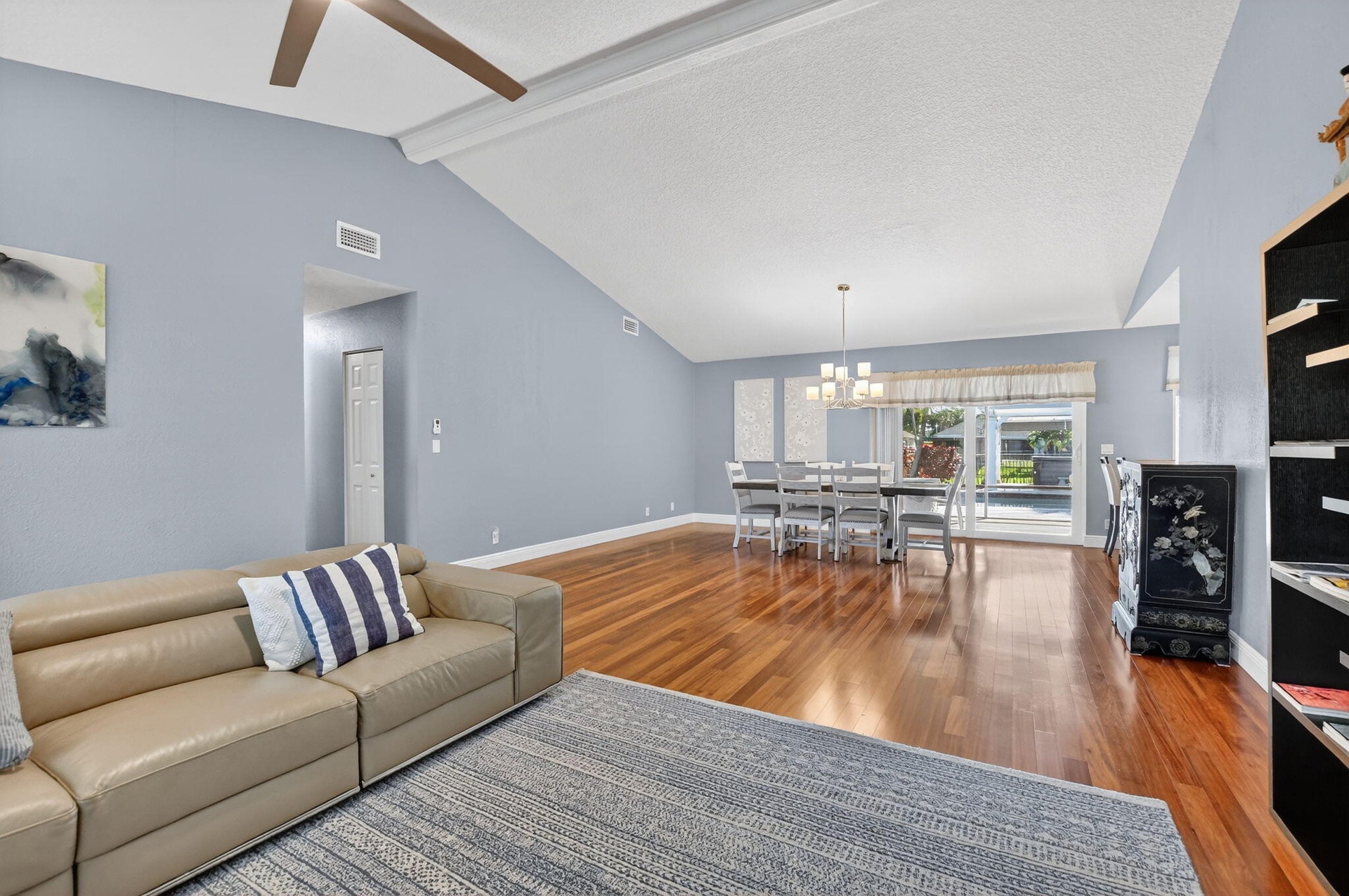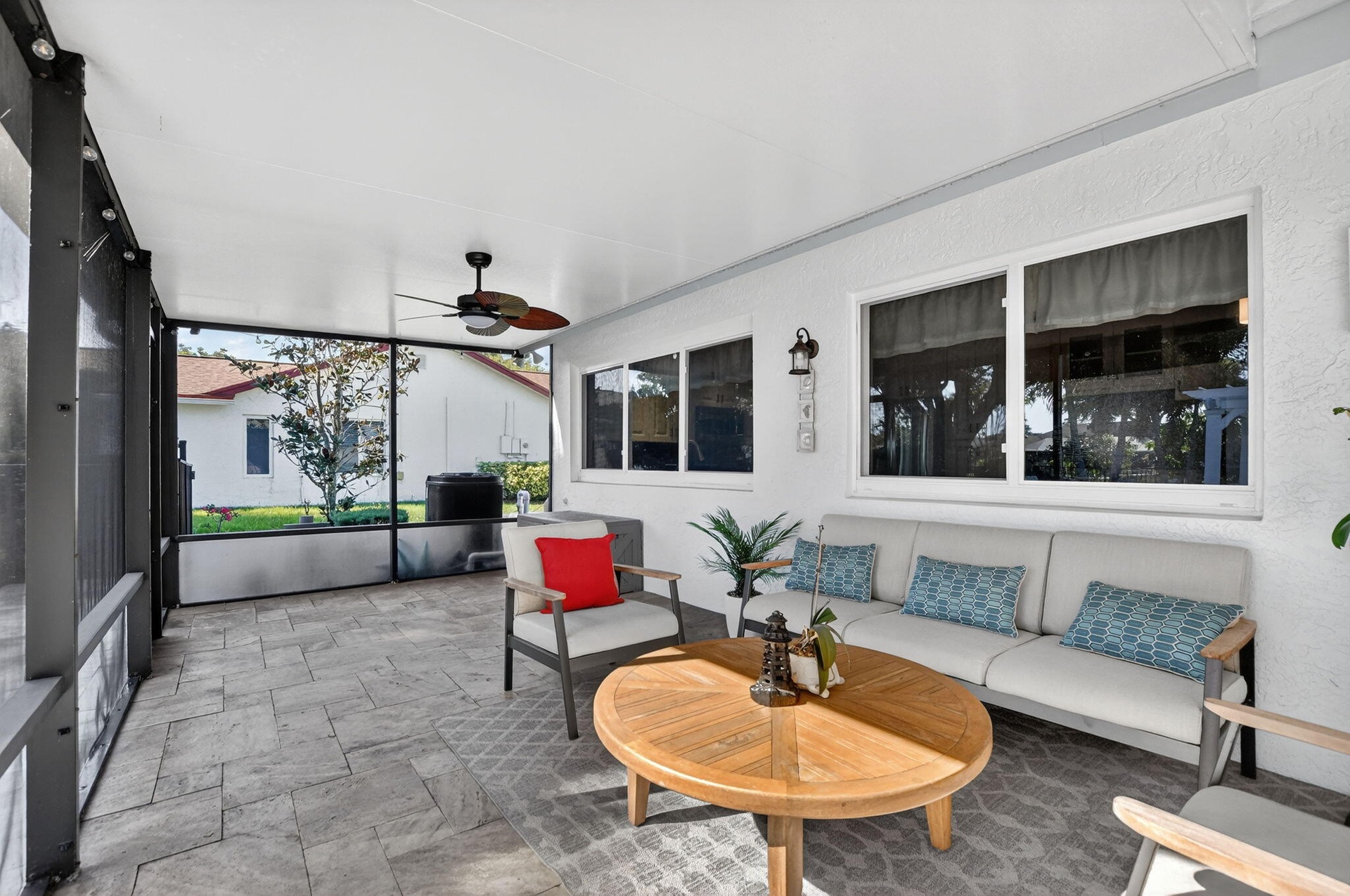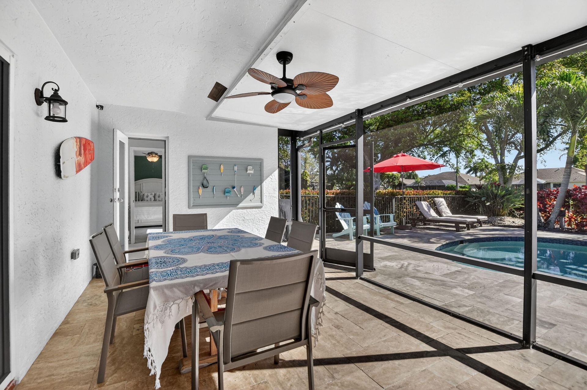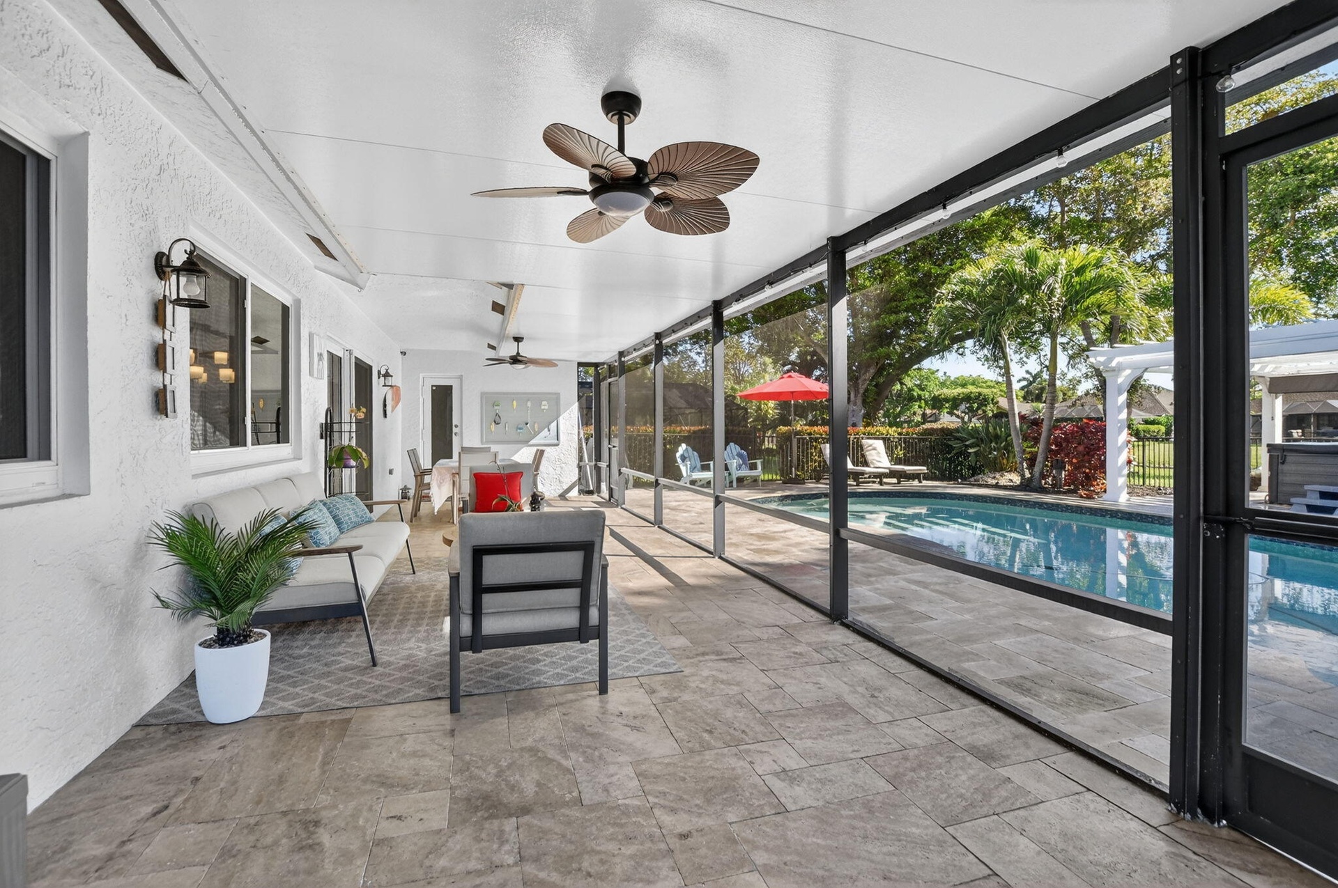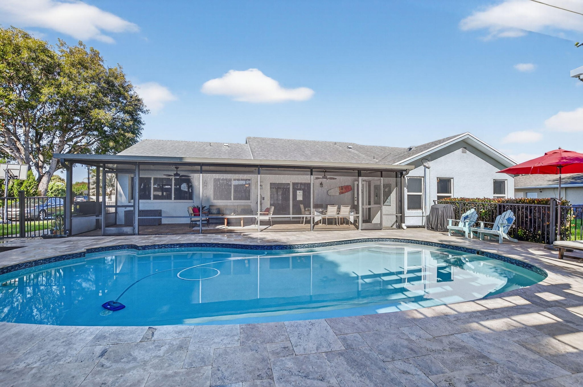 Beautifully remodeled and fully furnished 4 BR/2 BA pool home located in desirable Boca Chase. This turn-key residence features an open and spacious floor plan, enhanced by beautiful hardwood floors, abundant natural light and seamless indoor-outdoor living. The chef's kitchen features granite countertops, top of the line stainless steel appliances, custom cabinetry w/pull-outs & soft close drawers. The outdoor living space is complete with a large screened patio, saltwater pool, travertine tile pool deck, spa-tub sitting under an impressive Pergola and a tropical backyard with a private sitting area, just steps to the lake. This home features impact windows & doors, full size washer & dryer, generator hookup, 2 car garage w/hurricane rated door. Quiet, well maintained community with access to tennis, pickle ball and private fishing dock. Ideally located near shopping, dining, parks, major roadways and just a short drive to beach. Move-in ready with lawn and pool maintenance included. Available for off-season April-October, minimum 3-4 months. Tenant screening required, 700+ credit score, income verification. Sorry, no pets.