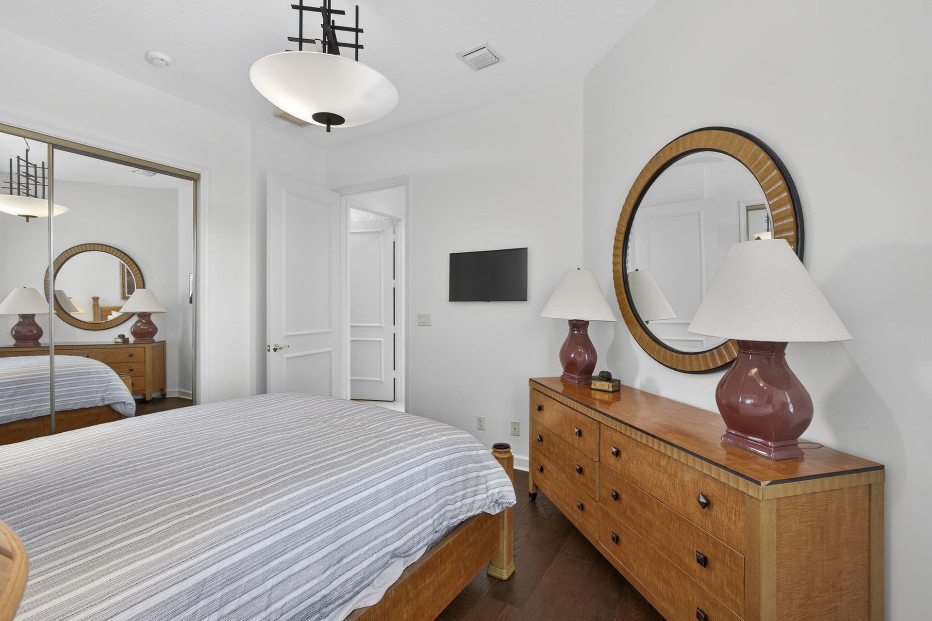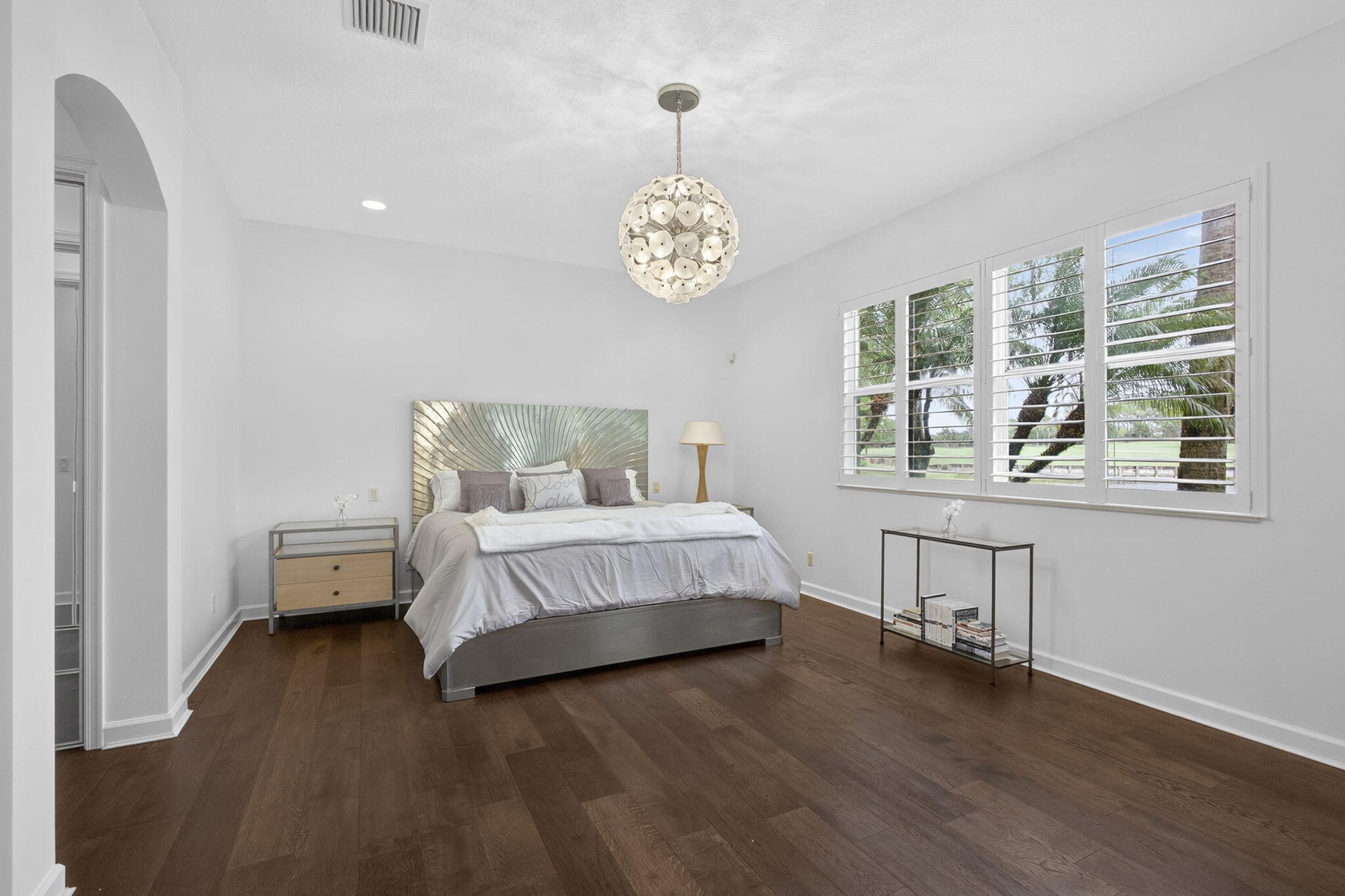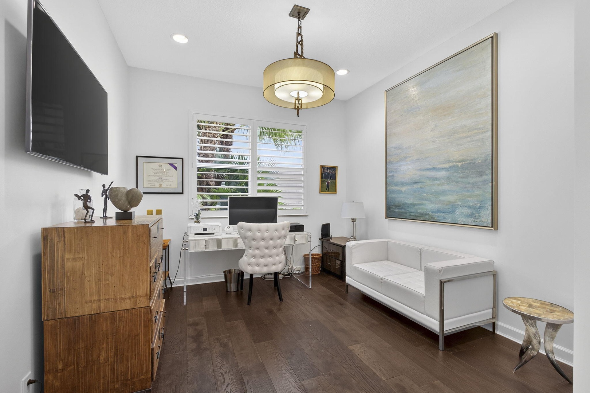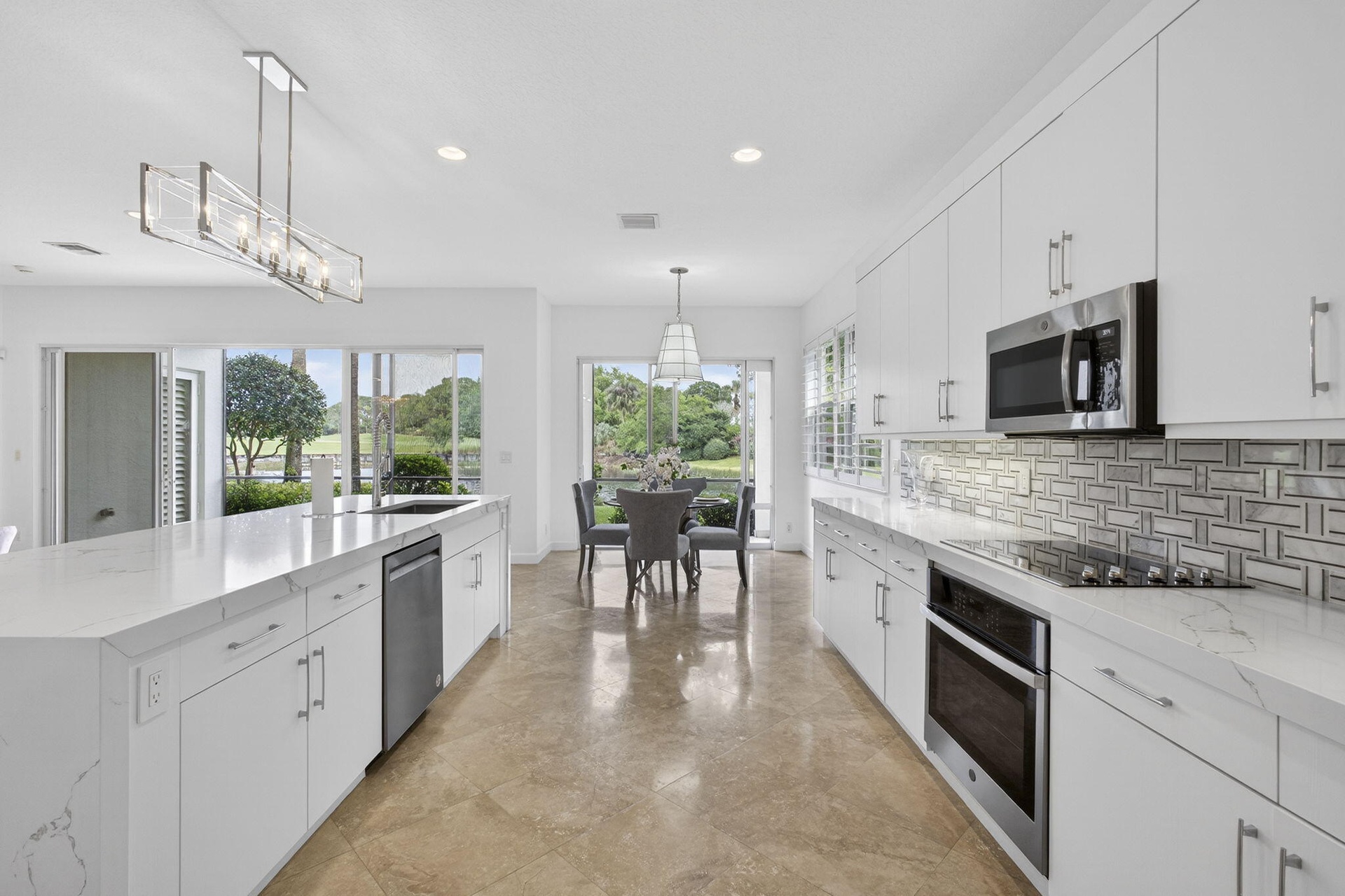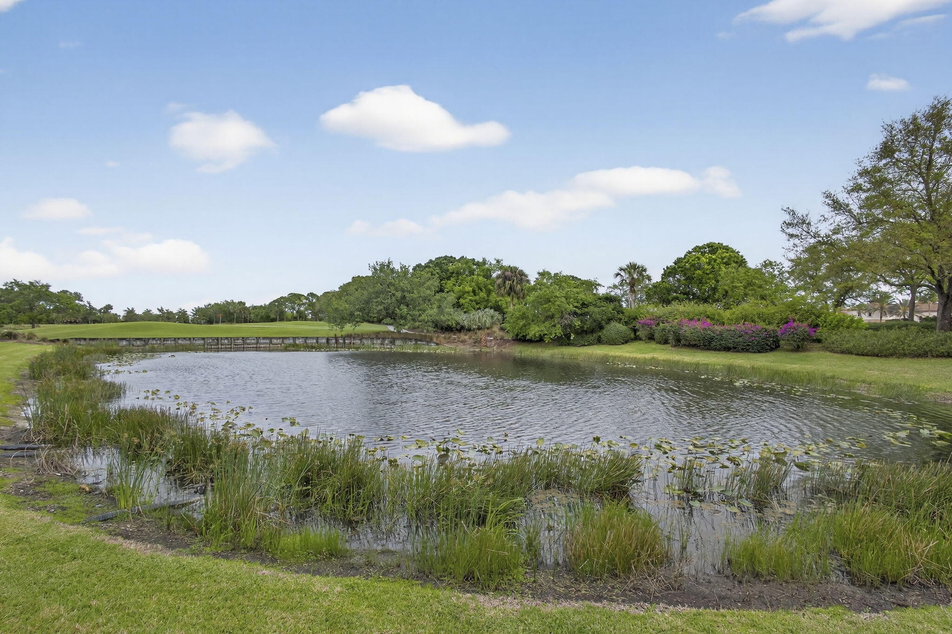 Enjoy spectacular wide lake and golf views of the first hole on the Arthur Hills Sunset Course from this beautifully updated coach home in The Country Club at Mirasol. Perfectly positioned to capture expansive water and fairway vistas, this residence offers a peaceful setting and exceptional outdoor living from its spacious screened patio overlooking the lake and golf course. This bright and spacious two-bedroom, two-bath residence with a private office and two-car garage features a popular great room style floor plan designed for comfortable living and entertaining. Large windows with plantation shutters allow natural light to fill the home while framing the beautiful outdoor scenery. Sports Membership The renovated kitchen is the centerpiece of the home and features new cabinetry, elegant countertops, a custom redesigned island with seating, and a stylish tile backsplash. Contemporary lighting and LED lighting enhance the open living space and add a sophisticated modern touch. The primary suite offers a relaxing retreat with engineered wood flooring and built-in closet systems. The updated primary bath includes dual vanities and a soaking tub. A comfortable guest suite and beautifully updated bath featuring a striking vanity and designer finishes provide privacy for visitors. A separate office/den with engineered wood flooring offers the perfect space for working from home or enjoying a quiet reading room. Added features include full impact windows and doors, plantation shutters throughout, engineered wood flooring in the bedrooms and office, marble flooring in the main living areas, a separate laundry room with cabinetry and utility sink, and a large storage closet in the garage area. Enjoy the expansive screened patio, providing a wonderful setting for outdoor dining or relaxing while taking in the tranquil long lake and golf course views that make this property so special. Villa Vasari is ideally located in close proximity to the club's main amenities and consists of only 32 residences, making it one of Mirasol's most desirable and intimate coach home communities. Sports Membership.