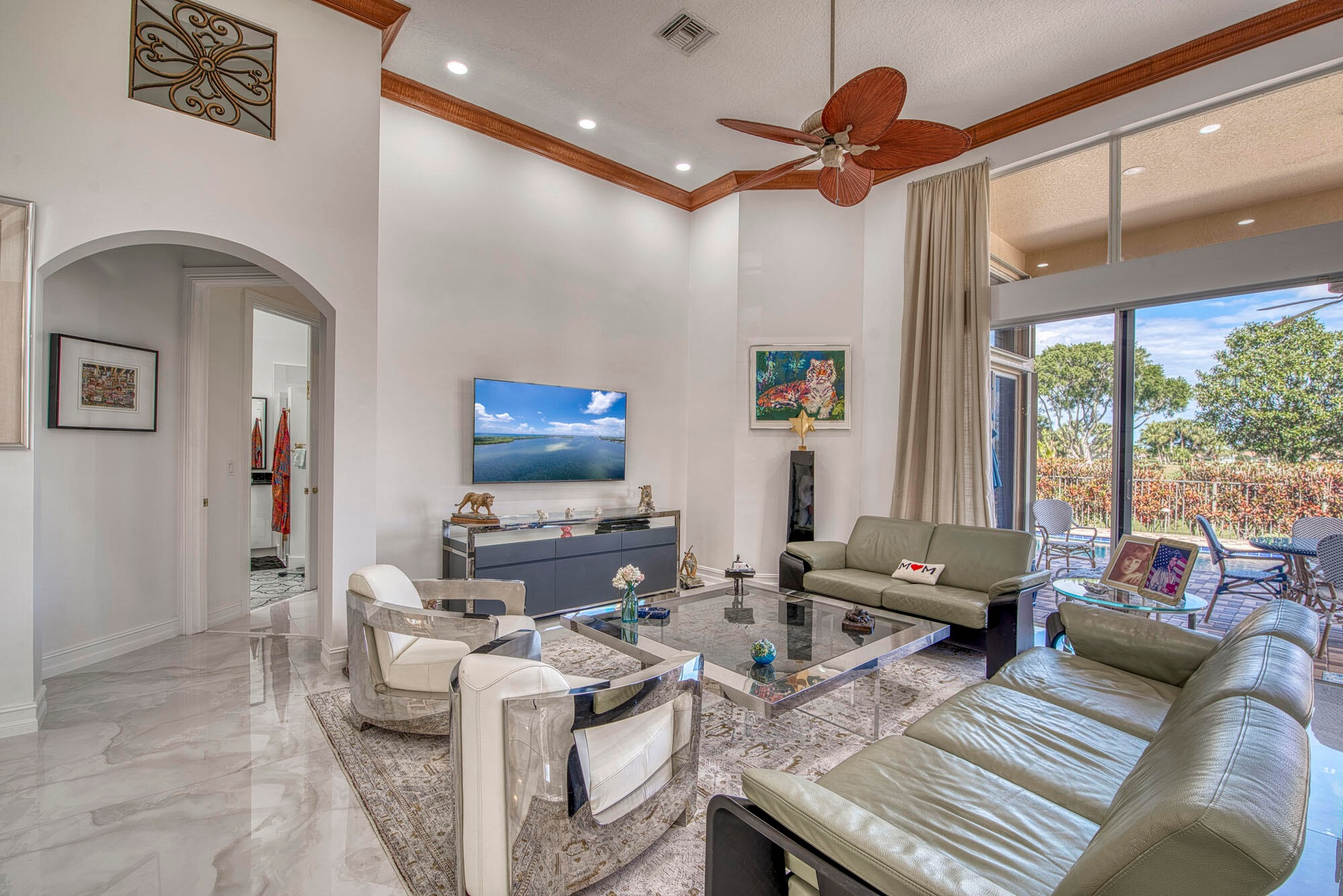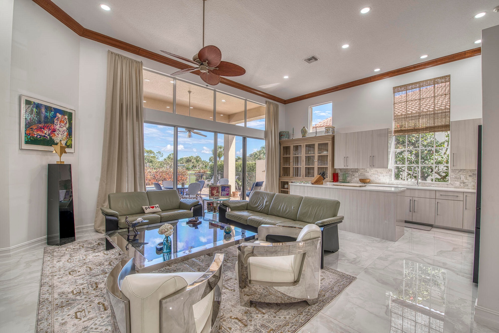 Boasting a brand-new roof installed in October 2025 with a 10-year fully transferable warranty, this beautifully updated residence has been thoughtfully renovated from top to bottom. In 2024, the bedrooms received new tile flooring and the master suite was enhanced with elegant plantation shutters. In 2025, the main living areas, kitchen, and den were upgraded with striking 48'' x 48'' rectified porcelain tiles, adding a dramatic and modern aesthetic. The kitchen underwent a complete renovation in 2024, featuring new cabinetry and an extended preparation counter that makes cooking both enjoyable and functional. Crown molding and fresh interior paint, also completed in 2024, provide a refined finish throughout the living spaces. Additional updates include a newer HVAC system, newer water heater, and a newly resurfaced saltwater pool (2024). The exterior is equally well cared for, with refreshed front landscaping and a meticulously maintained deck that was pressure-cleaned and resealed in 2024. For outdoor living, the spacious patio is equipped with retractable screens, and a dedicated dog-friendly area on the side of the home, secured by a newly added fence, makes daily walks effortless. In 2025, the master bathroom was retiled with a stunning mosaic floor, and the laundry room was upgraded with a new washer and dryer. Perfectly positioned overlooking the Tradition golf course, the home offers magnificent views along with an added convenience: a nearby shortcut at the end of the street provides direct access to the club, spa, and pool complex, which features four exceptional restaurants and full spa services. Aligned perfectly with online value estimates, this home is a true must-see for anyone considering life in the Ibis community. We look forward to welcoming you in person.
