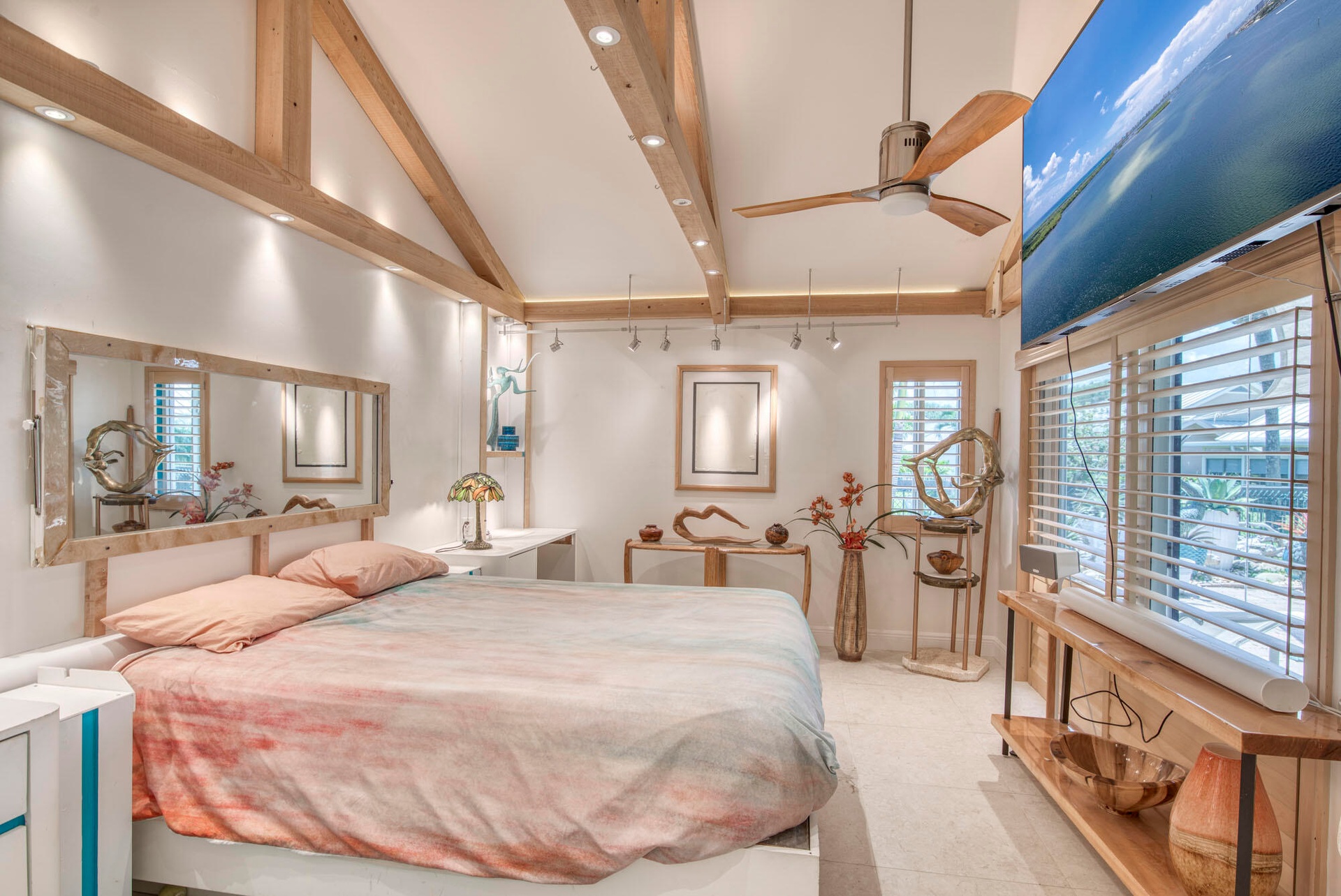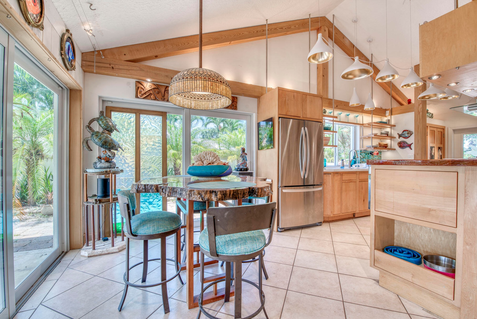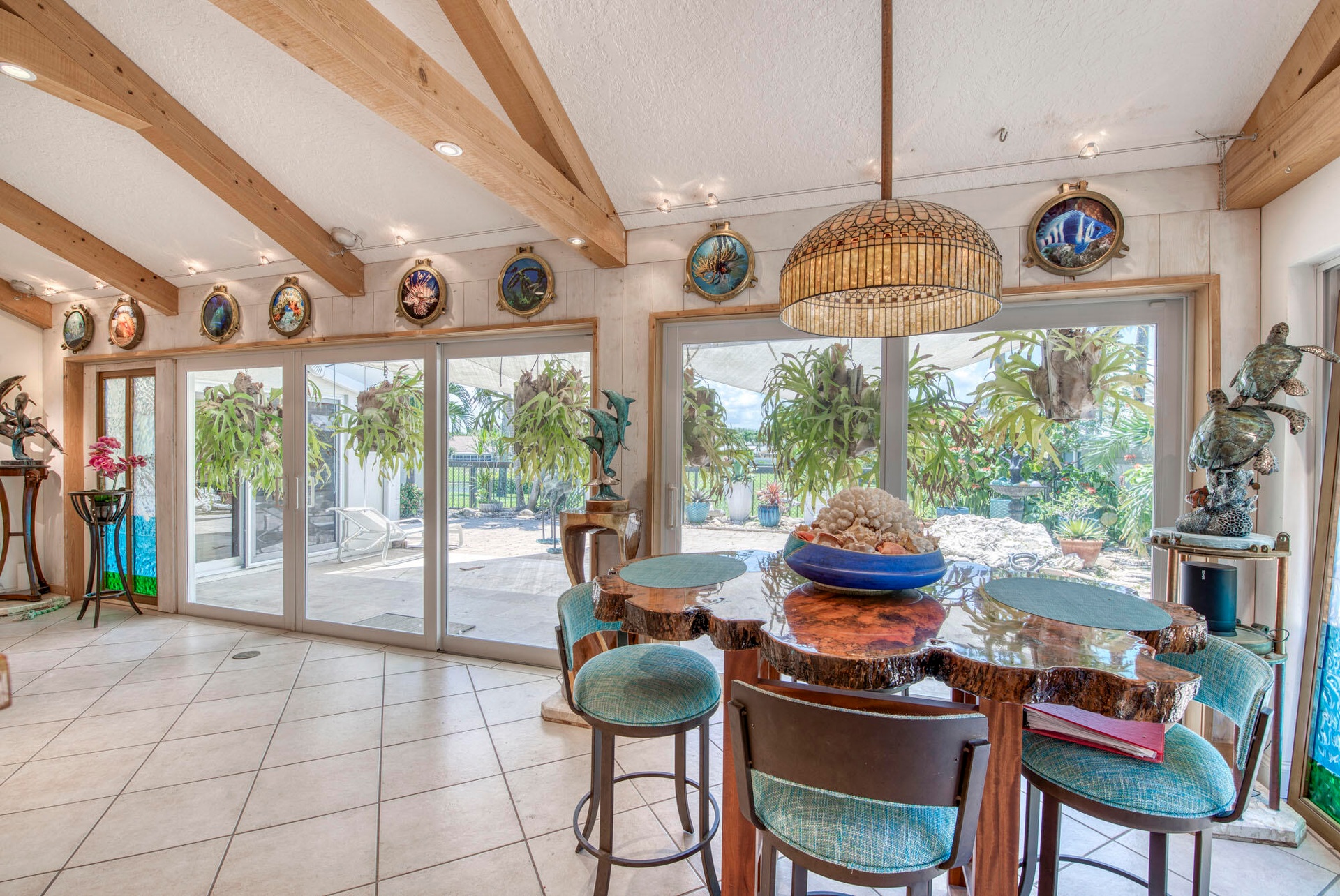 Welcome to the most unique home the Bluffs has ever seen. This craftsman style home has artistic and unique touches like wood beams with inset LED lighting, extensive track lighting with warm lacquered wood and nautical themes throughout. This open concept home has vaulted ceilings in the main living space and is one-of-a-kind in every way. The lake views and south-west exposure keeps this home bright and airy. The expansive backyard and extra-large side yard have huge planters with local plants and flora. FOUR main components make this home practically hurricane resistant. 1) 2020 Metal Roof, 2) Impact Windows and 3) Cutting-edge high-end PV Solar and Storage System that stores power for use during a power outage and keeps the electric bills to a bare minimum, and 4) Closed Attic which creates a "Thermal Envelope" reducing heat build-up adding to improved energy efficiency throughout the home and as per the Florida Solar Energy Center, the "sealed attic" reduces potential wind damage during a hurricane and reduces water intrusion through roof venting seen on most homes.