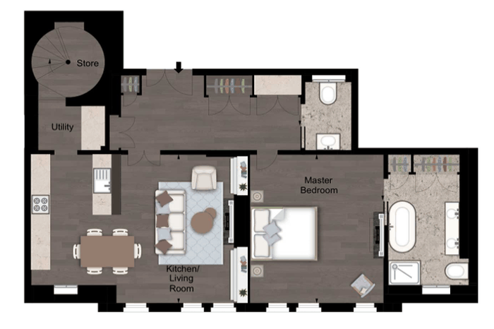 Set over an impressive 1,106 sq ft, the apartment has been thoughtfully interior designed, seamlessly blending original character—such as ornate cornicing and feature fireplaces—with modern luxury. Double doors from the hallway open into a stunning open-plan reception room and kitchen, creating an expansive and sophisticated space ideal for both relaxing and entertaining.